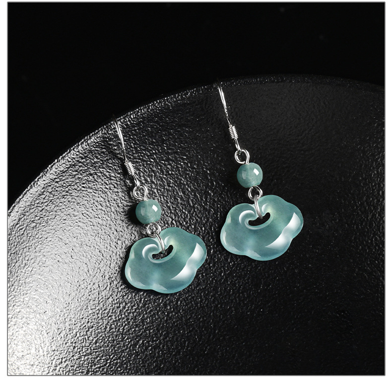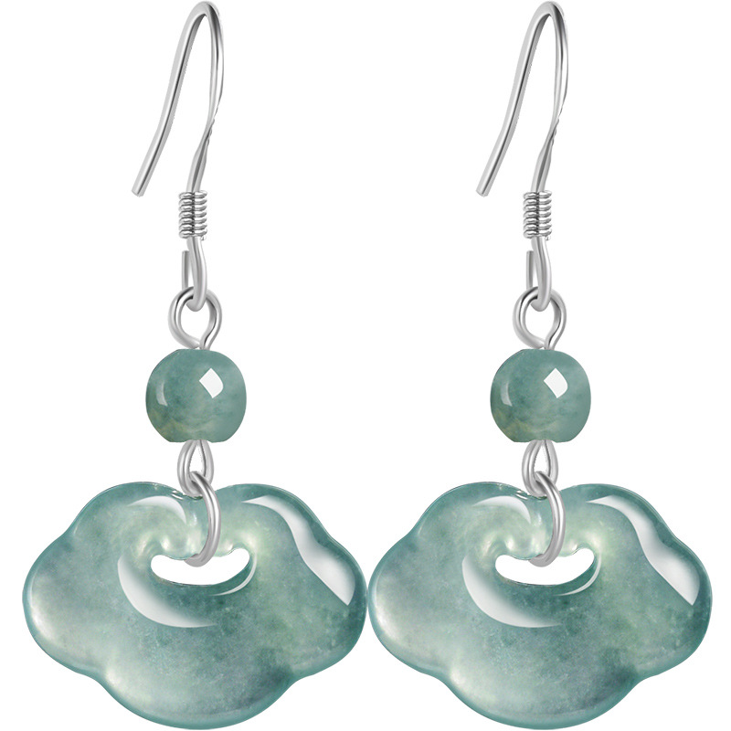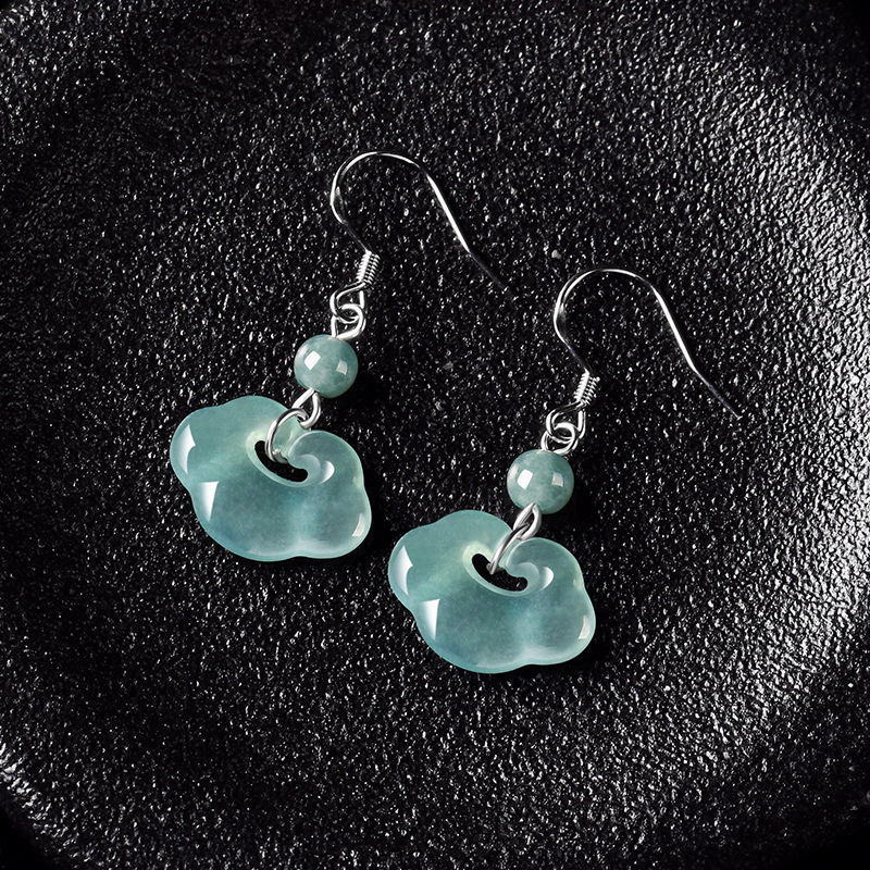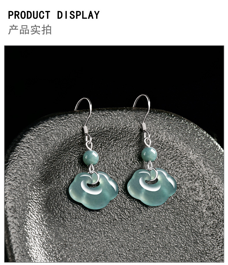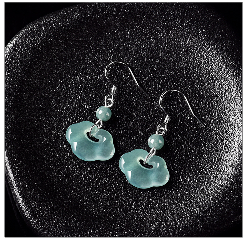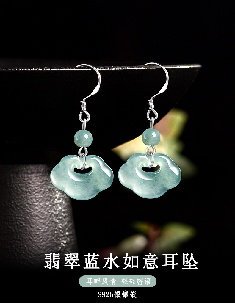 Натуральные изделия Изумрудная голубая вода Руйи Серьги S925 Серебряные инкрустированные ледяные нефритовые серьги Древние серьги