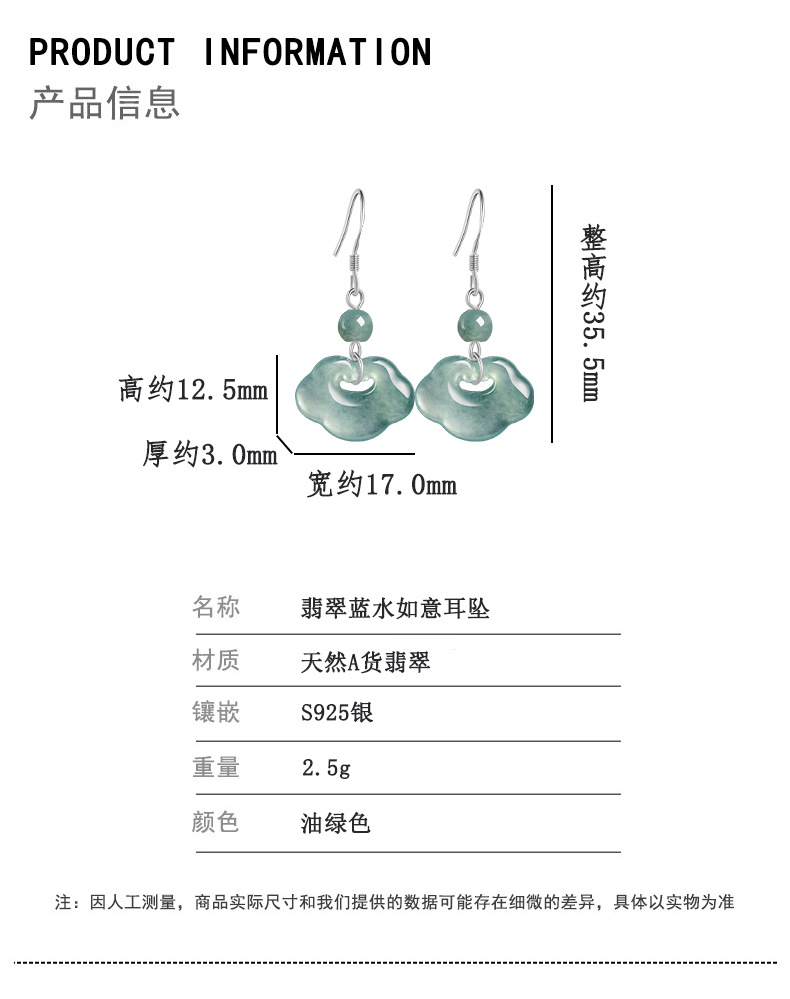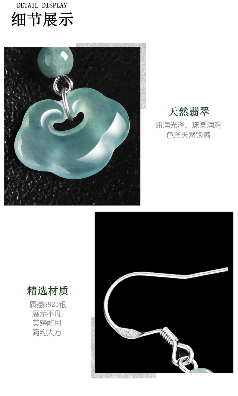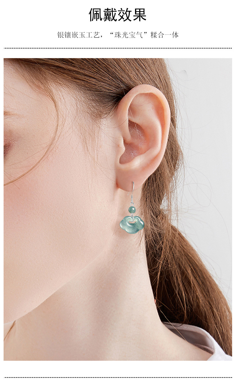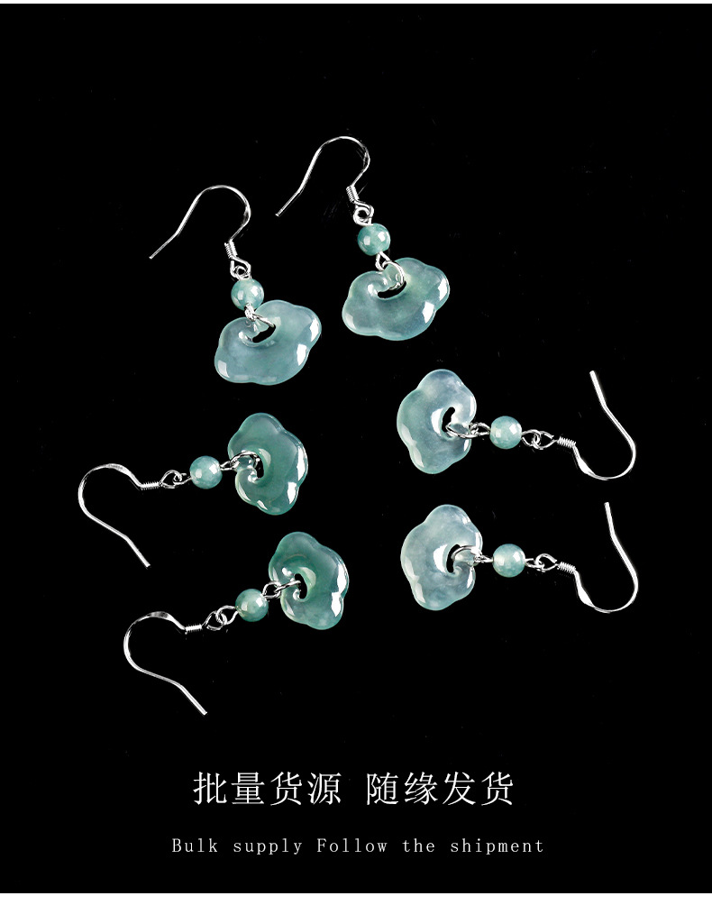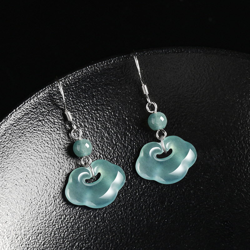Натуральные изделия Изумрудная голубая вода Руйи Серьги S925 Серебряные инкрустированные ледяные нефритовые серьги Древние серьги