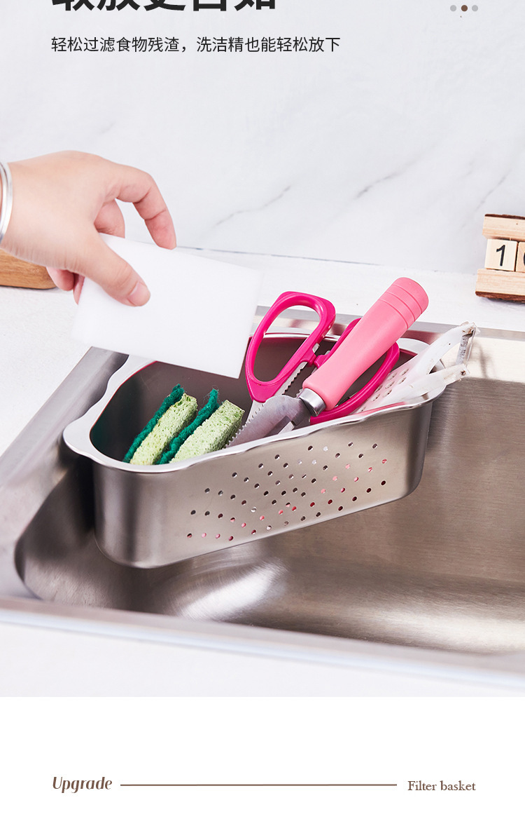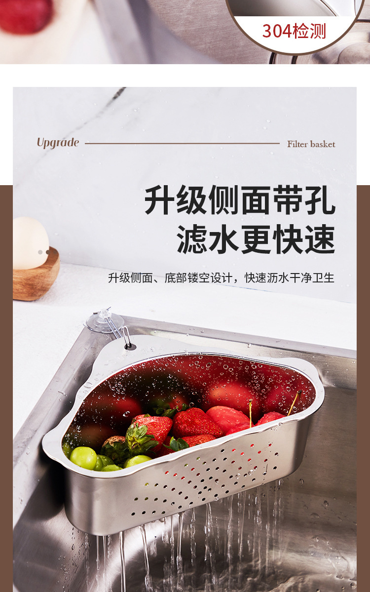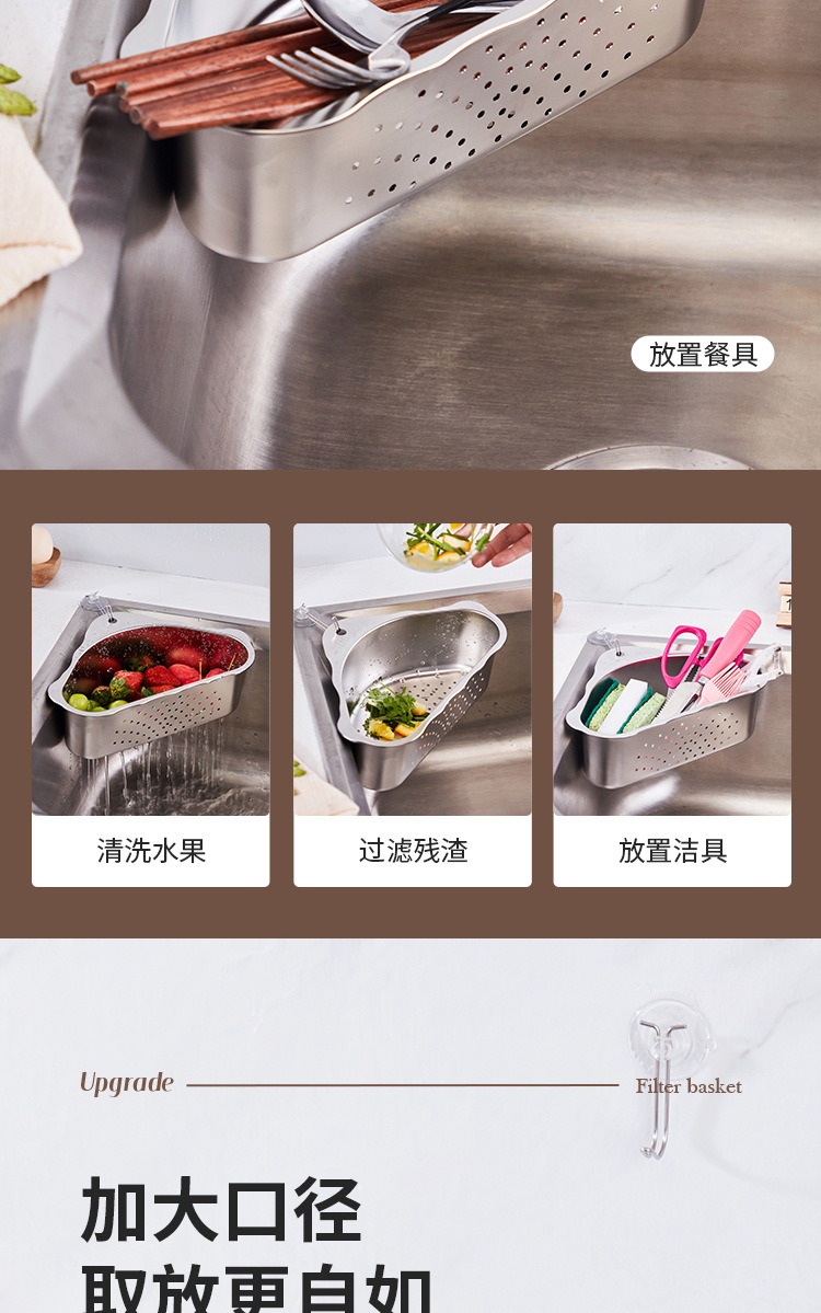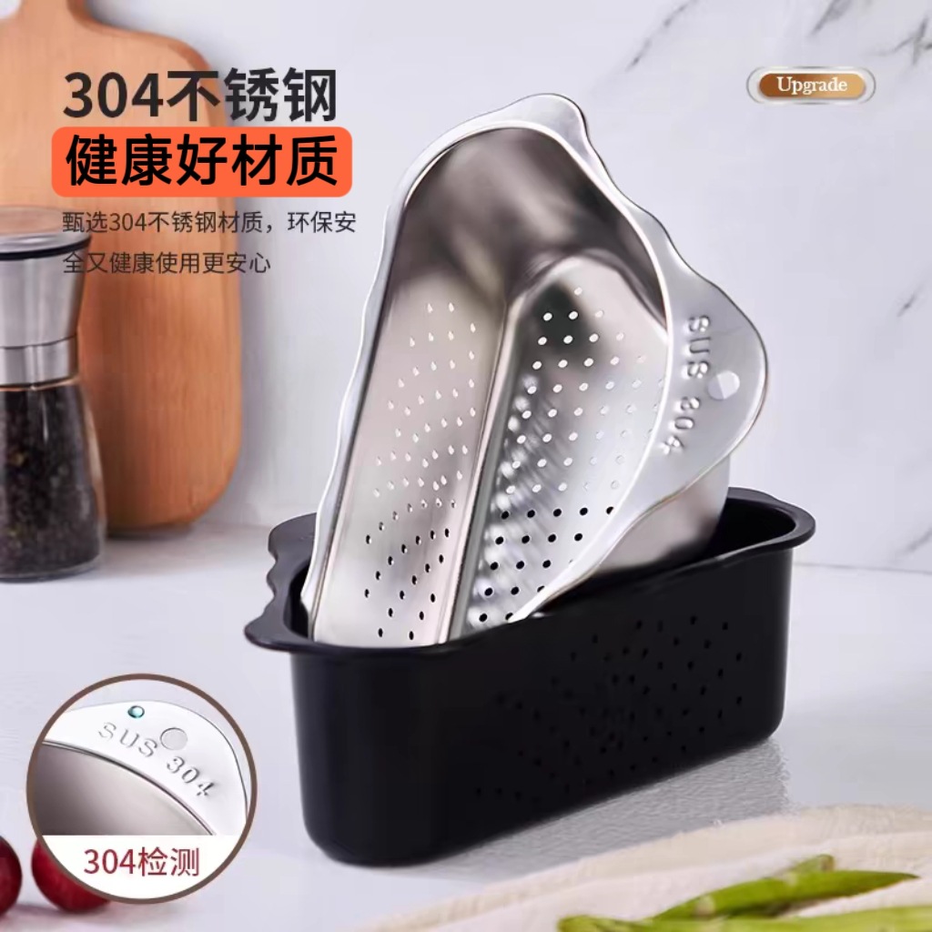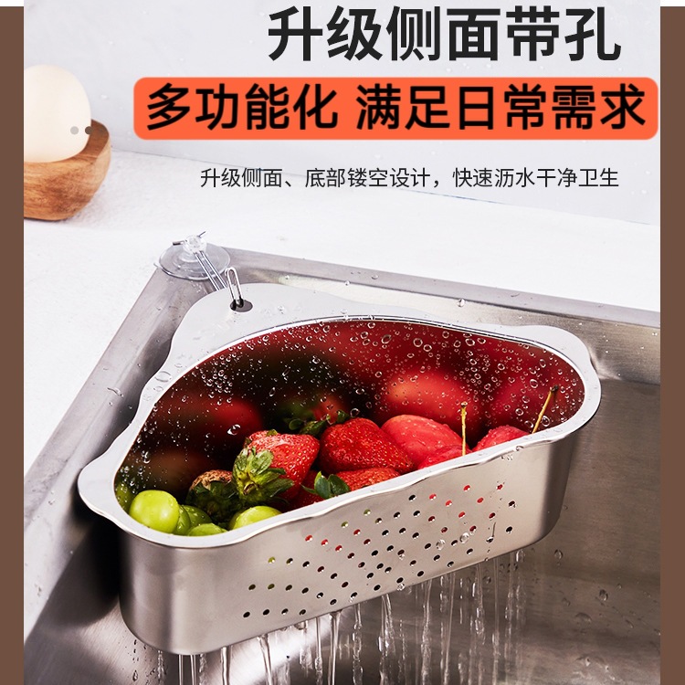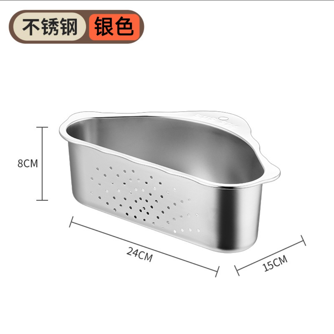 304不锈钢三角形水槽沥水篮厨房水池置物架洗碗盆滤渣海绵收纳筐