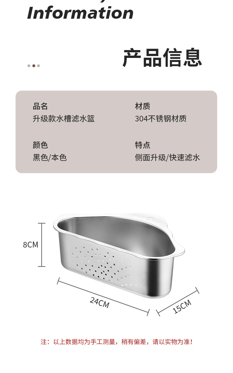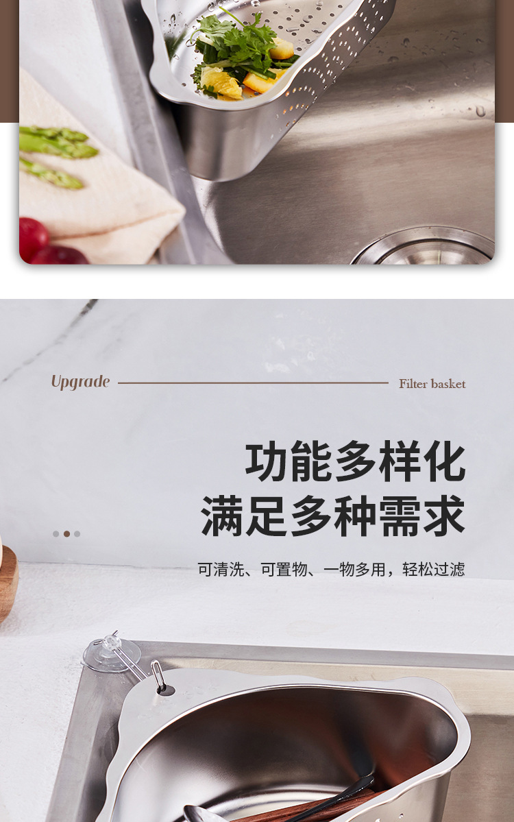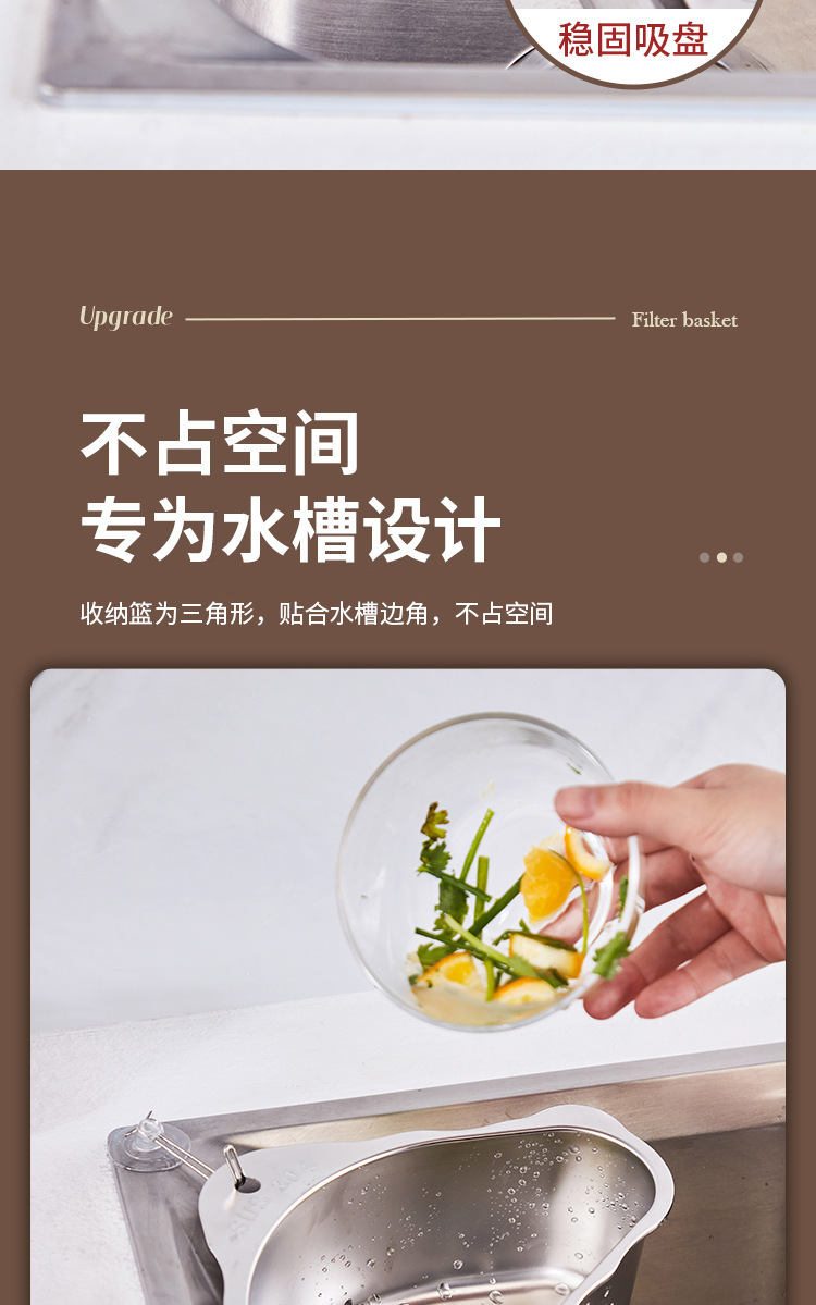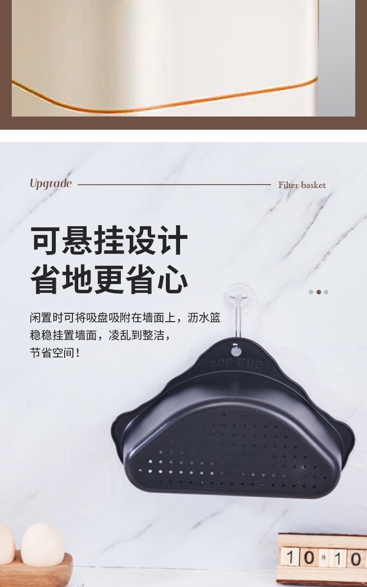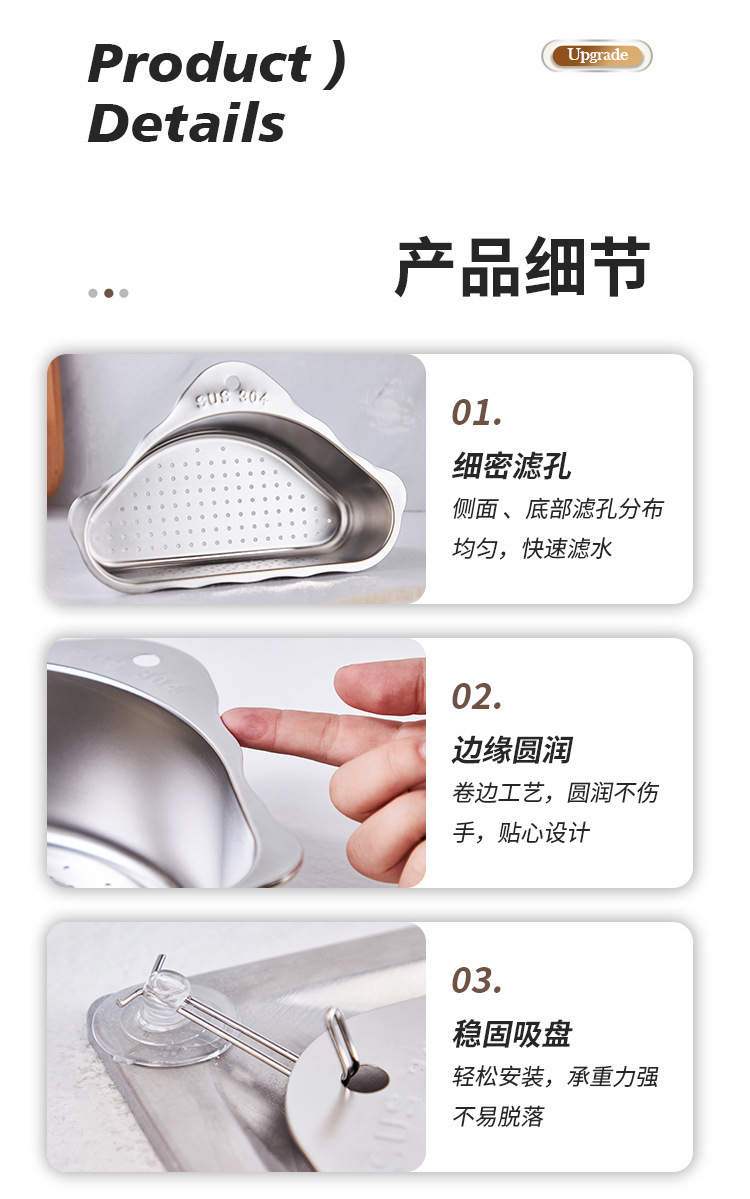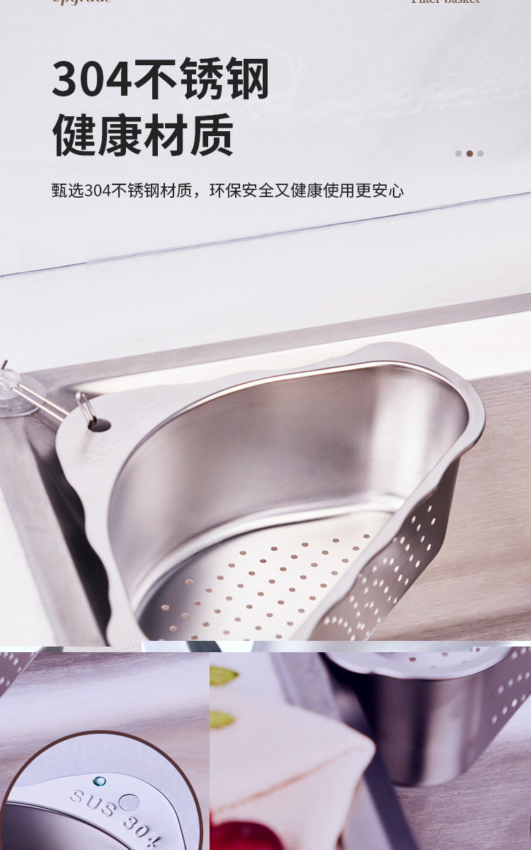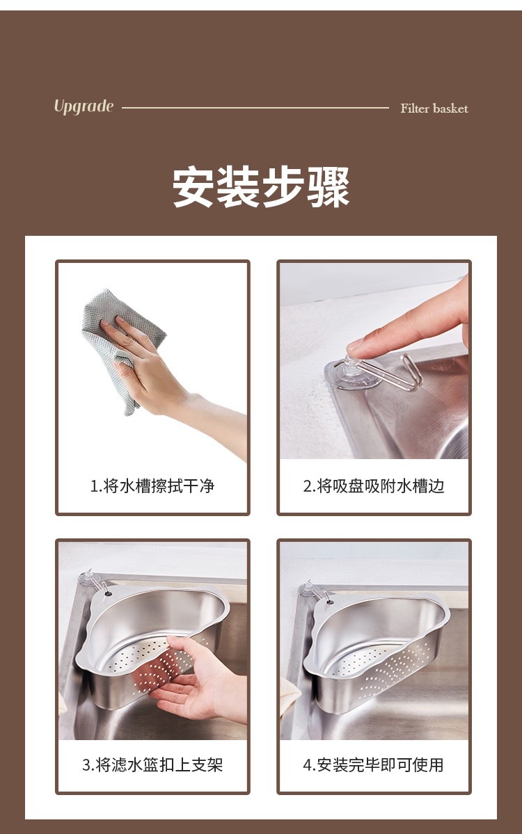 304不锈钢三角形水槽沥水篮厨房水池置物架洗碗盆滤渣海绵收纳筐