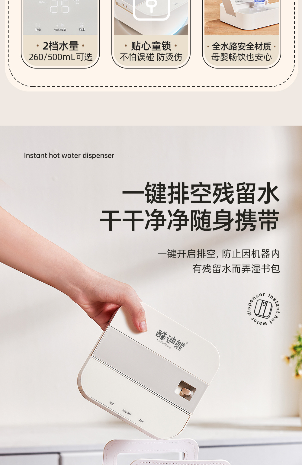 Мини-диспенсер для мгновенного нагрева воды для путешествий и командировок, портативный небольшой настольный диспенсер для воды для общежитий, производит горячую воду за 3 секунды.