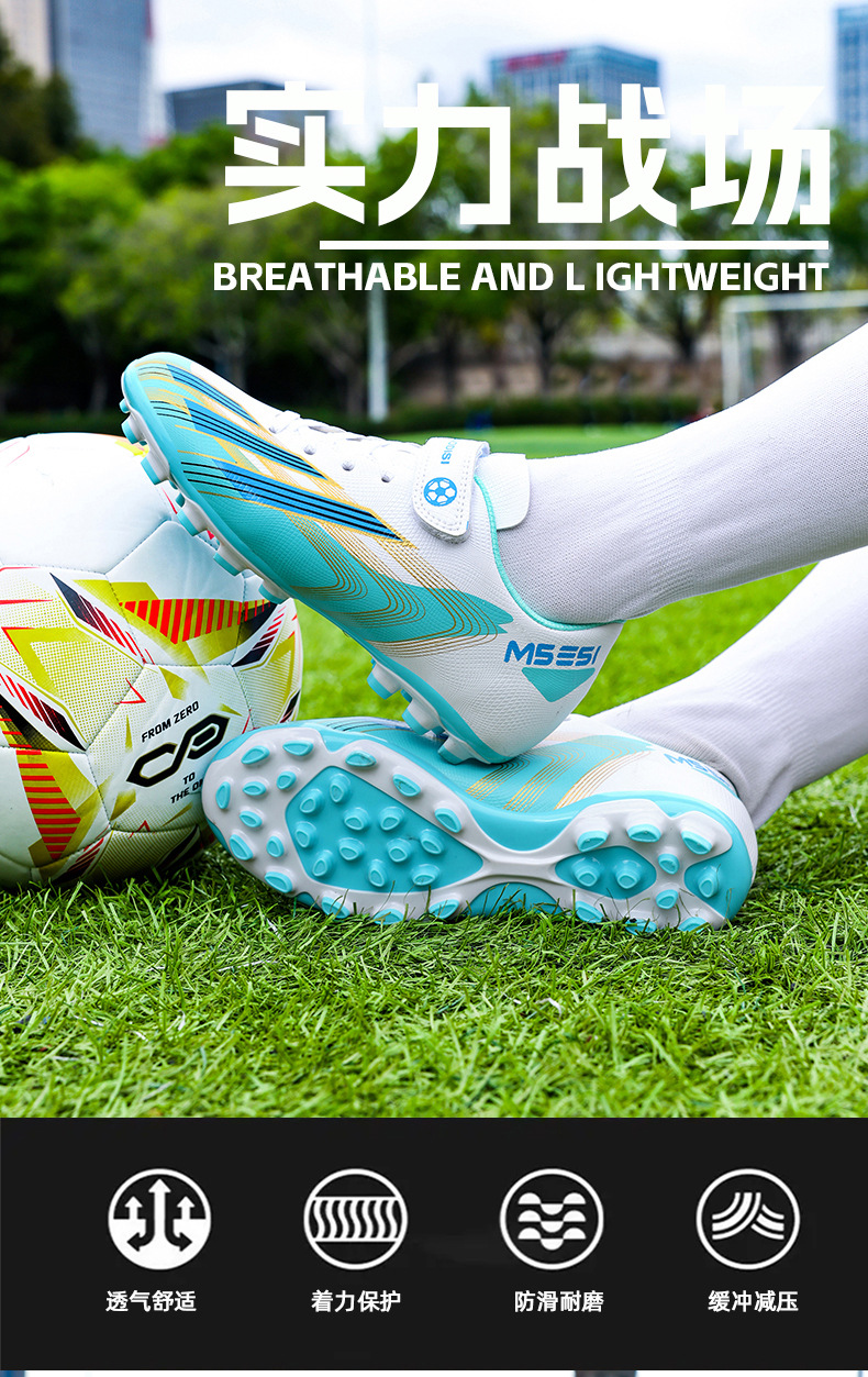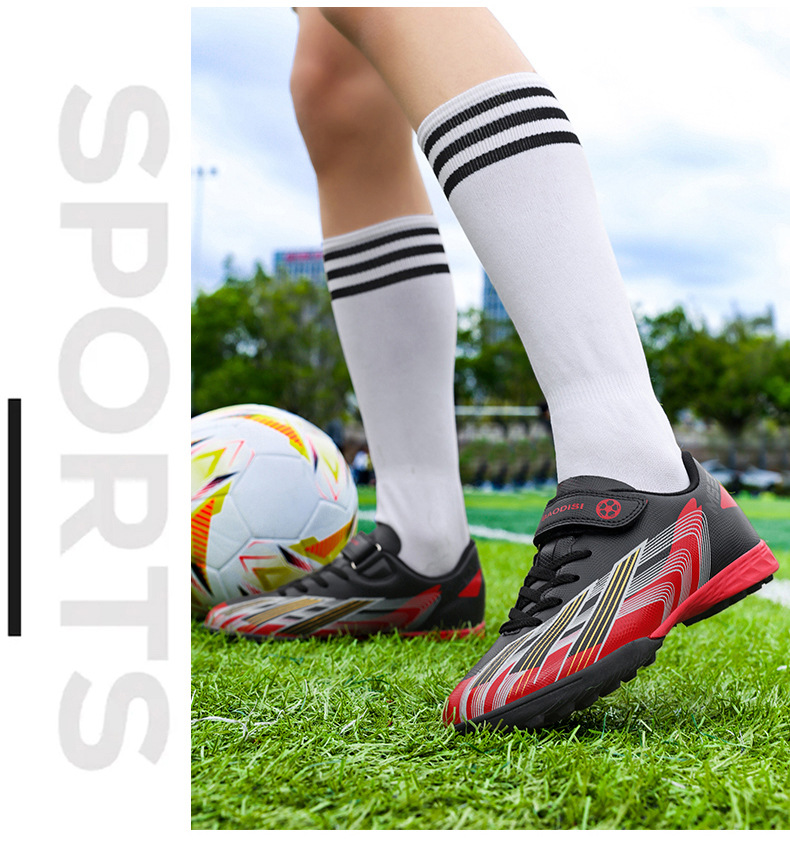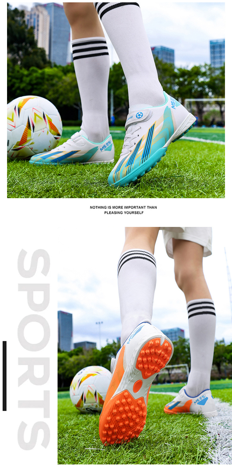 Бесплатная обувь через границу, дышащие детские футбольные бутсы на липучке, спортивная обувь для кампуса, профессиональная нескользящая тренировочная обувь