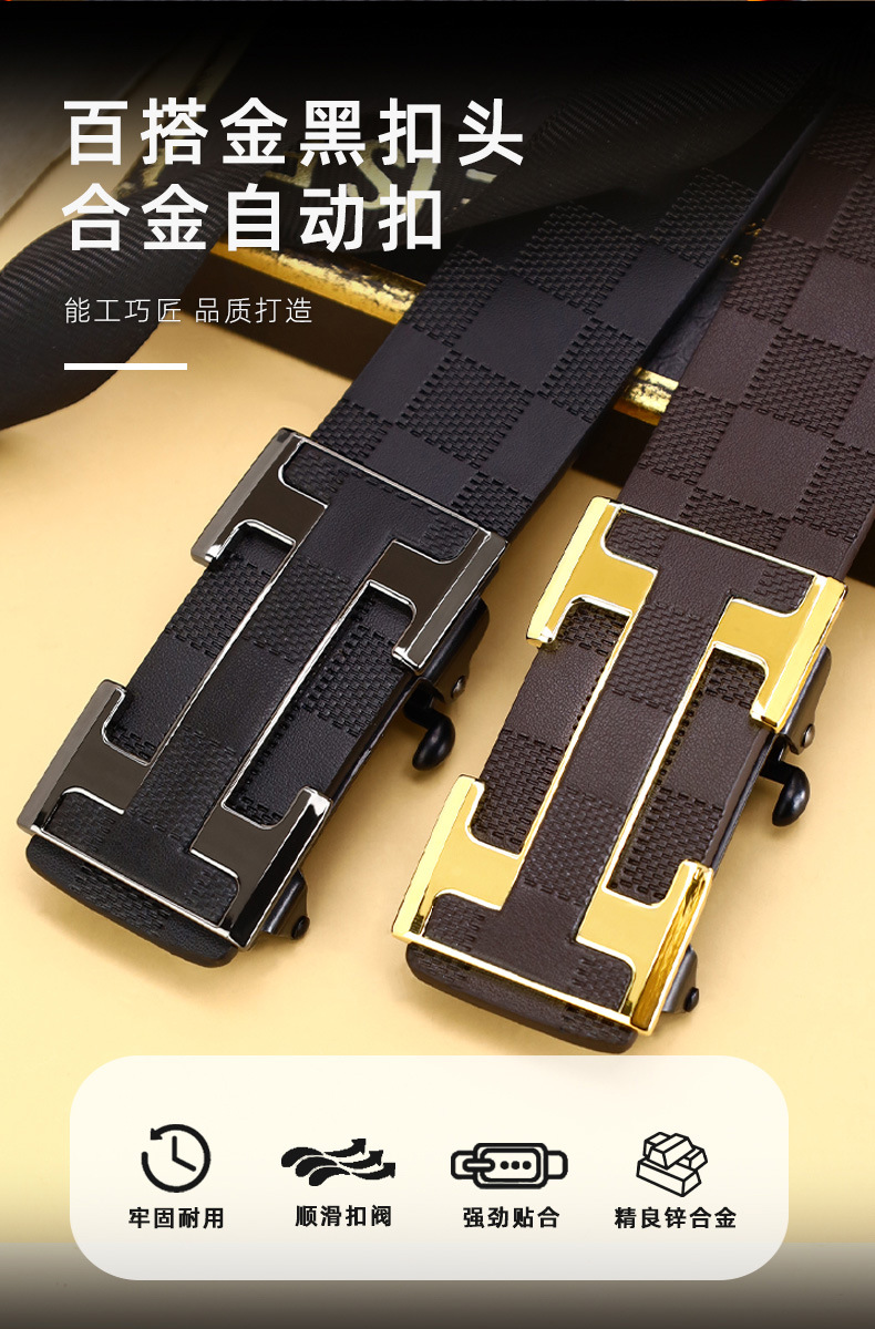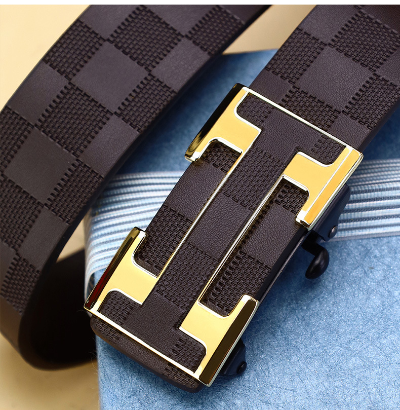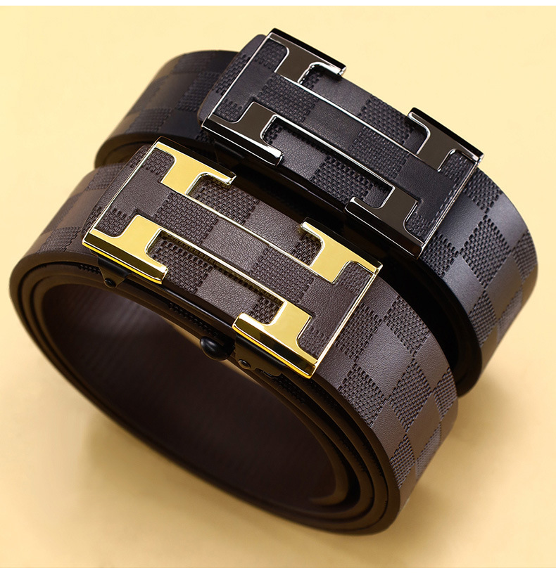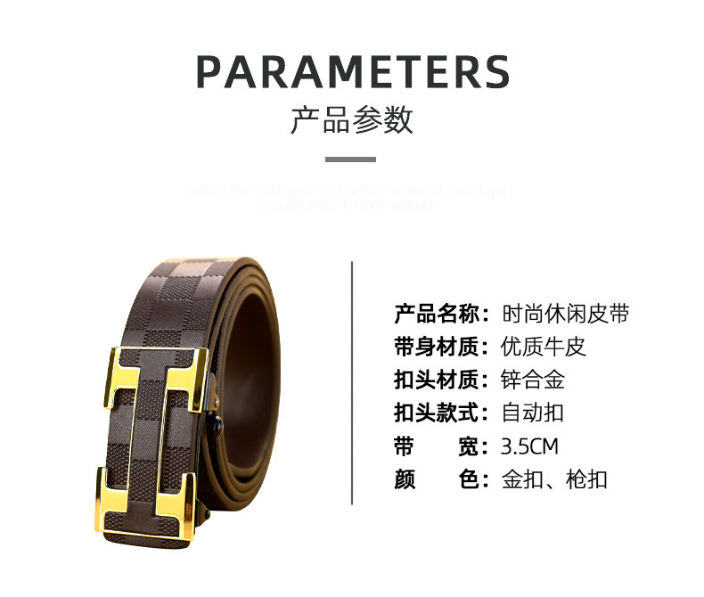 Мужской ремень в клетку с пряжкой из сплава, деловой повседневный пояс, широкий пояс с I-образной пряжкой из Гуанчжоу