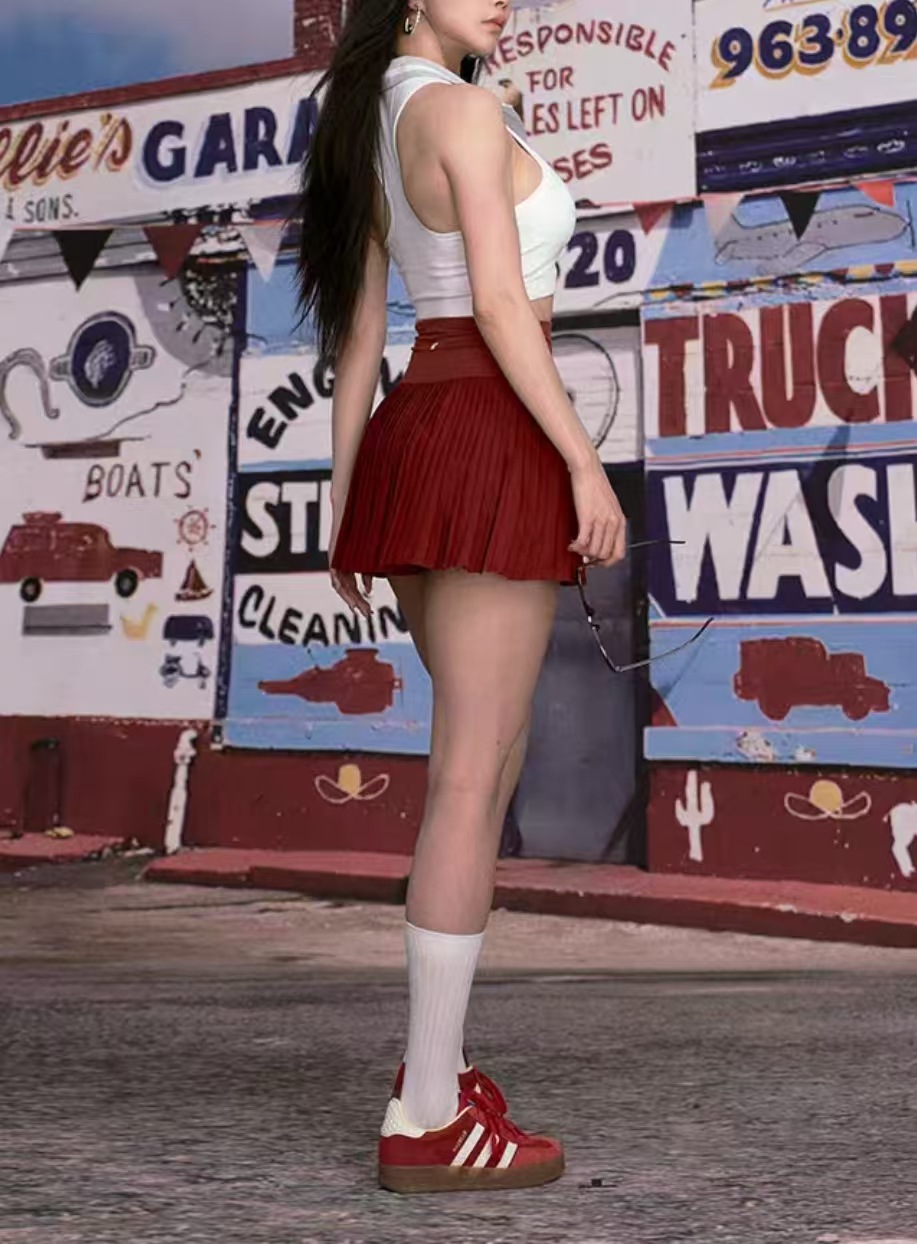 темно-синий топ; Белый топ лунного света; Темно-синяя юбка; Винтажная красная юбка