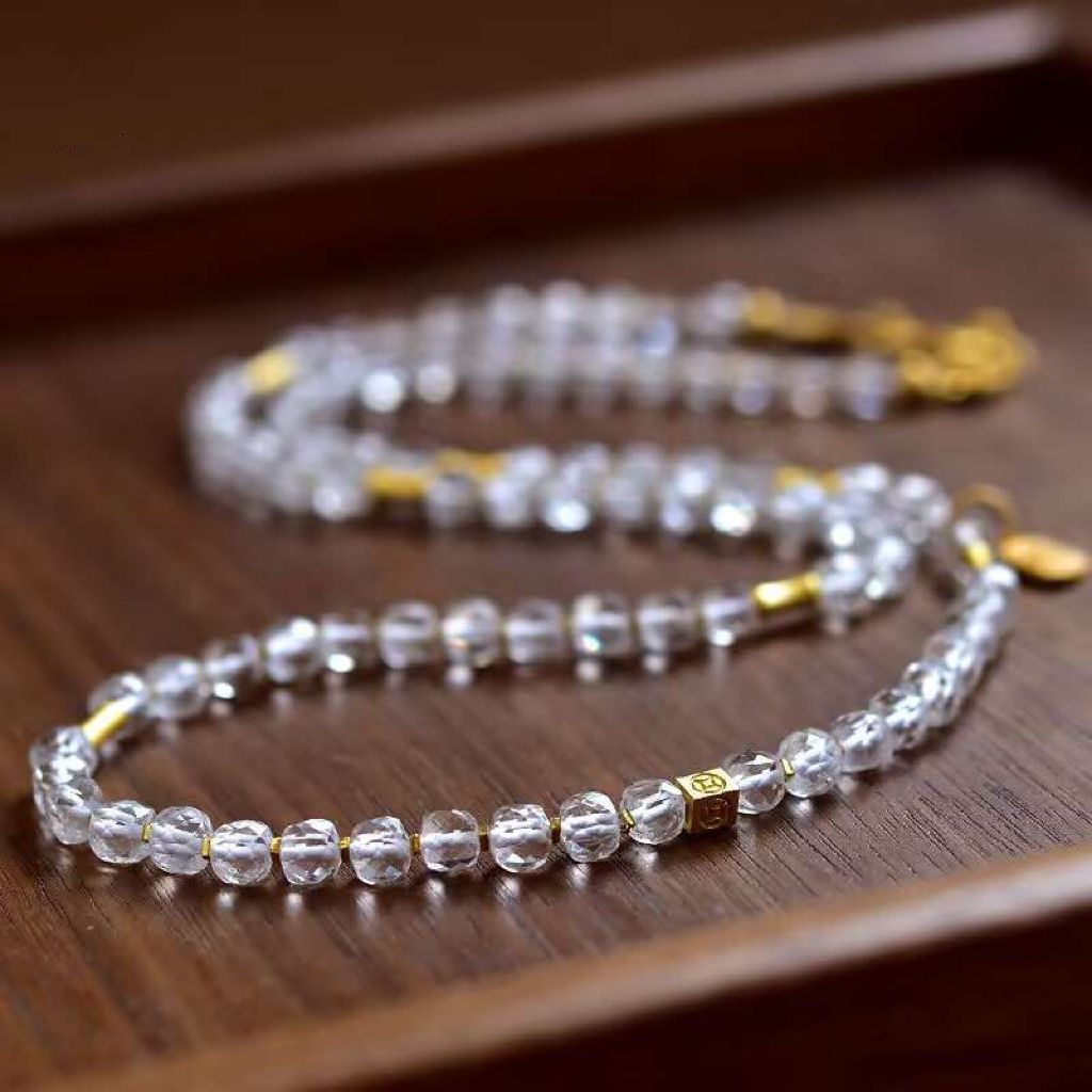 Белый хрустальный браслет для женщин, браслет из нефрита с кристаллами агата из Восточно-Китайского моря, свободные бусины, карта удачи, маленькое ограненное ожерелье в виде кубиков сахара