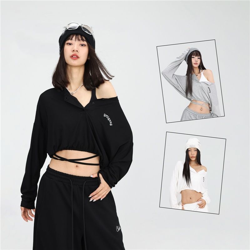 Уличные танцы, модный бренд, джазовый танец, мягкая ленивая блузка, kpop, сексуальный дышащий топ с длинными рукавами, женский короткий стиль
