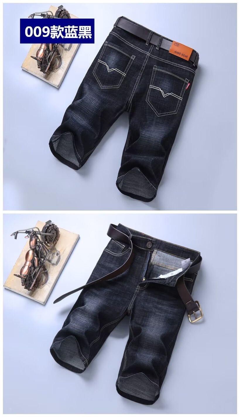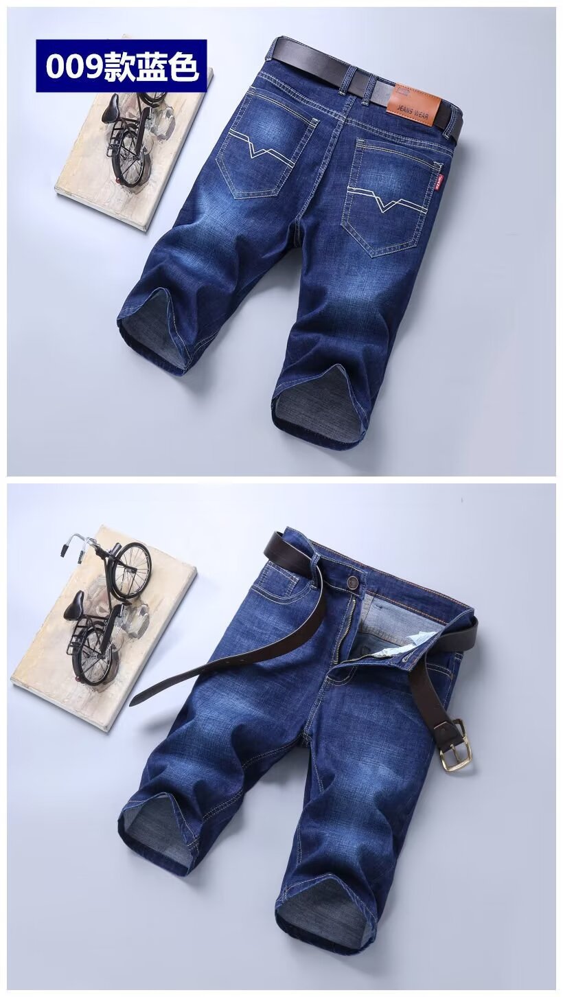 009 джинсовые шорты мужские укороченные брюки тонкие свободные прямые брюки повседневный большой размер мужские полуэластичные бриджи