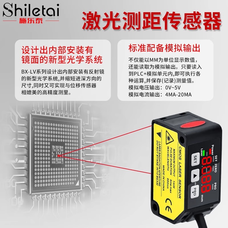 Высокоточный аналоговый датчик диапазона 0,01 мм, диапазон 0–5 В, точечный лазерный датчик смещения 1 мм, обнаружение высокого и низкого уровня