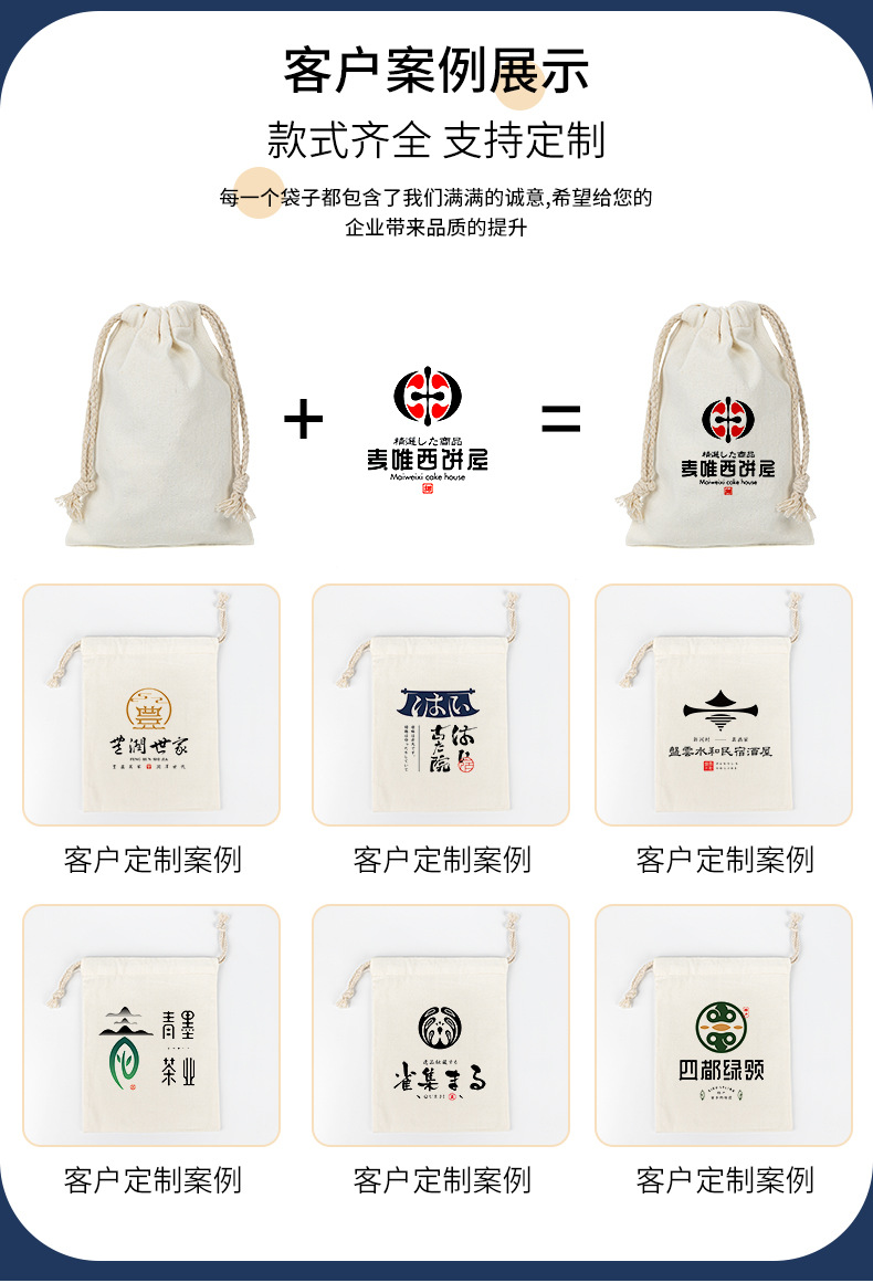 В наличии холщовый мешочек на завязках для хранения, небольшой тканевый мешочек с возможностью печати логотипа для риса, хлопчатобумажной упаковки, чайных пакетиков