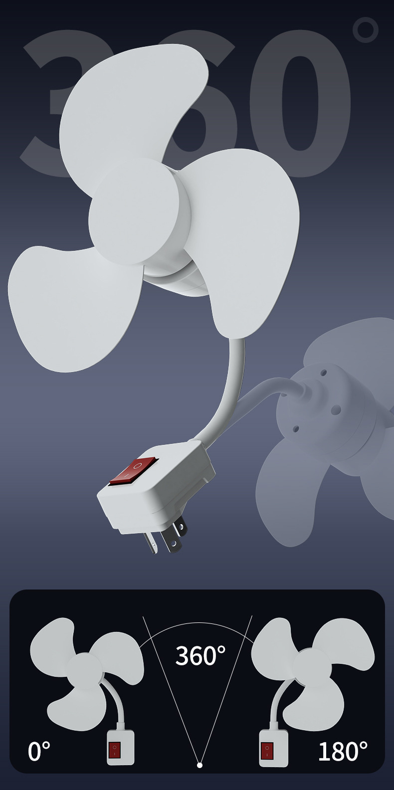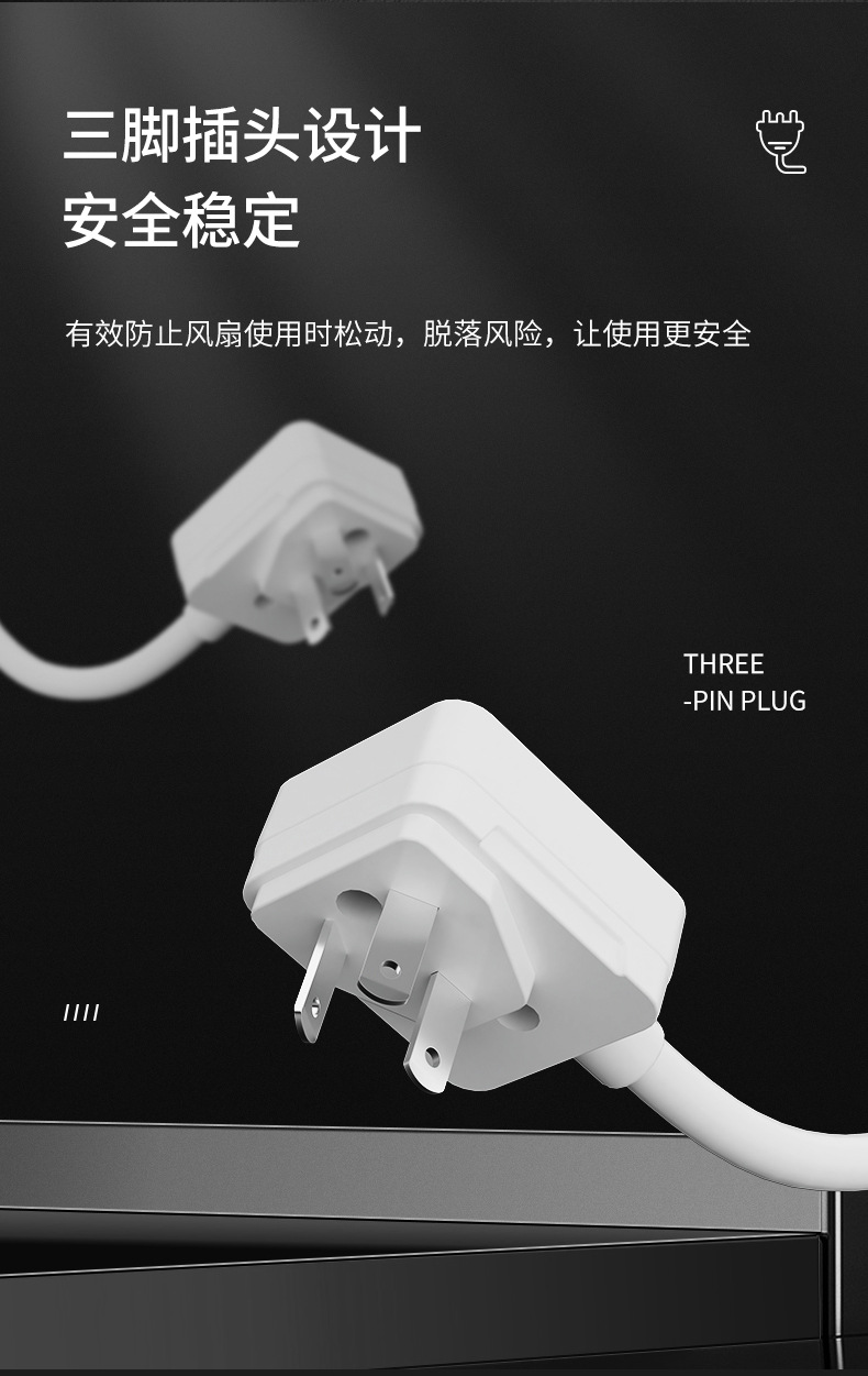 Маленький вентилятор с тремя вилками и встроенной розеткой