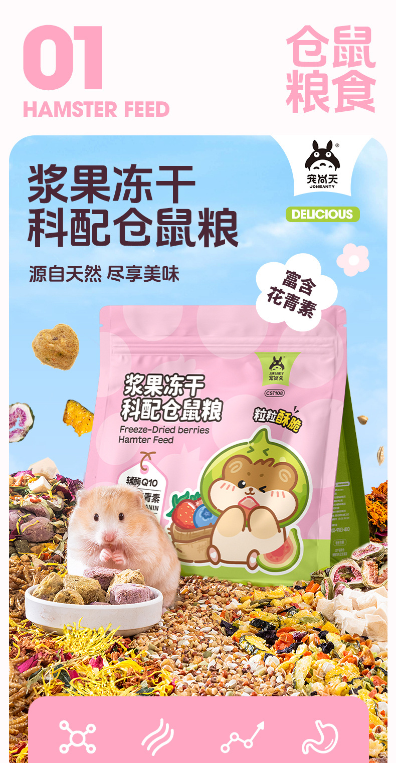 Pet Shangtian, маленький хомяк, лиофилизированная пищевая добавка с ягодами, высокобелковая, высокопитательная, цветочная, антоцианин, корм для золотого медведя