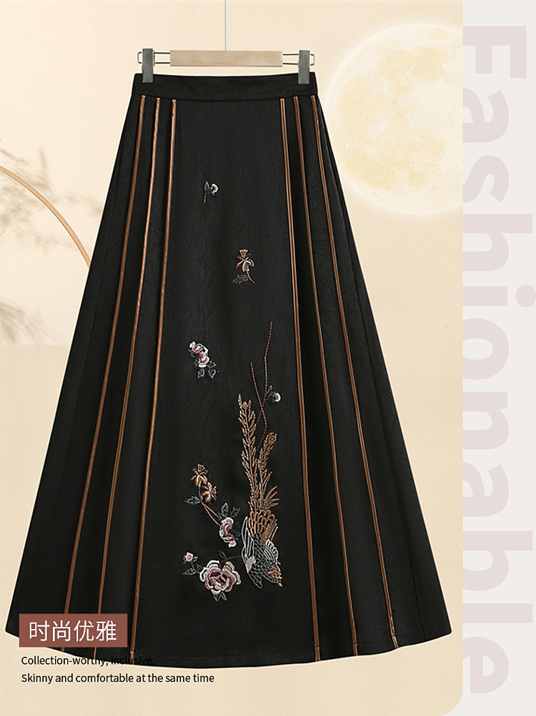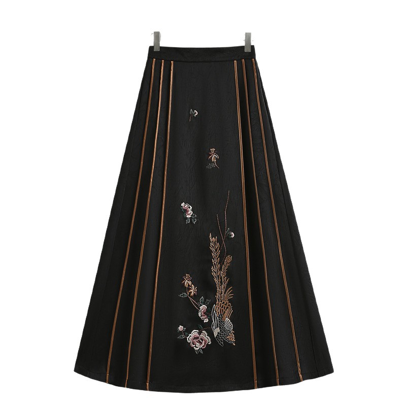 Одежда для матери среднего возраста, женская одежда в китайском стиле, новая женская одежда в китайском стиле, этнический стиль, весенне-летняя женская юбка с вышивкой среднего и пожилого возраста, юбка с лошадиной лицом