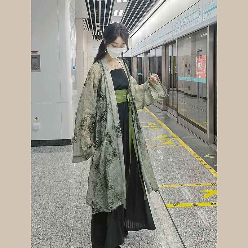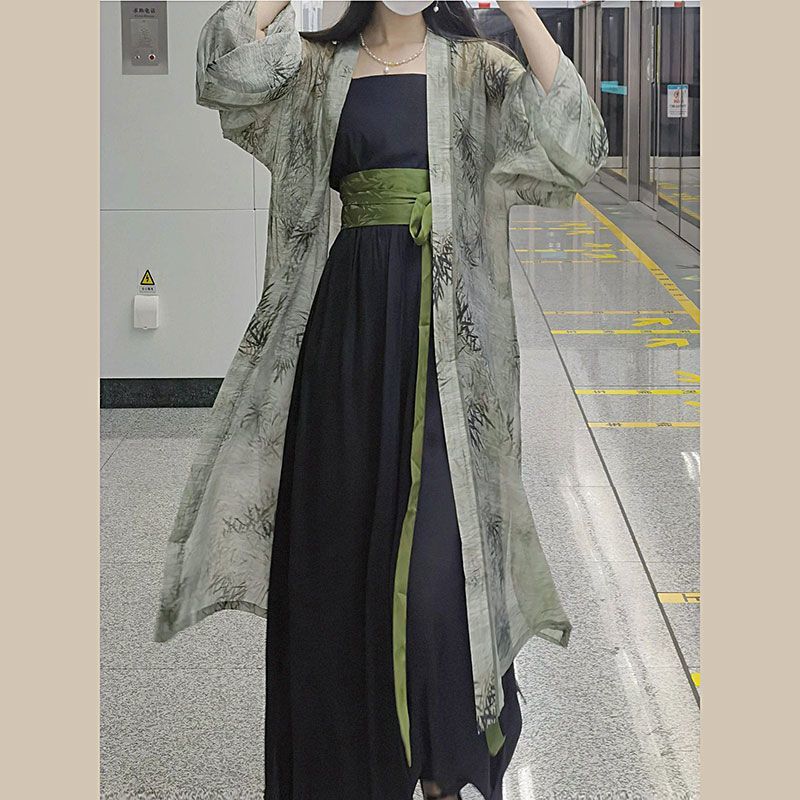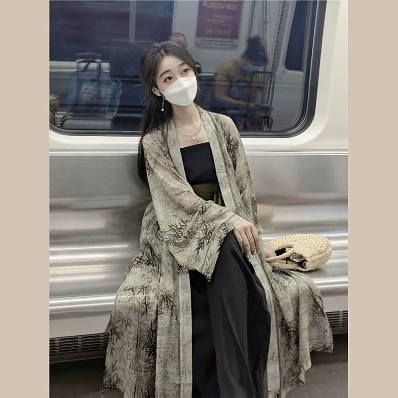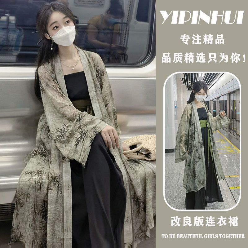Женский комплект Hanfu, лето 2023, новая улучшенная версия, новая китайская ретро-шаль, куртка на подтяжках, широкие брюки, комплект из двух предметов
