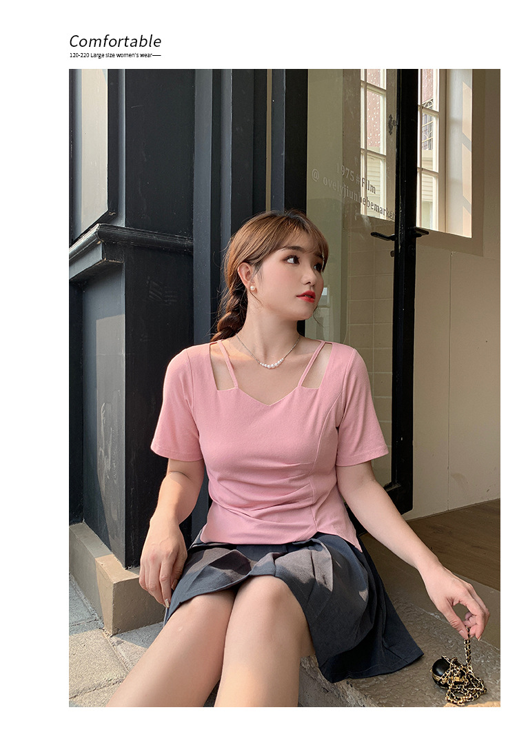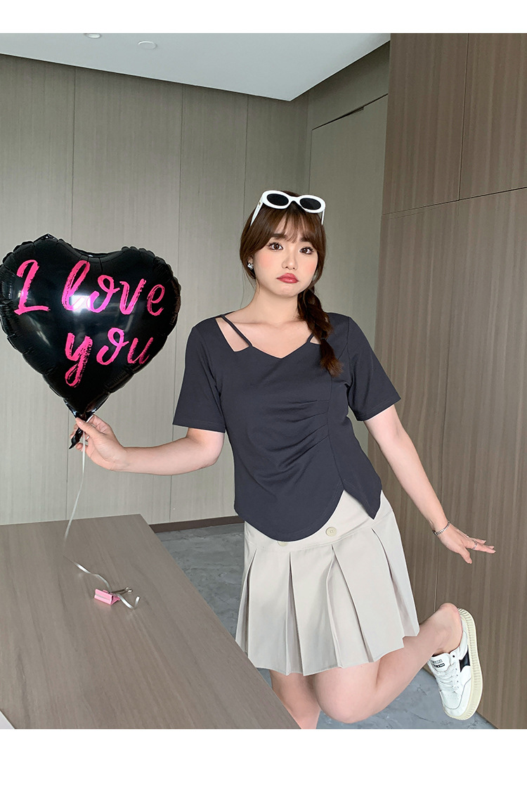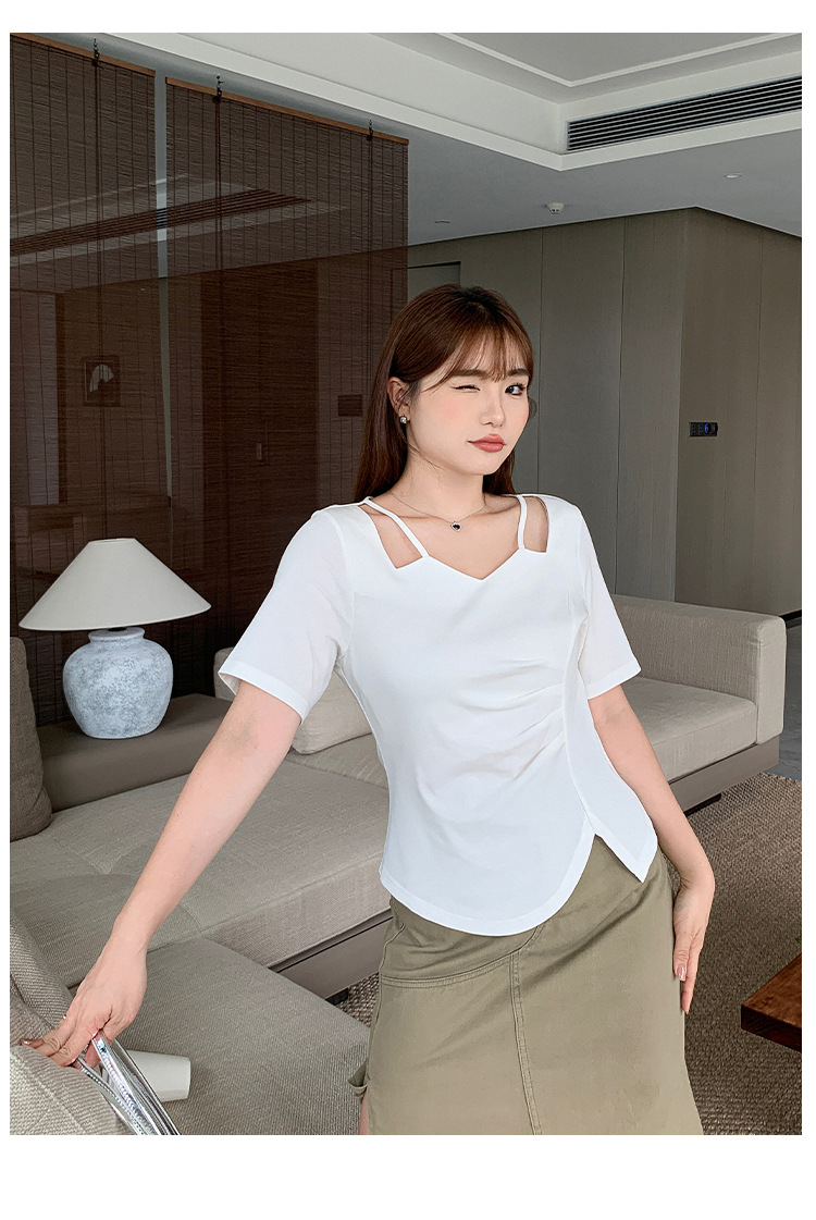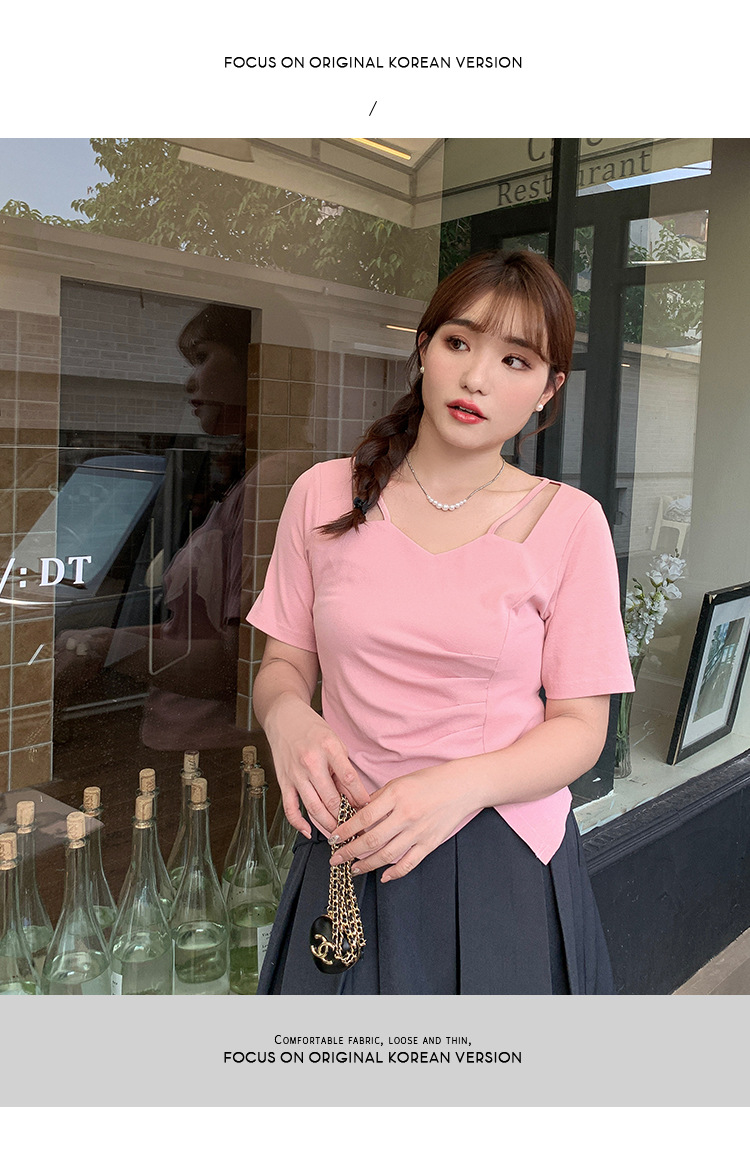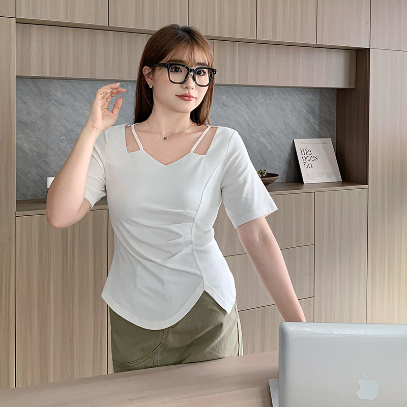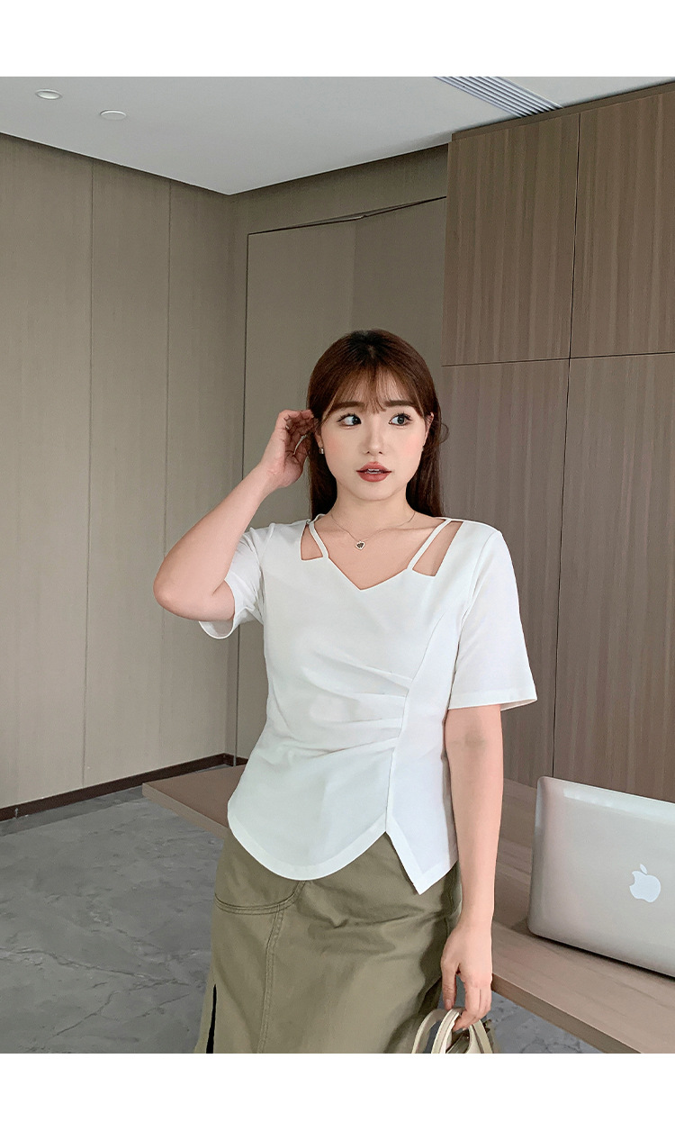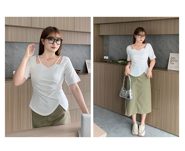62688 Chrs Женская летняя новая футболка с коротким рукавом с V-образным вырезом