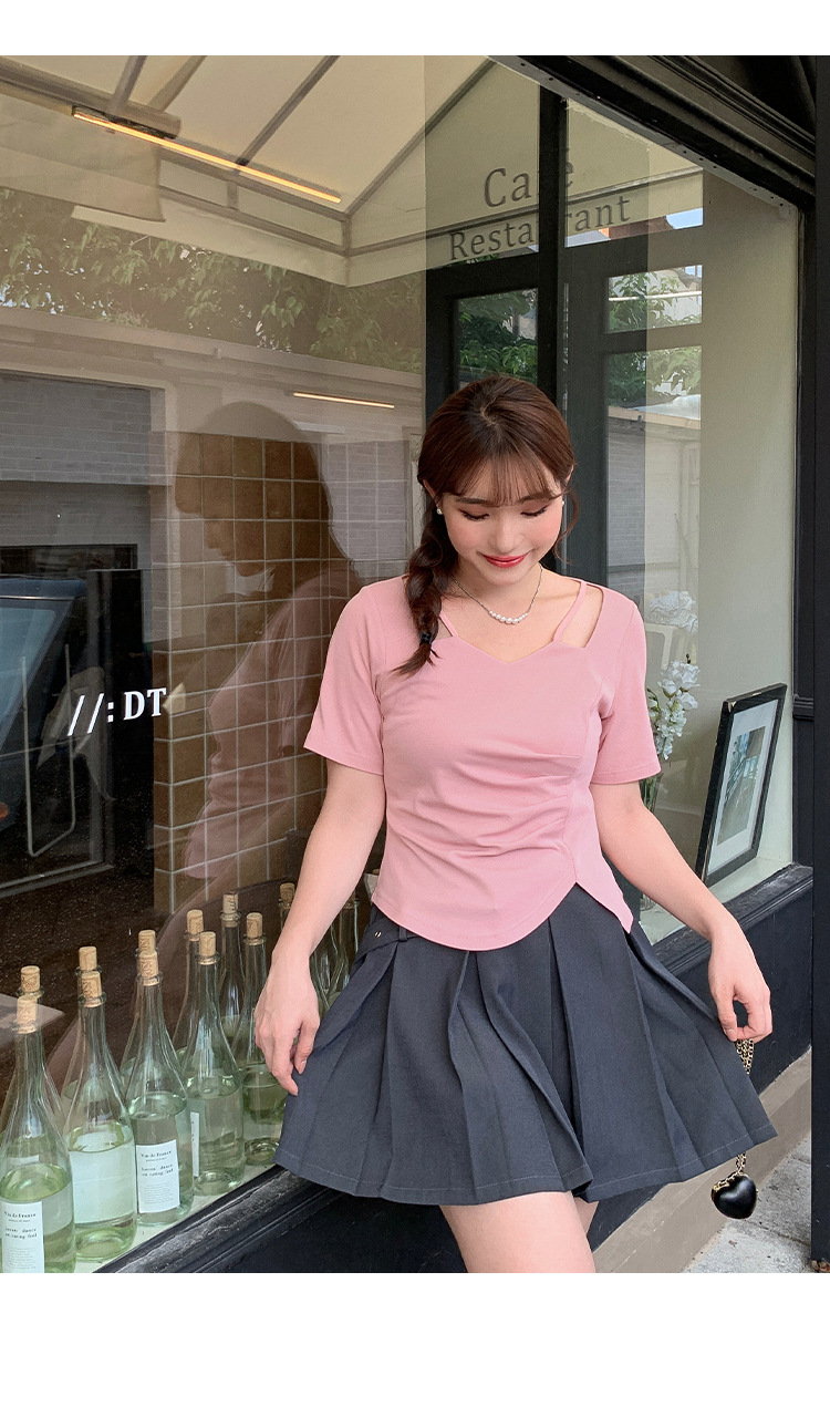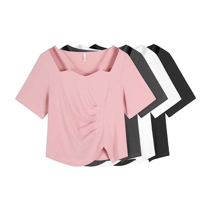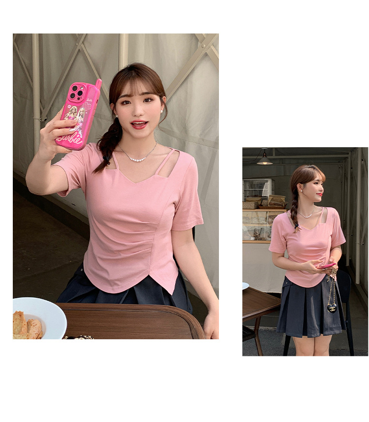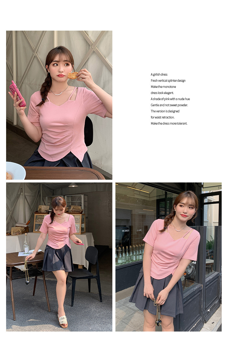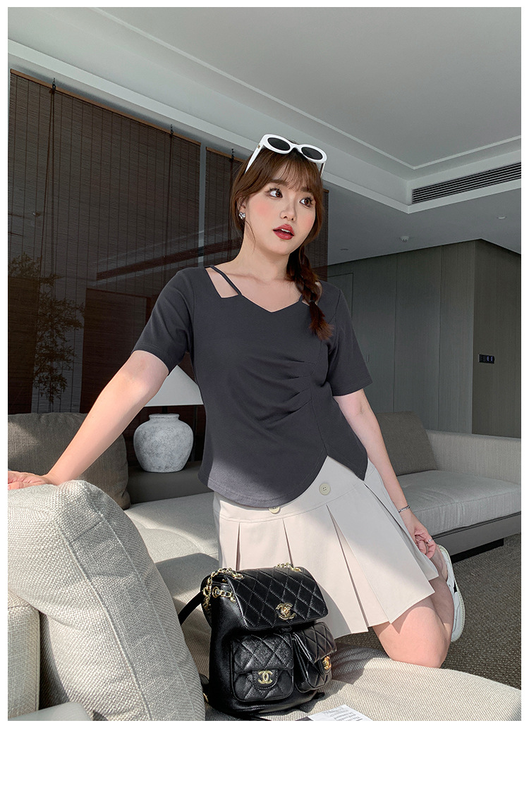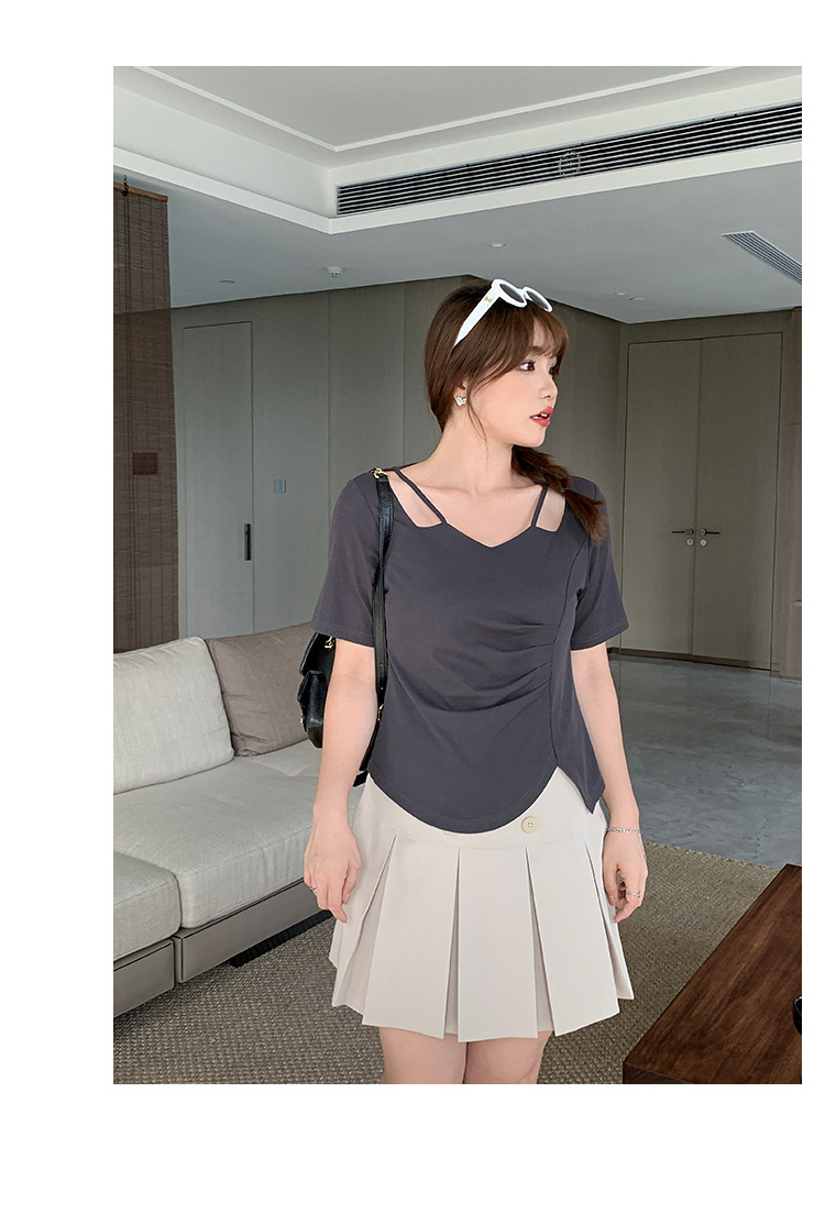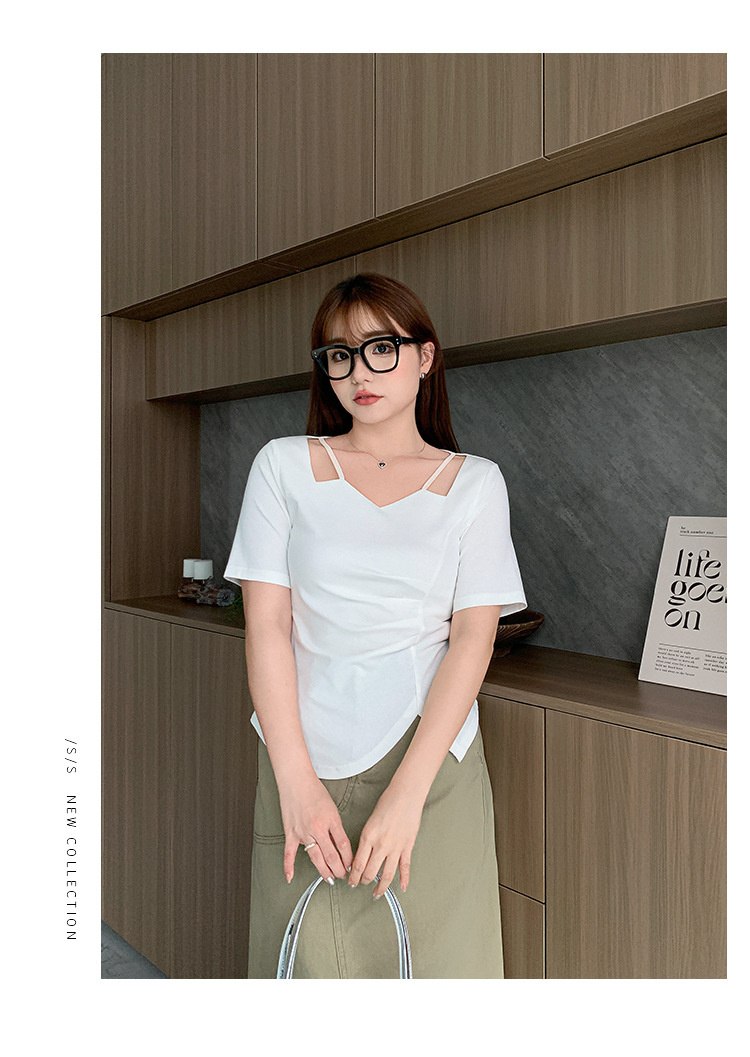62688 Chrs Женская летняя новая футболка с коротким рукавом с V-образным вырезом