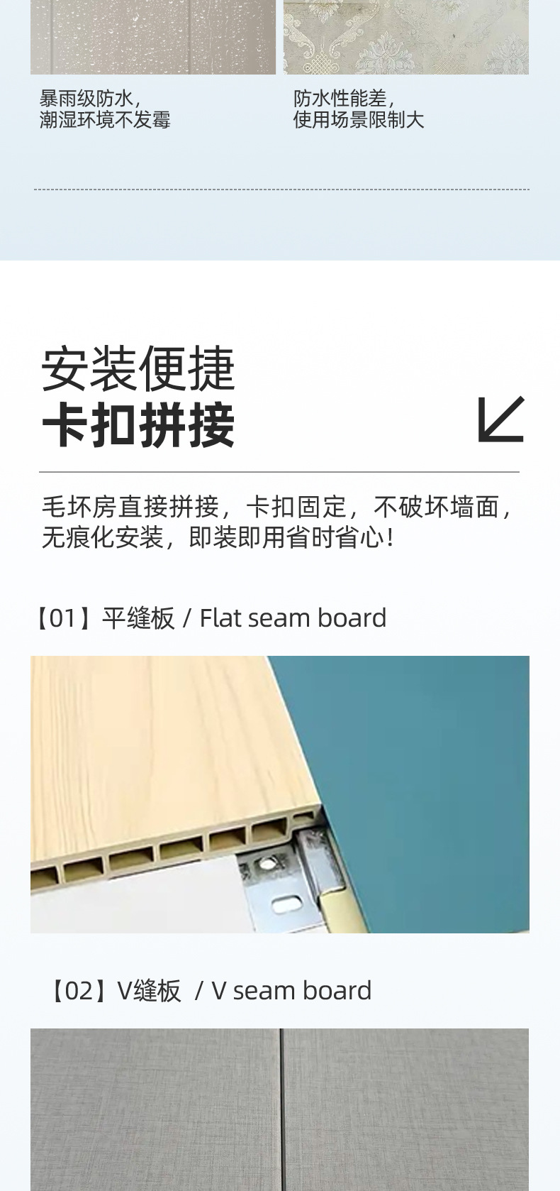 ПВХ-панель для стен с бамбуковым волокном, водонепроницаемая и влагостойкая, быстросборная защита стен.