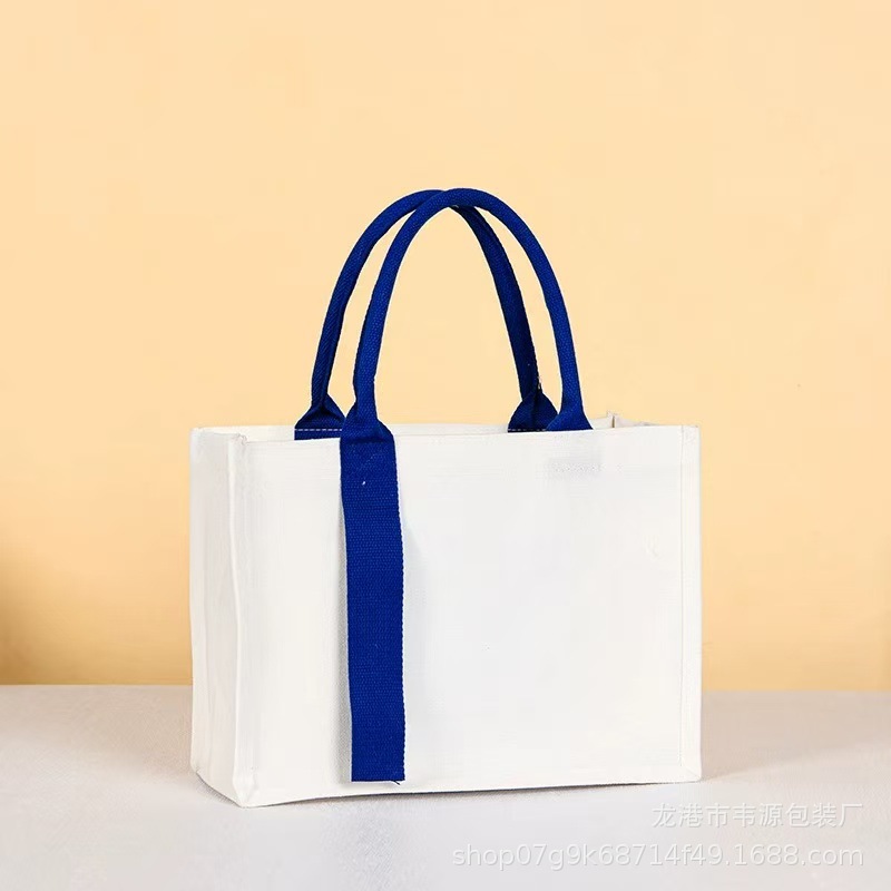Пустая ламинированная холщовая сумка-тоут, холщовая сумка с лентой с индивидуальным логотипом, стильная рекламная сумка для покупок, стерео сумочка