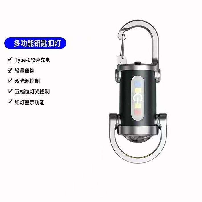 Трансграничный новый брелок сильный свет Type-c зарядка многофункциональный красный синий белый свет COB фонарик зарядка