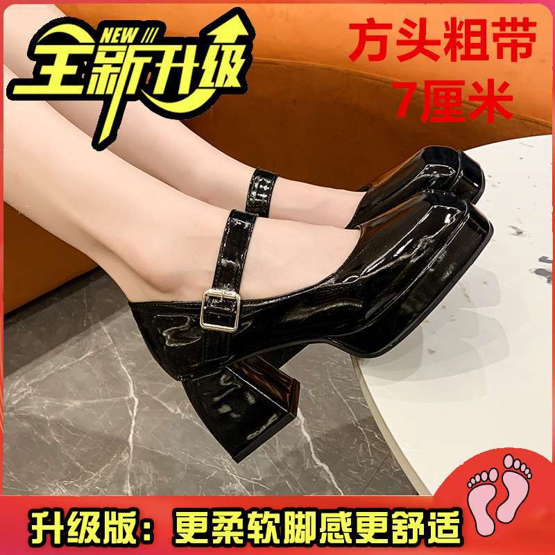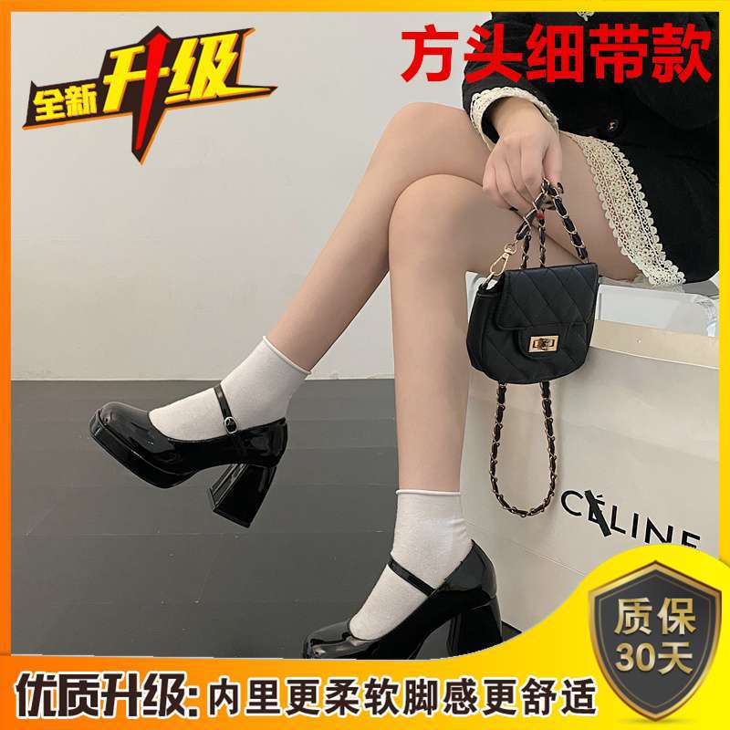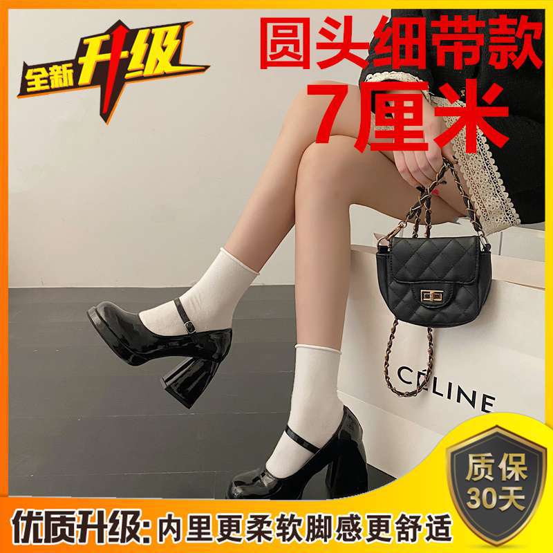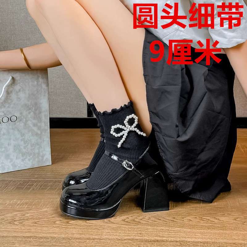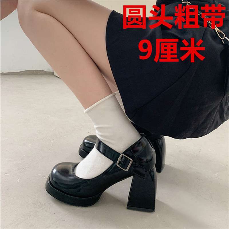 Туфли Мэри Джейн на массивном каблуке, водонепроницаемая платформа, толстая подошва, увеличивающая рост, японский стиль, лакированная кожа для пикантных девушек, черные, элегантные маленькие кожаные туфли на высоком каблуке во французском стиле.