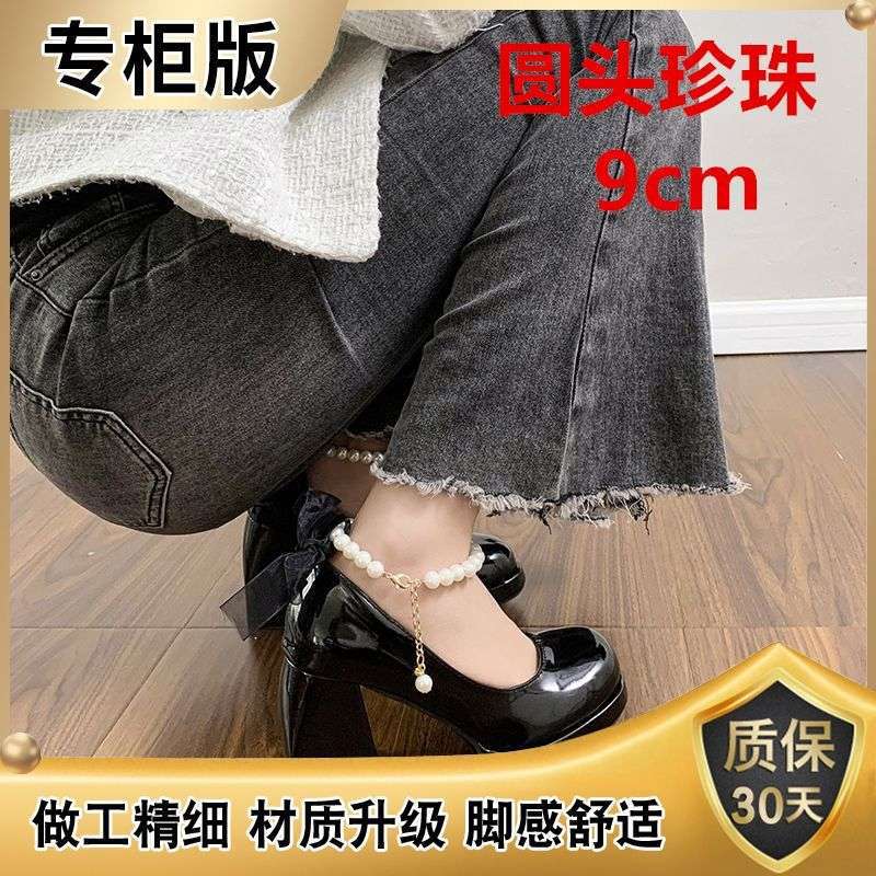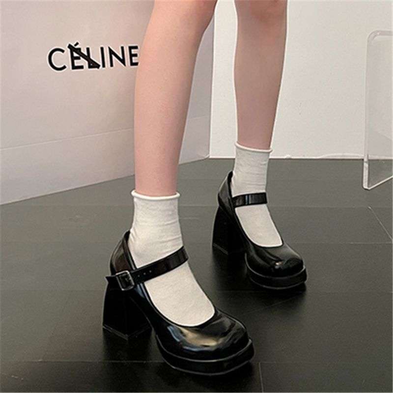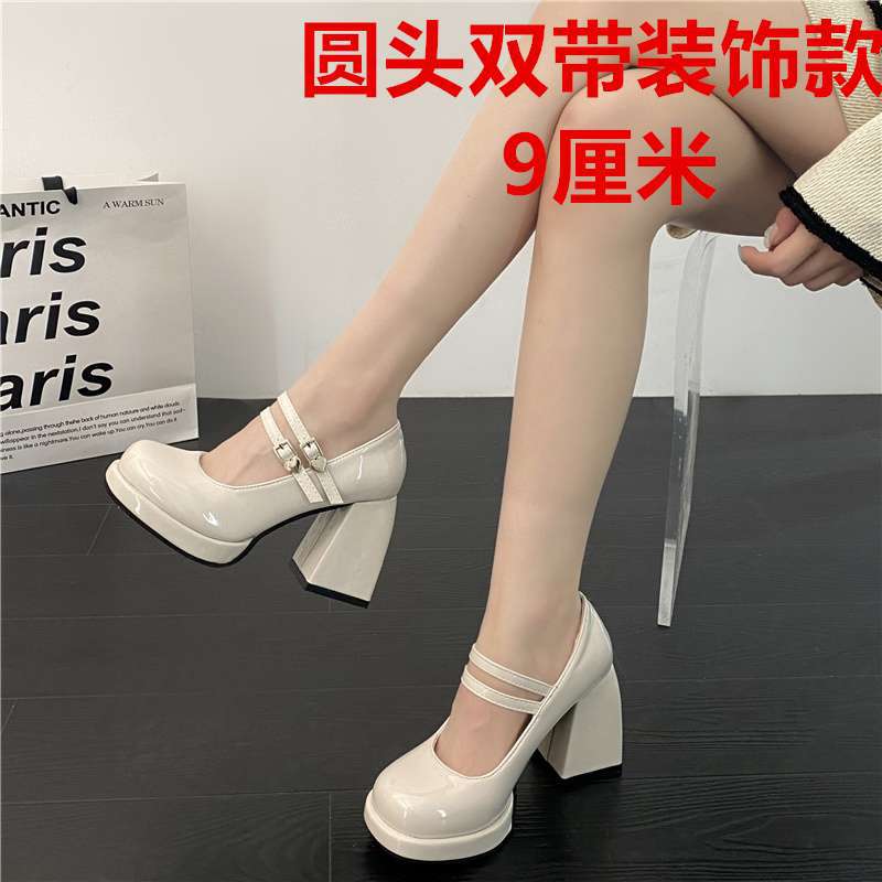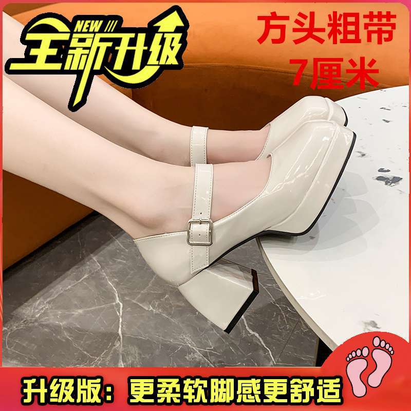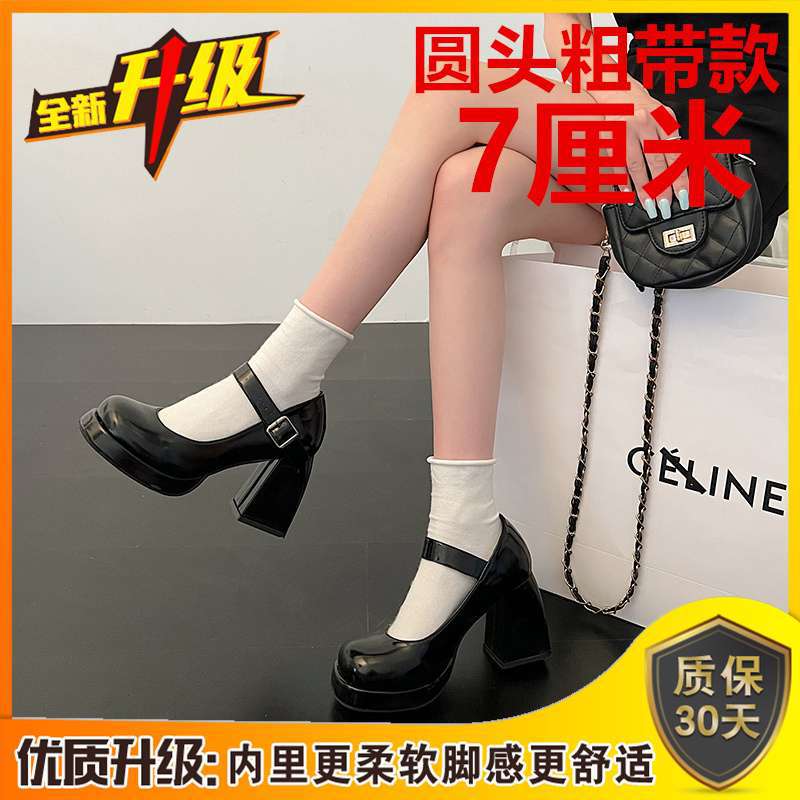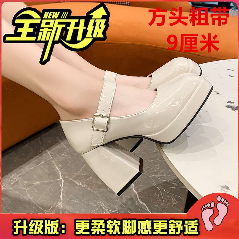 Туфли Мэри Джейн на массивном каблуке, водонепроницаемая платформа, толстая подошва, увеличивающая рост, японский стиль, лакированная кожа для пикантных девушек, черные, элегантные маленькие кожаные туфли на высоком каблуке во французском стиле.