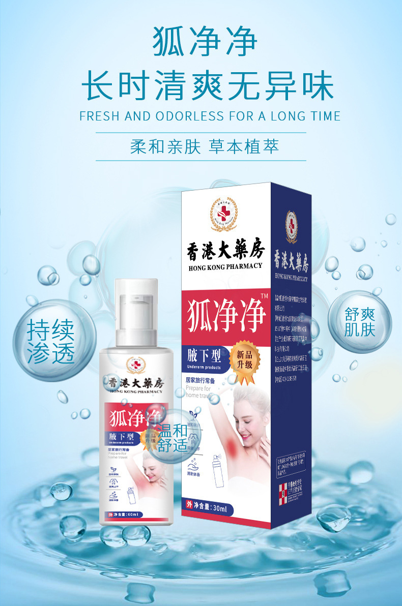 Антиперспирант-спрей от запаха тела, аптека Гонконга, лисья сетка, 30 мл/бутылка, дезодорант от запаха подмышек