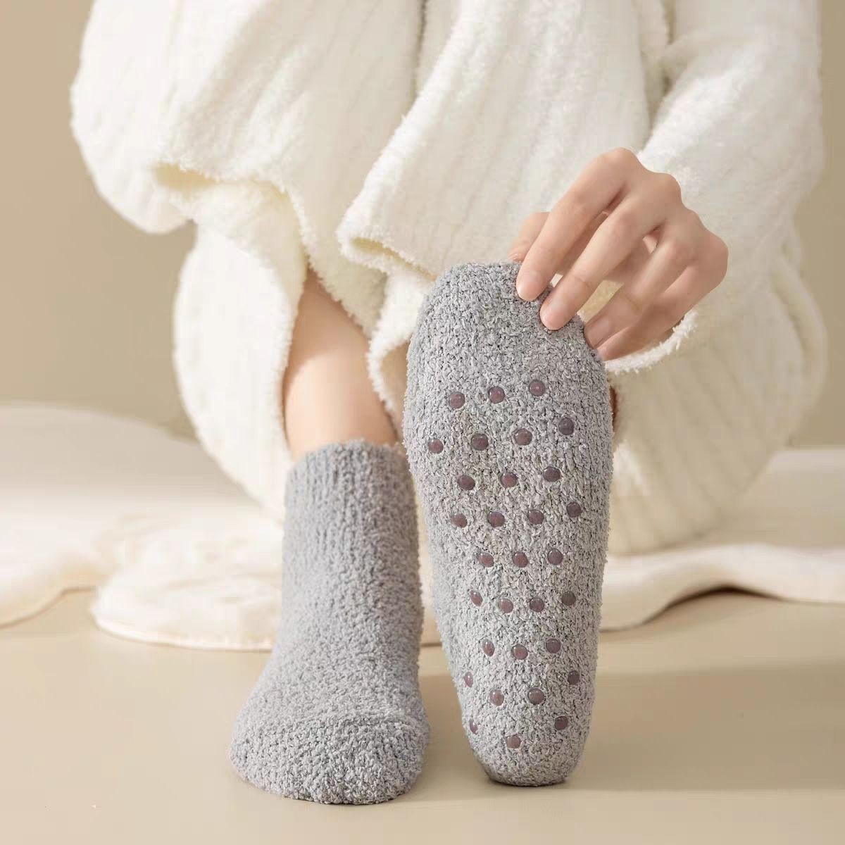 Зимние утолщенные женские коралловые бархатные носки-тапочки, носки для взрослых, противоскользящие носки в горошек для центра раннего образования, домашние носки, носки для йоги