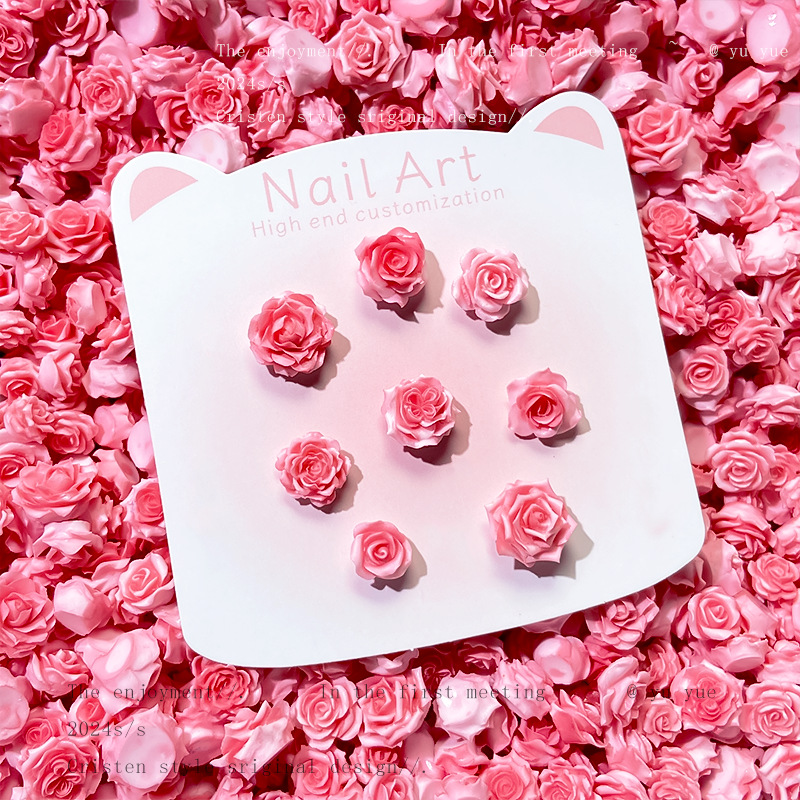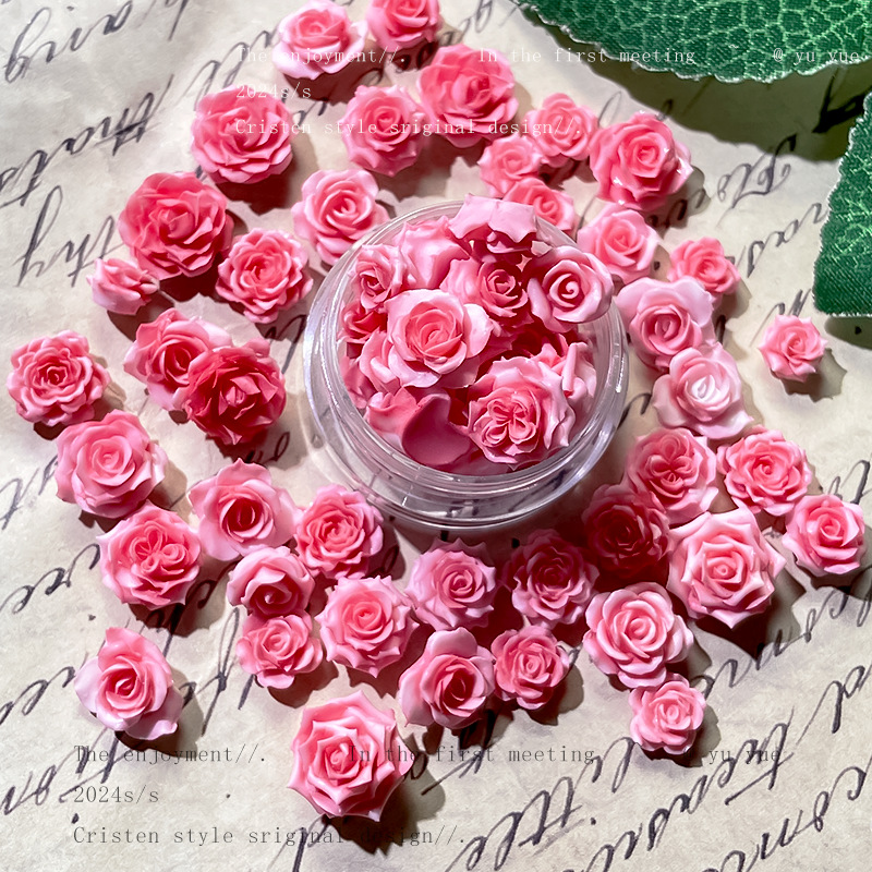 Популярные персиково-розовые мягкие цветочные украшения для дизайна ногтей, смешанные светящиеся трехмерные смоляные боковые цветочные держатели с бриллиантами, украшения для дизайна ногтей, оптовая продажа