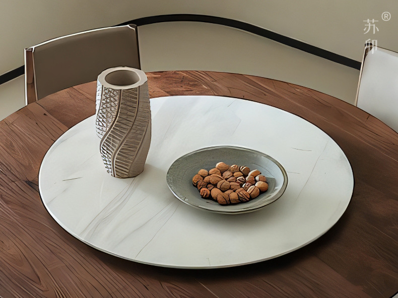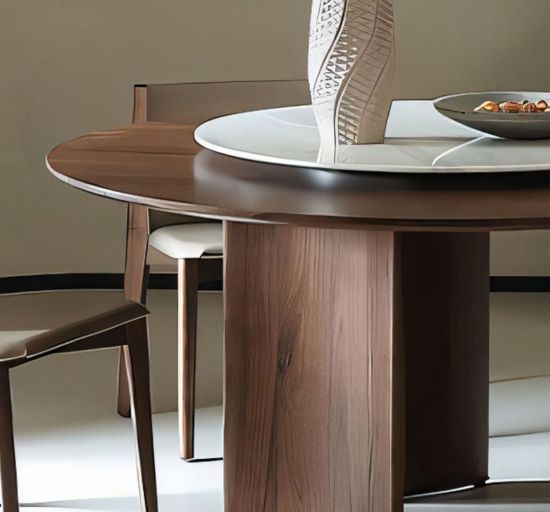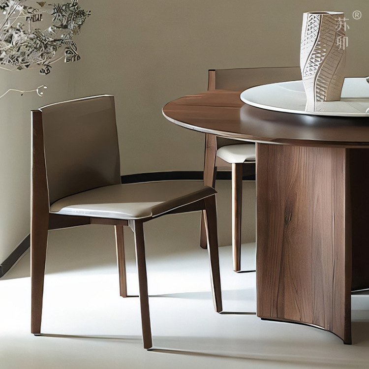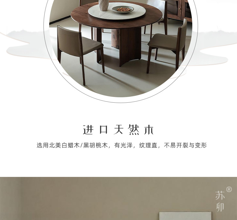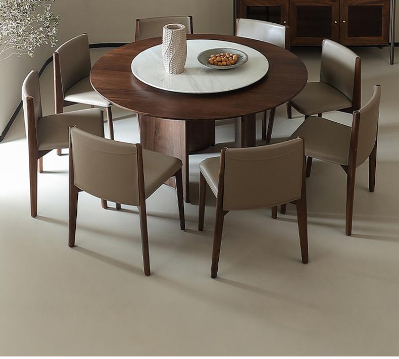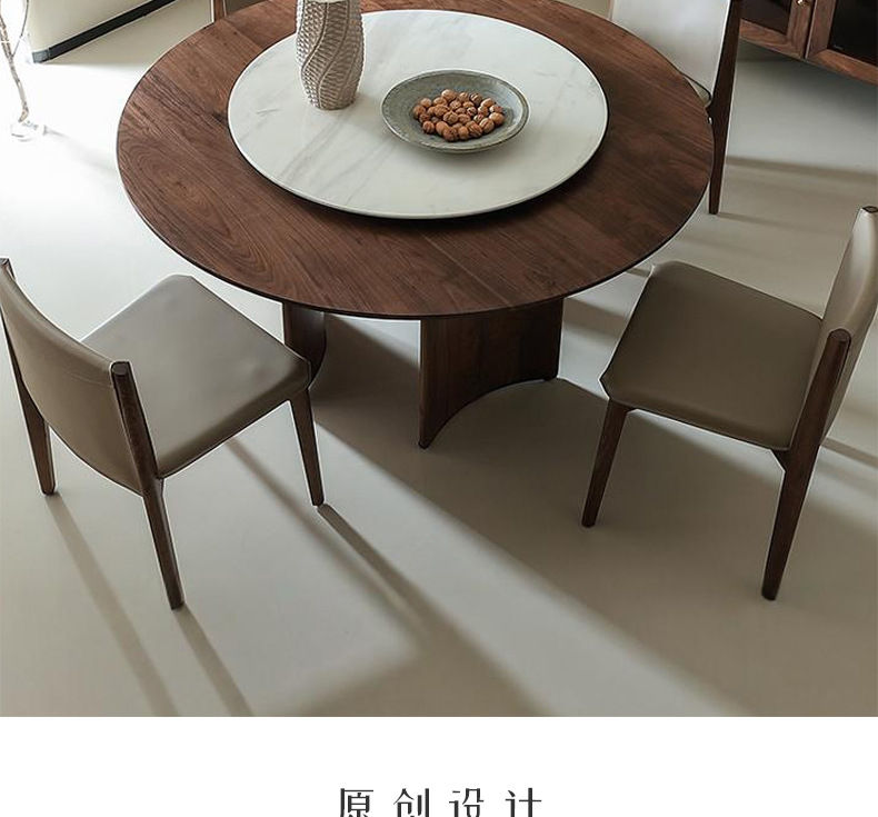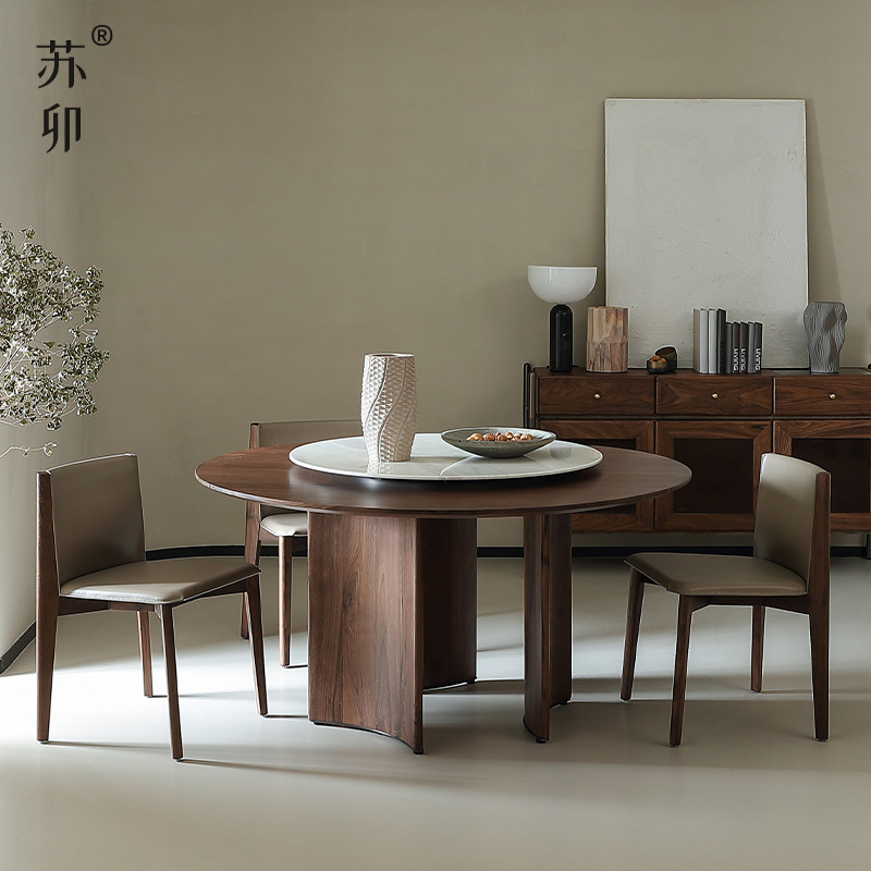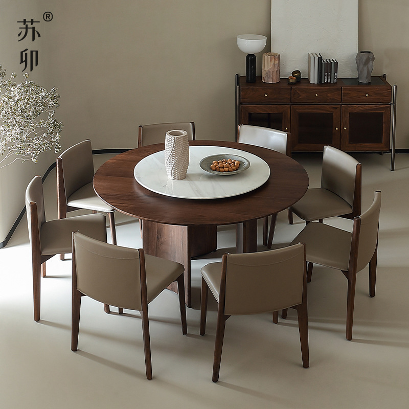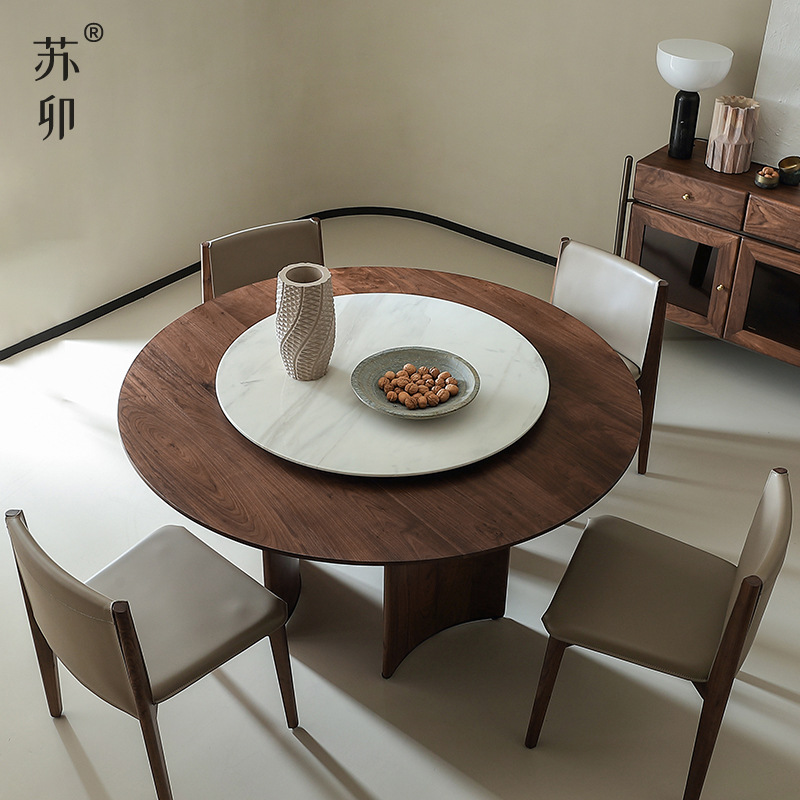 Suo Mao Новый обеденный стол и стул из цельного дерева в китайском стиле для домашнего использования с поворотным столом из каменной плиты, простой круглый обеденный стол из черного ореха для небольшой квартиры.