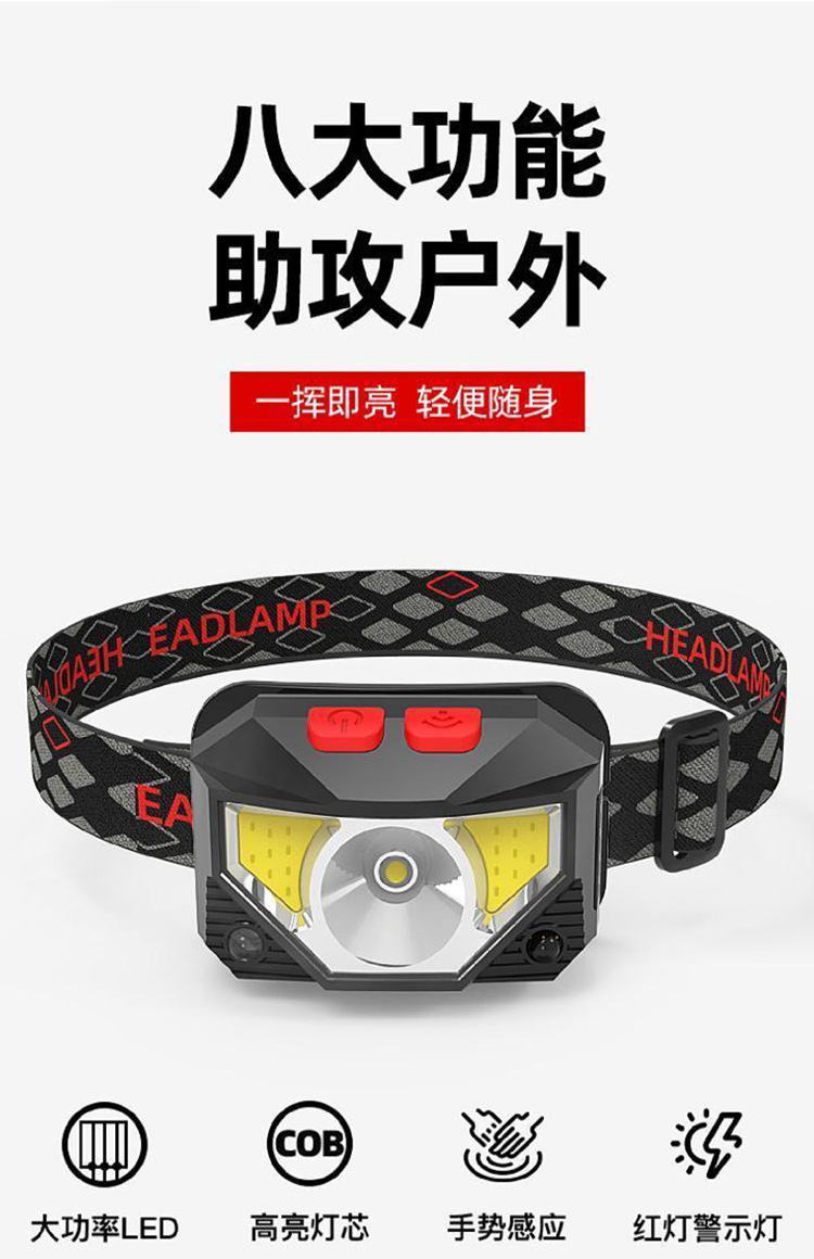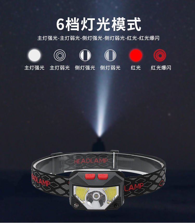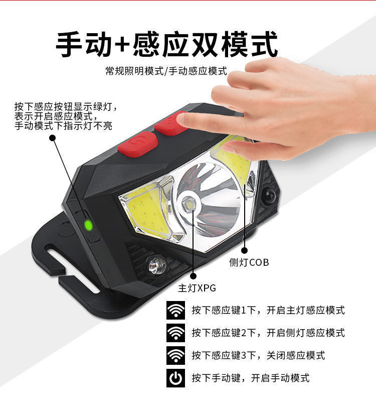 Светодиодная сенсорная фара, уличный сильный свет, долговечная литиевая батарея, уличный многофункциональный специальный фонарик для рыбалки, устанавливаемый на голову