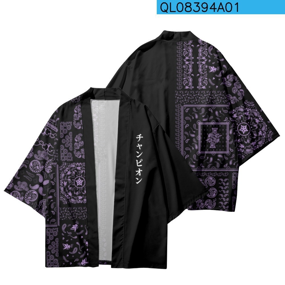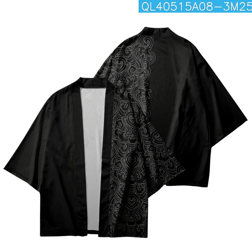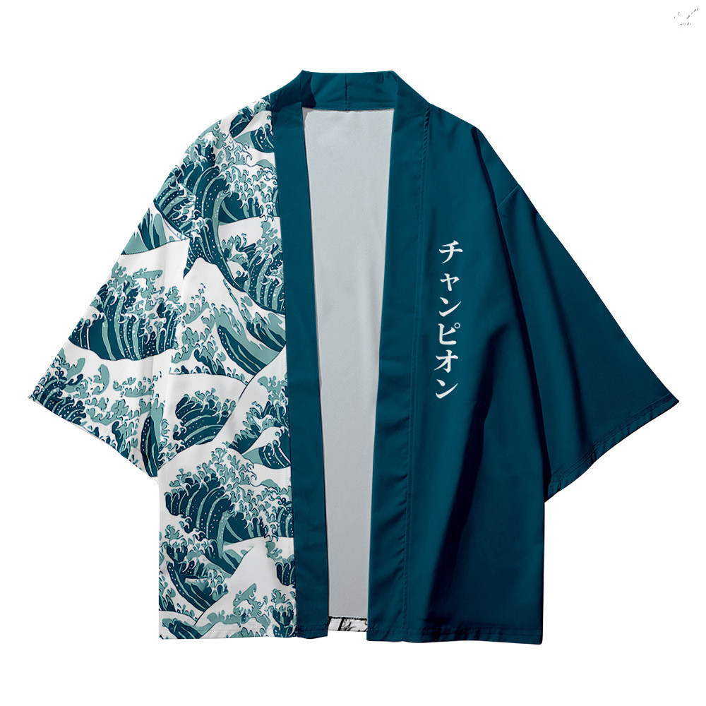 Трансграничный хит продаж, кардиган Ukiyo-e Wave Cat, кимоно с рукавами три четверти, летний повседневный кардиган с 3D принтом, халат для мужчин