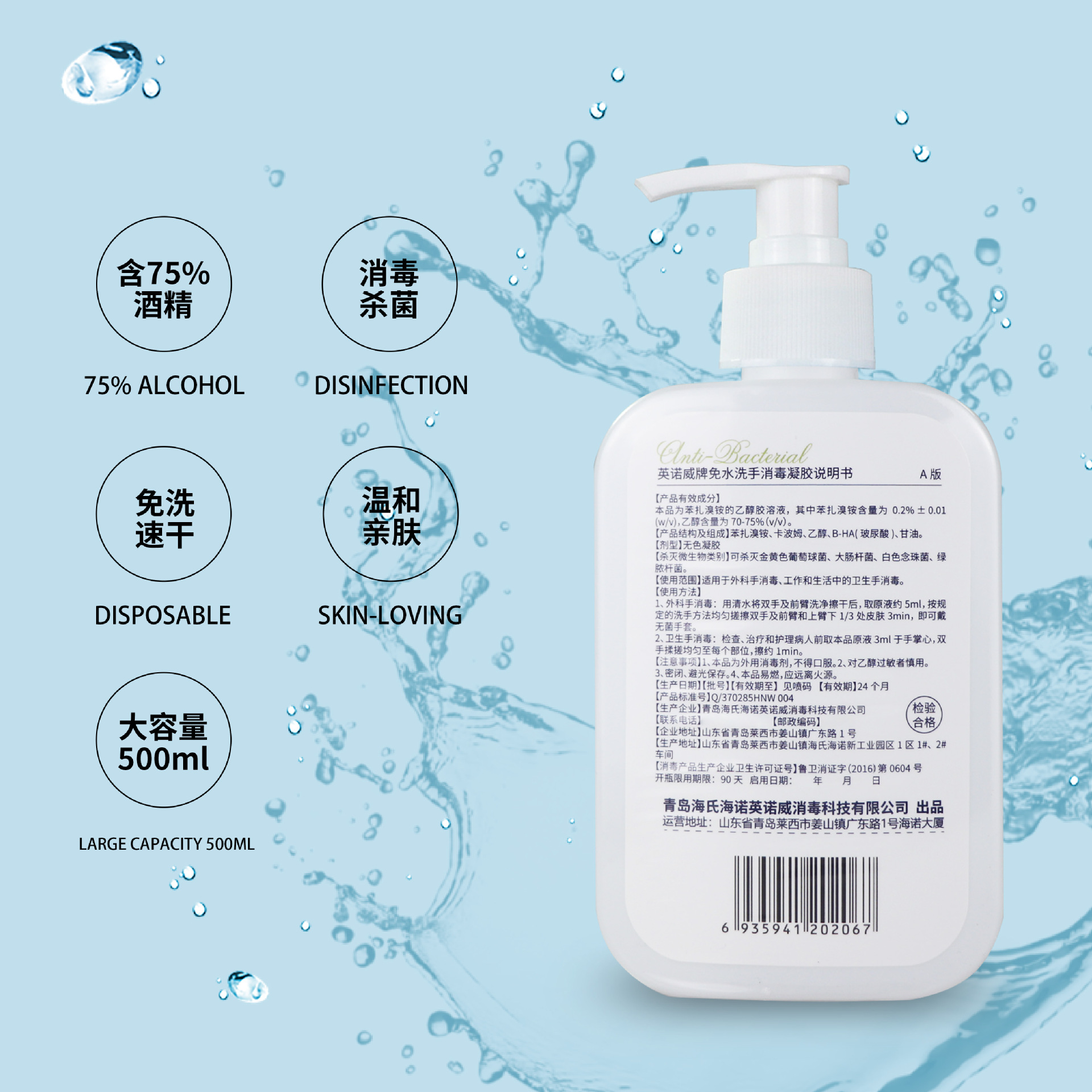 Гель-дезинфицирующее средство для рук Hainuo 500 мл (2 флакона); Гель-дезинфицирующее средство для рук Hainuo 500 мл (3 флакона); Гель-дезинфицирующее средство для рук Hainuo 500 мл (5 бутылочек); Гель-дезинфицирующее средство для рук Hainuo 500 мл (1 флакон); (Замена) Гель-дезинфектор без смывания, 500 мл * 1 флакон