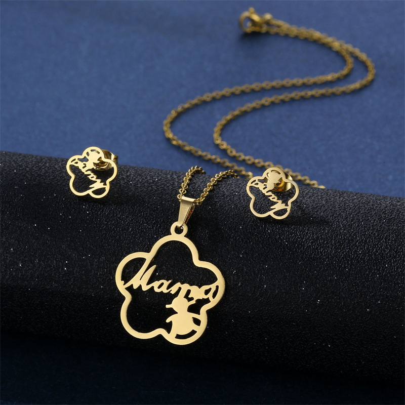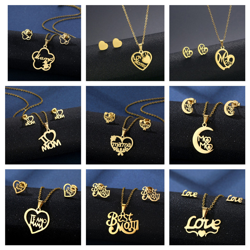 Набор украшений Amazon: модный и персонализированный комплект из нержавеющей стали для мамы на День матери, включающий колье и серьги.