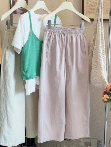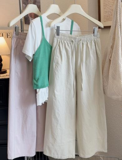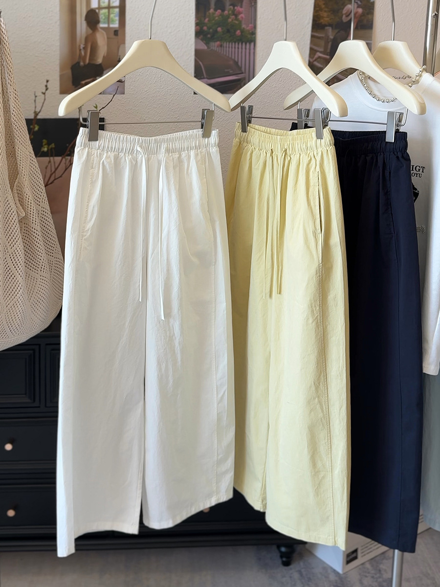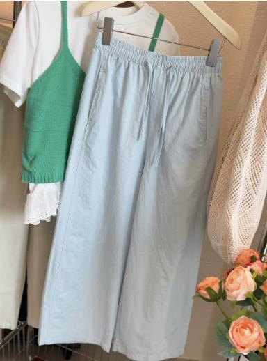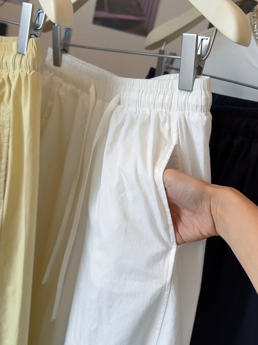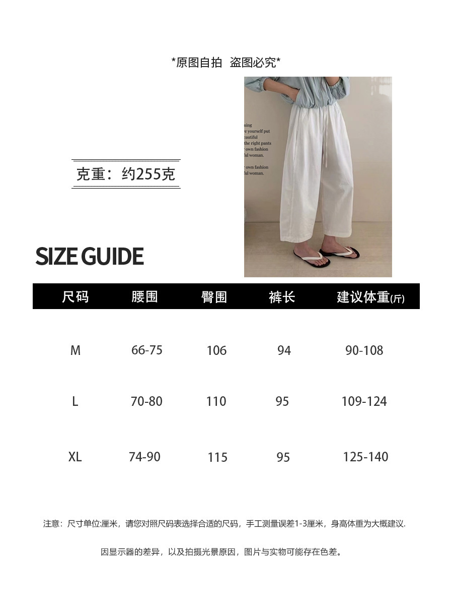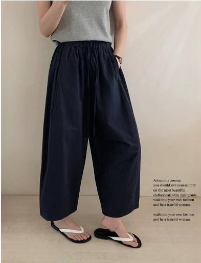 Японские и корейские маленькие широкие брюки повседневные укороченные брюки ~ Летняя тонкая стирка хлопок свободные брюки бумажные брюки