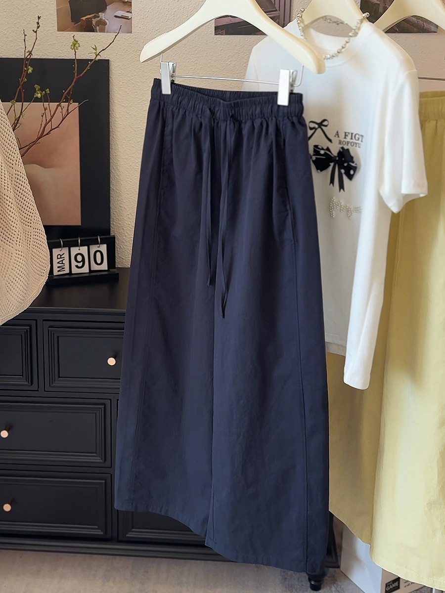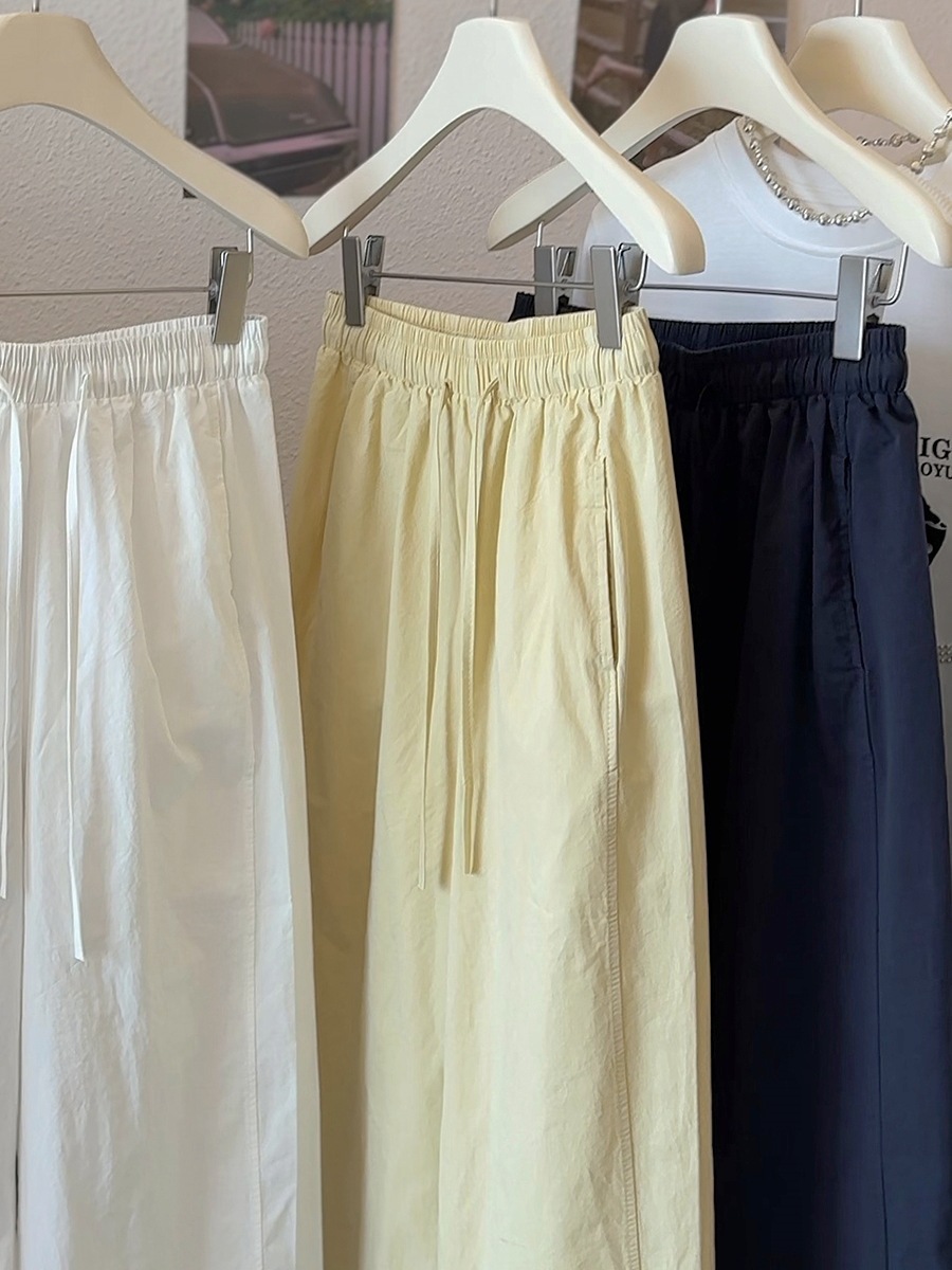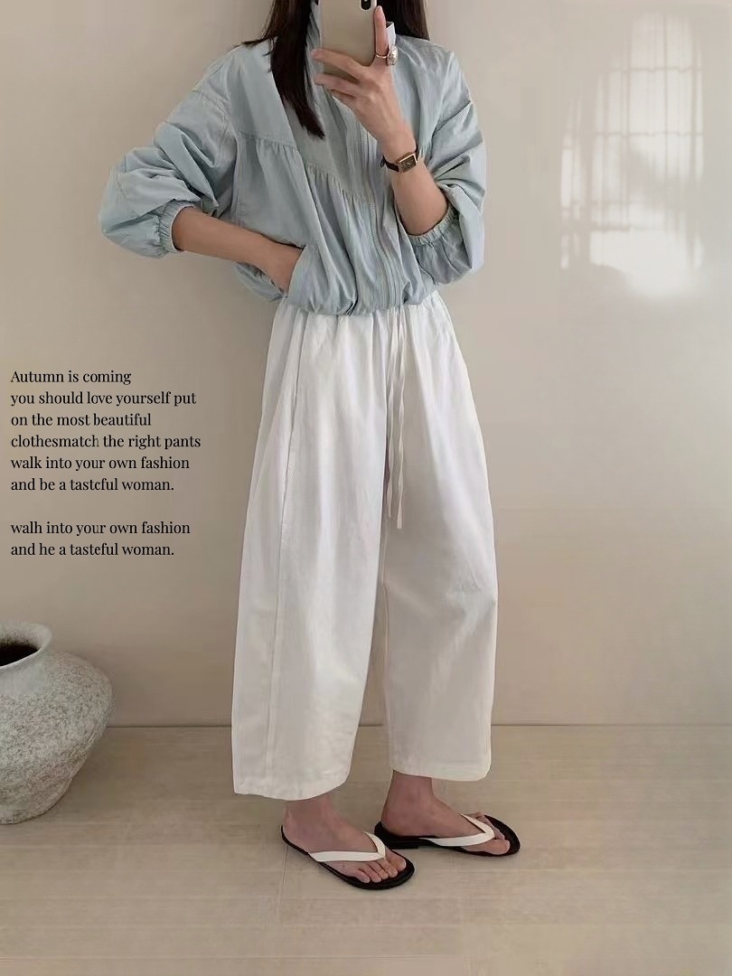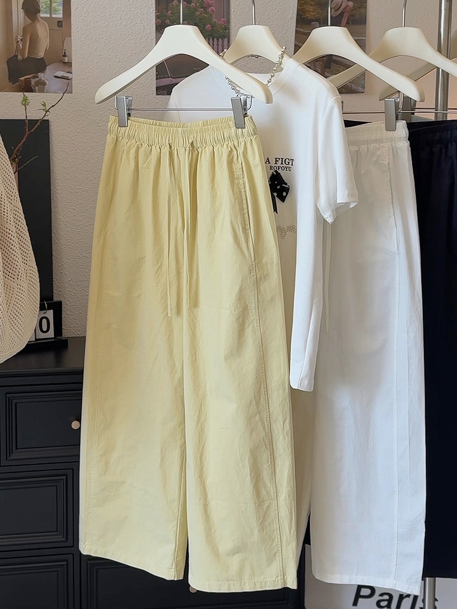 Японские и корейские маленькие широкие брюки повседневные укороченные брюки ~ Летняя тонкая стирка хлопок свободные брюки бумажные брюки