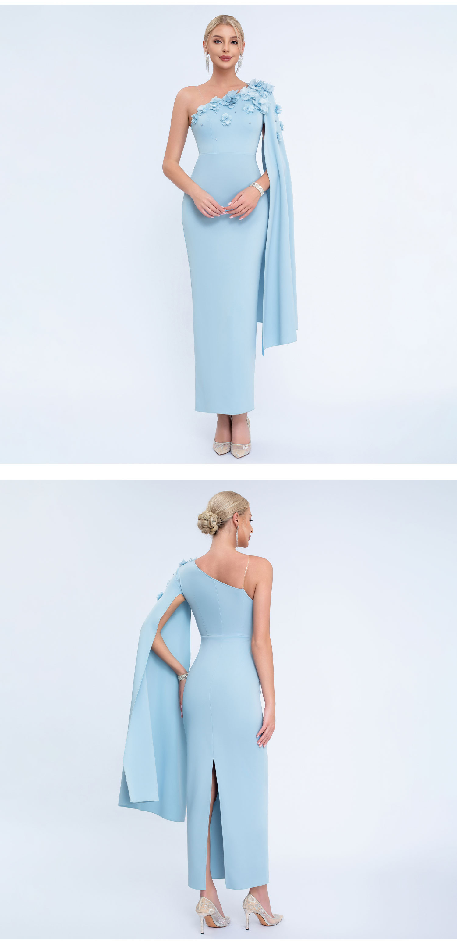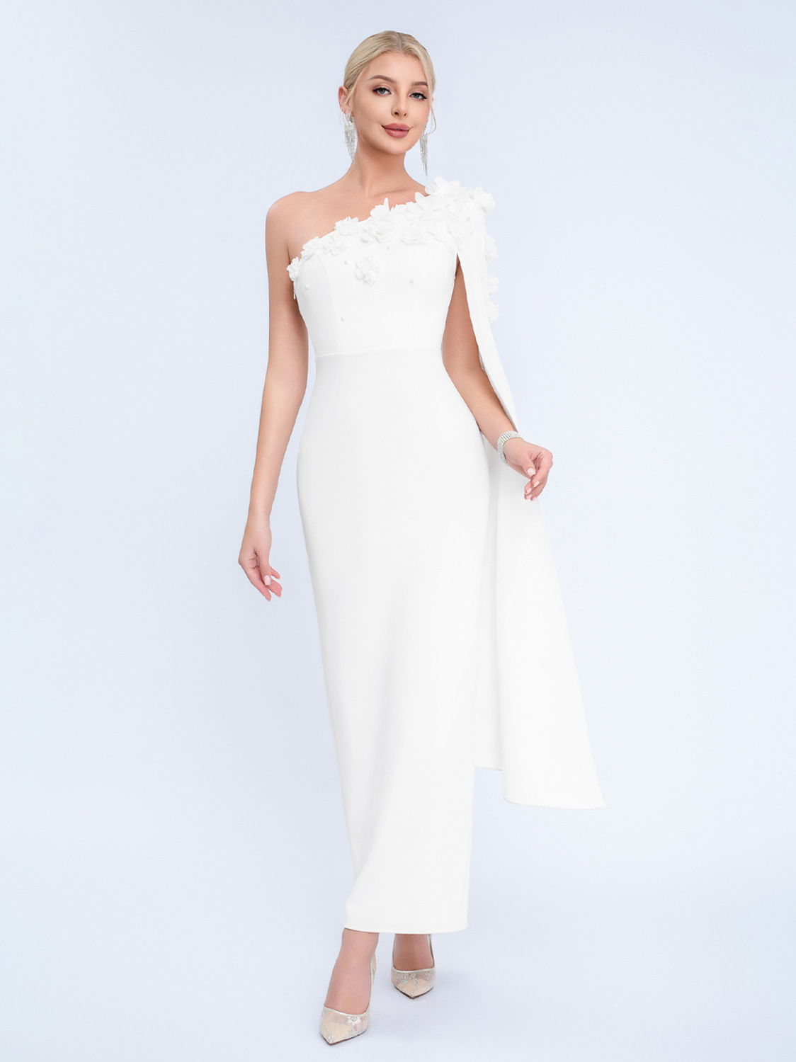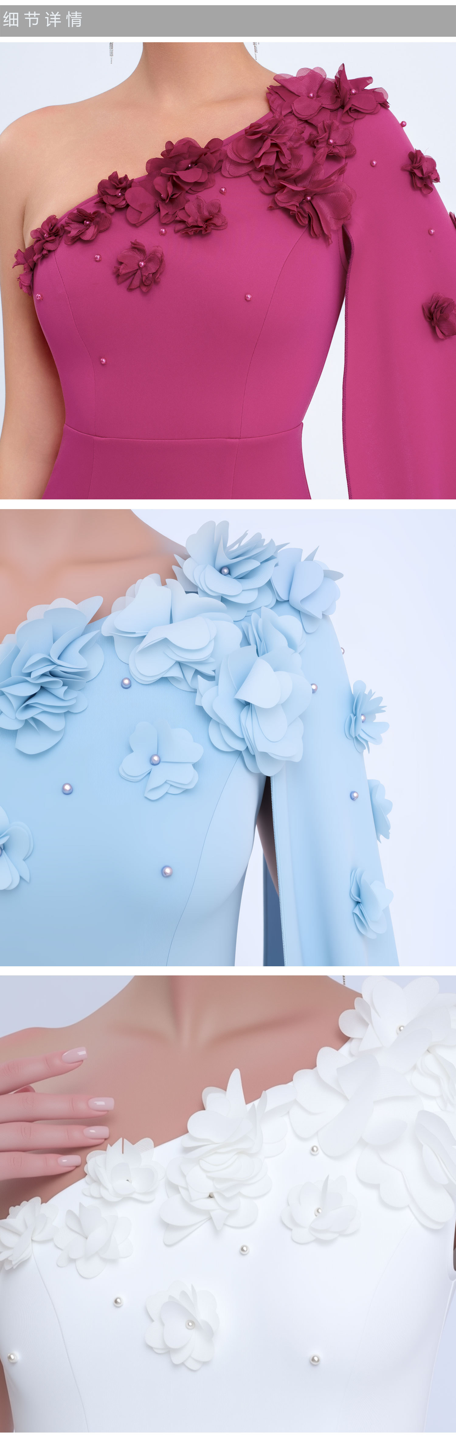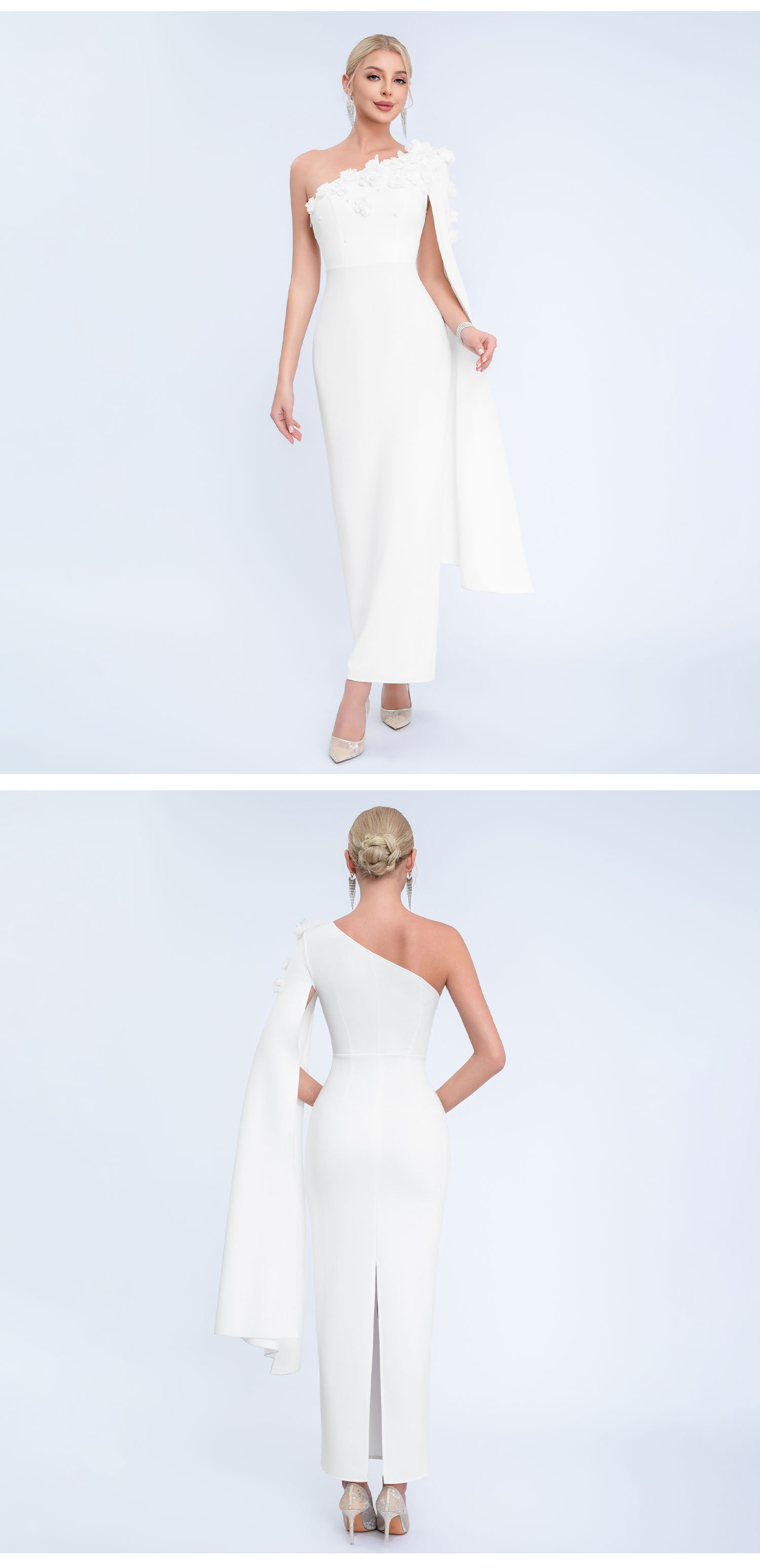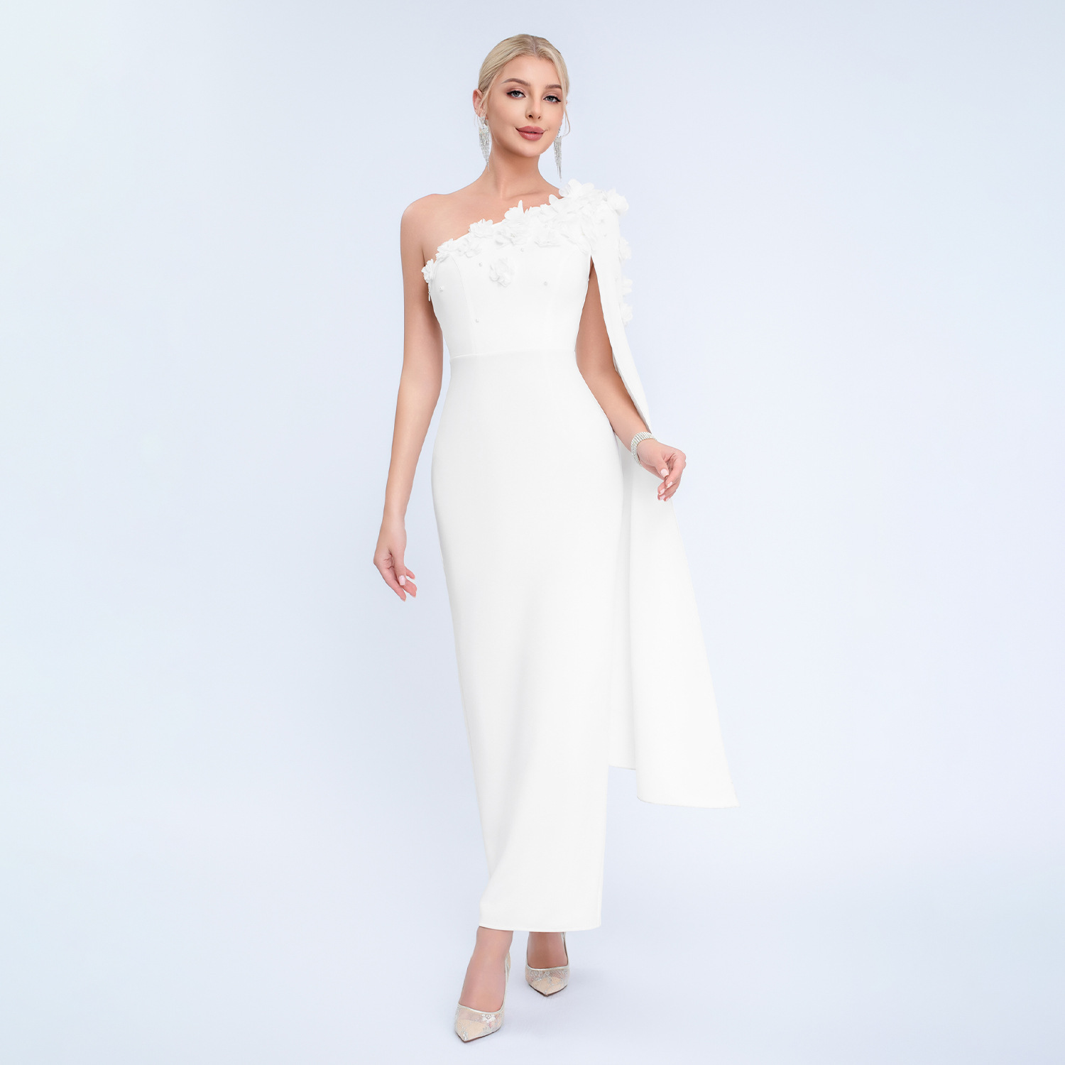 Новое банкетное свадебное платье, модное платье с открытыми плечами и объемными элементами, вечернее платье для торжественных мероприятий с асимметричным кроем и нестандартной линией талии.