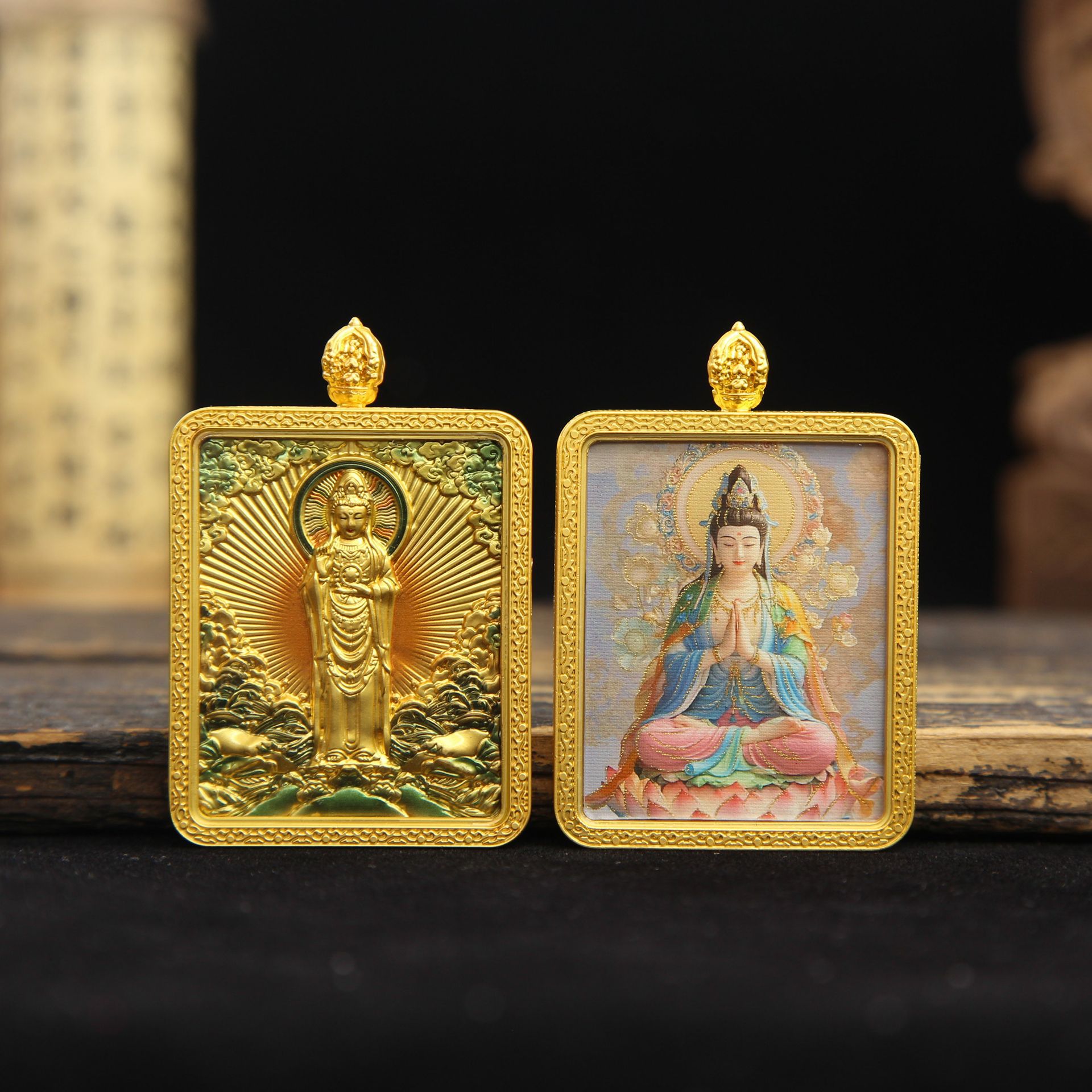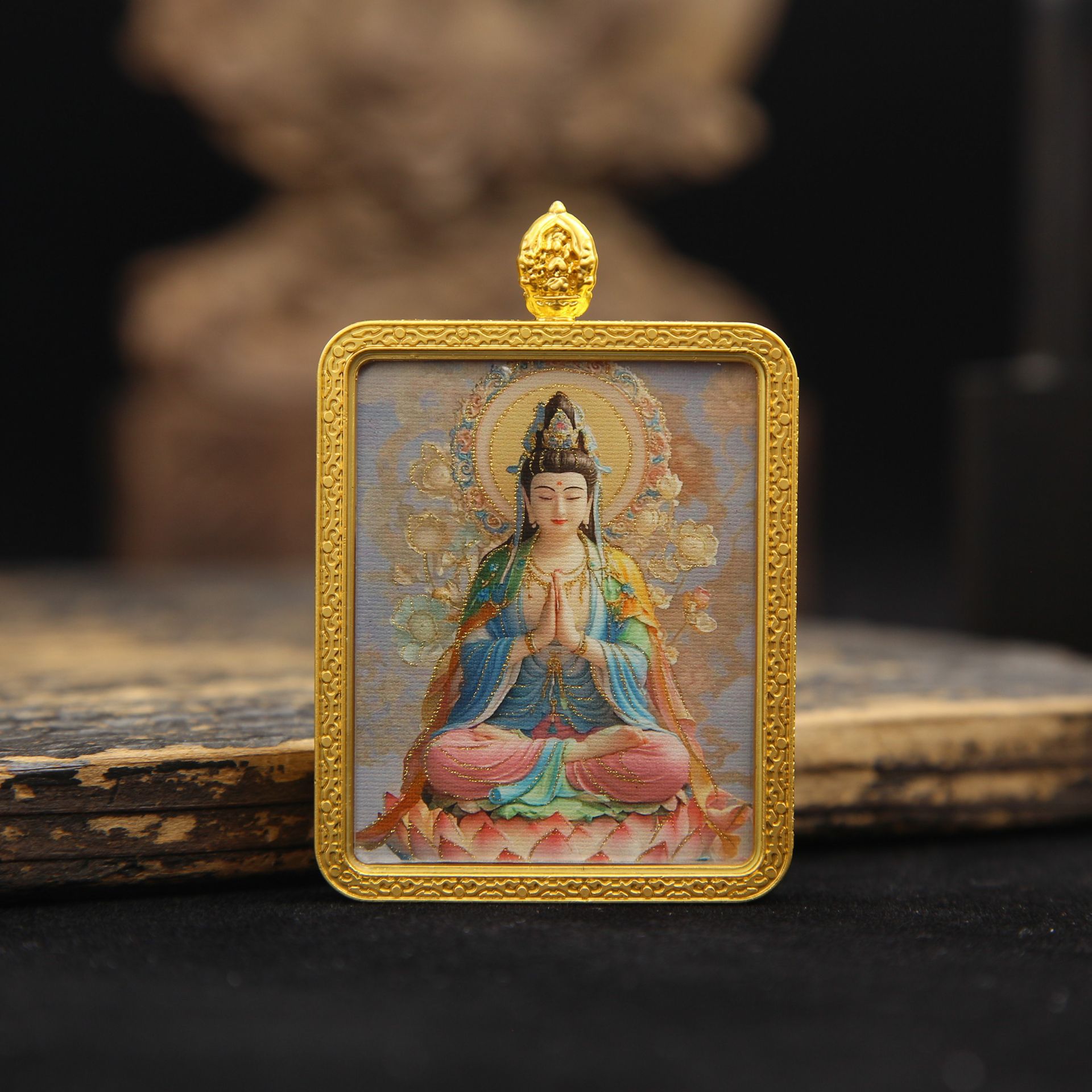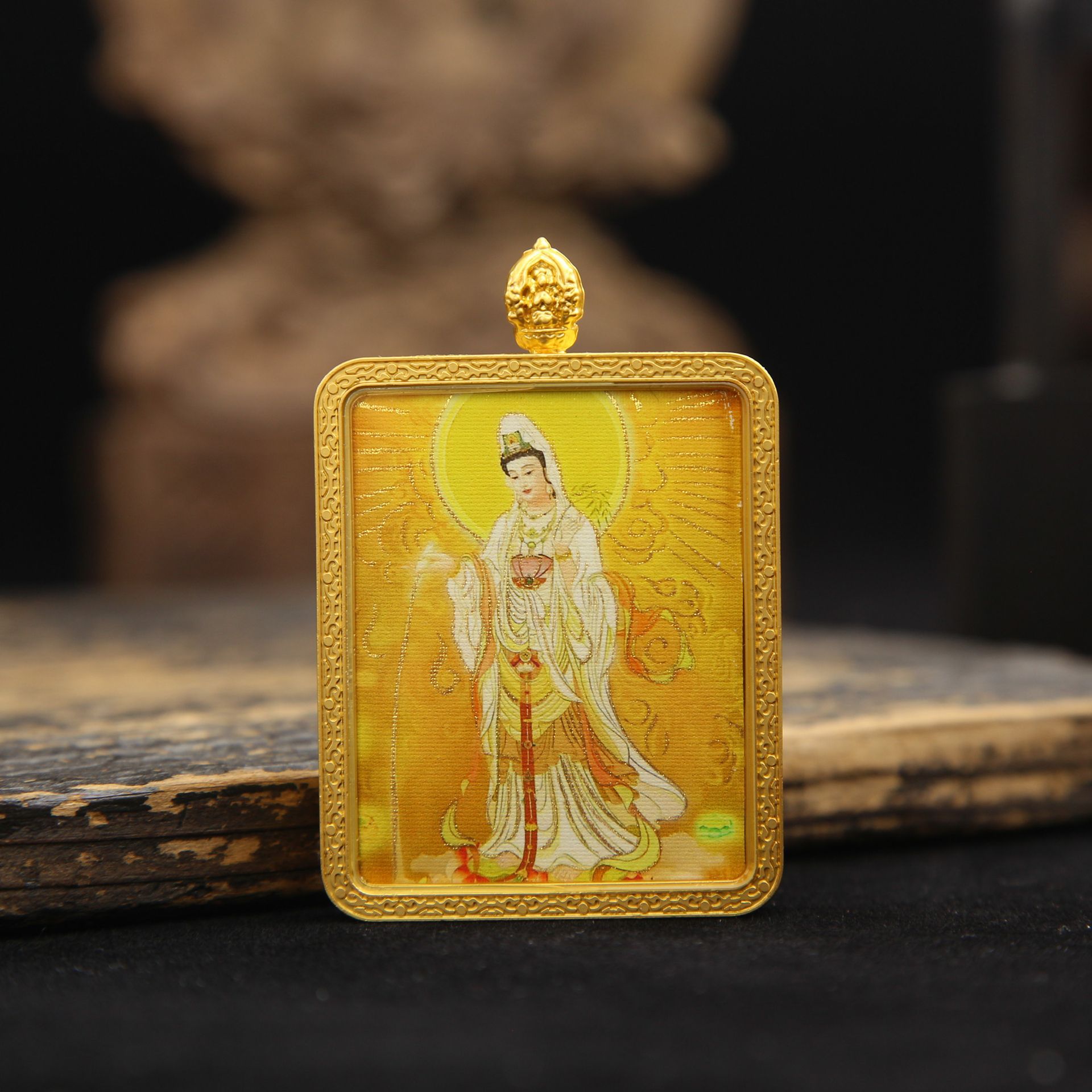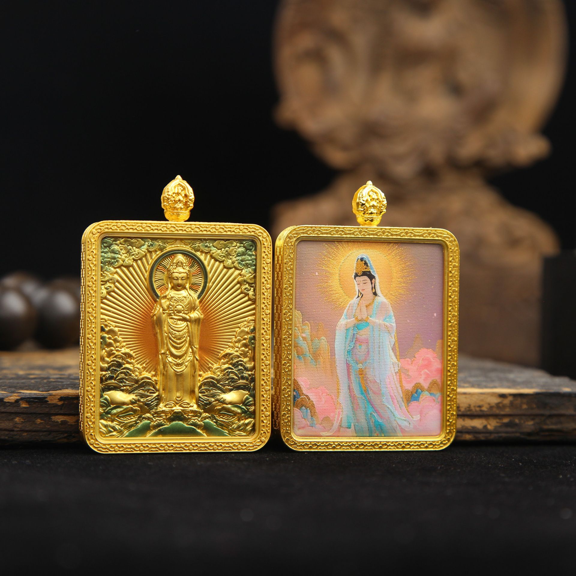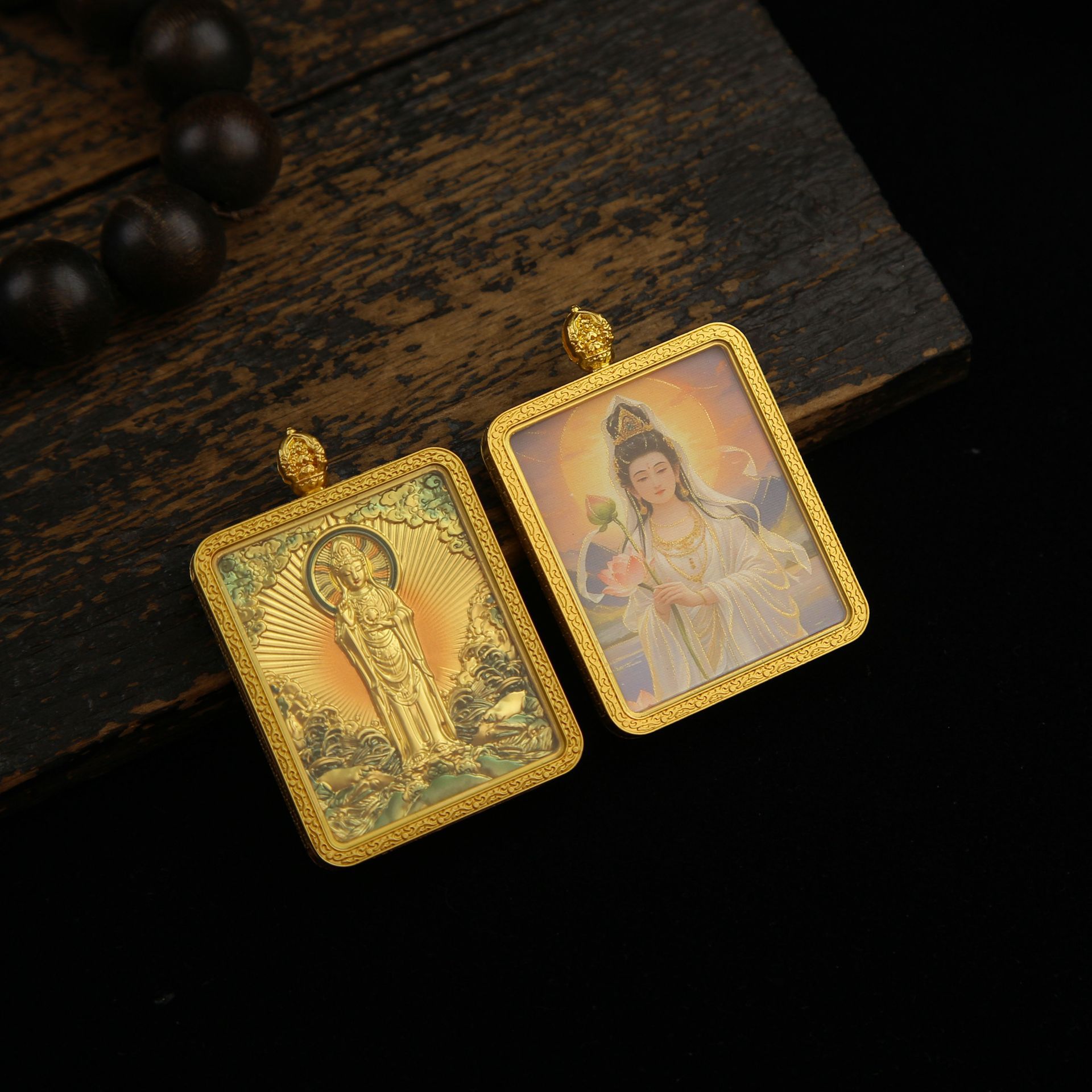 Ручная роспись золотого буддийского дома двухстороннего тханка золотой гау коробка Путуошань Южно-Китайское море Гуаньинь кулон декоративное ожерелье