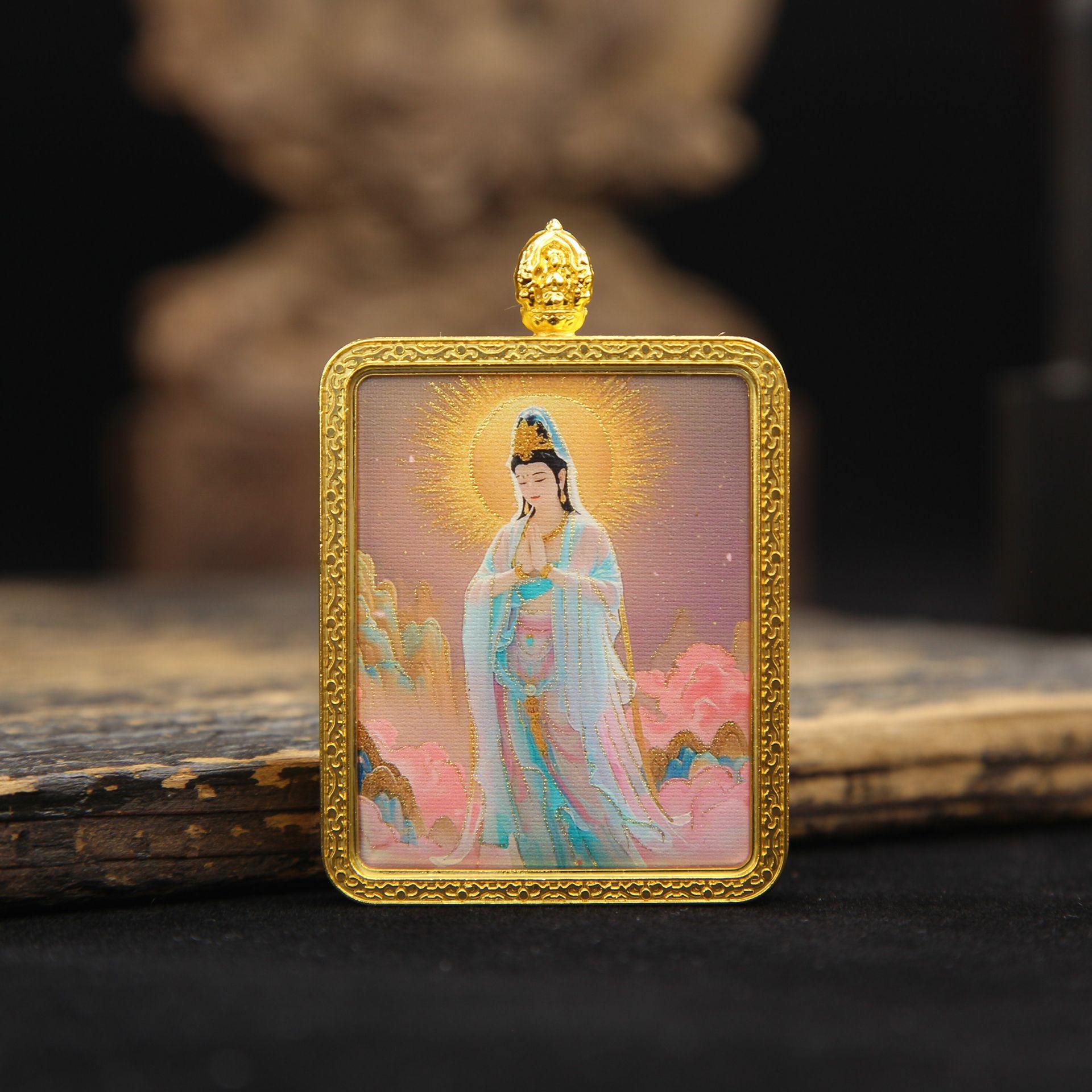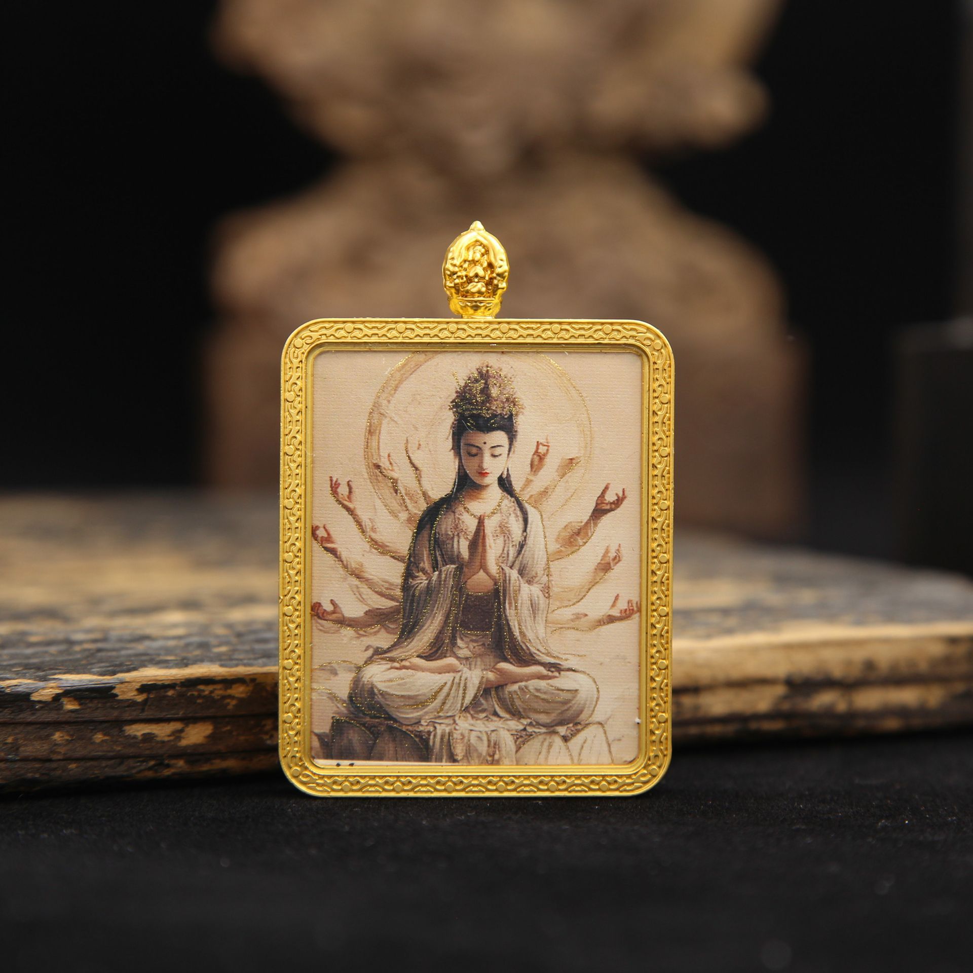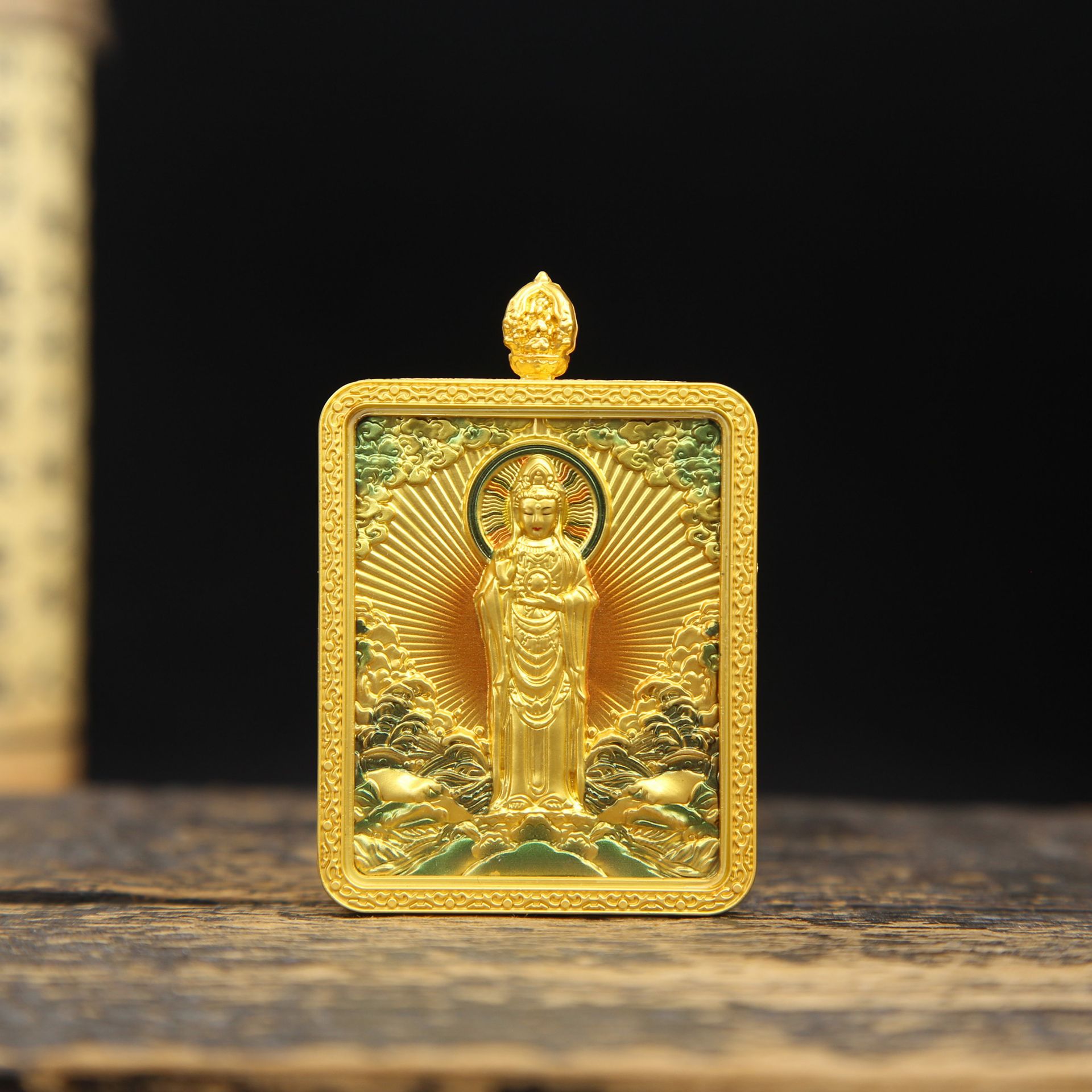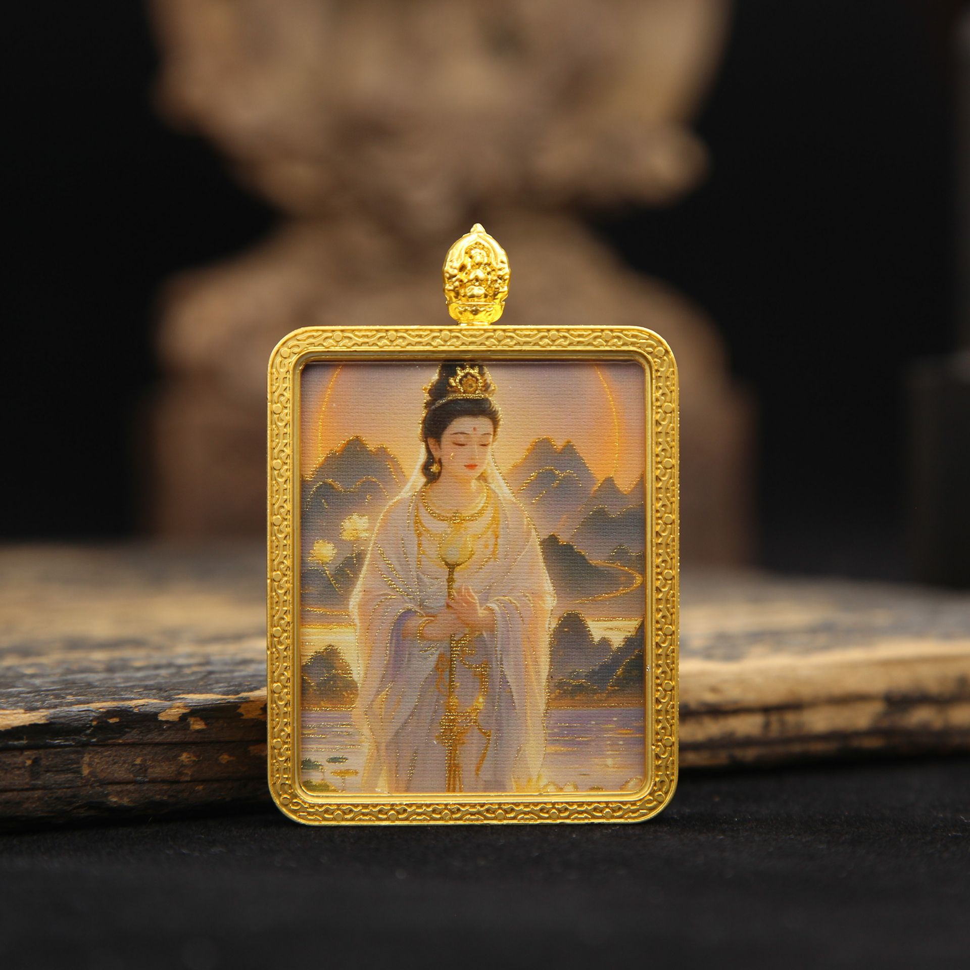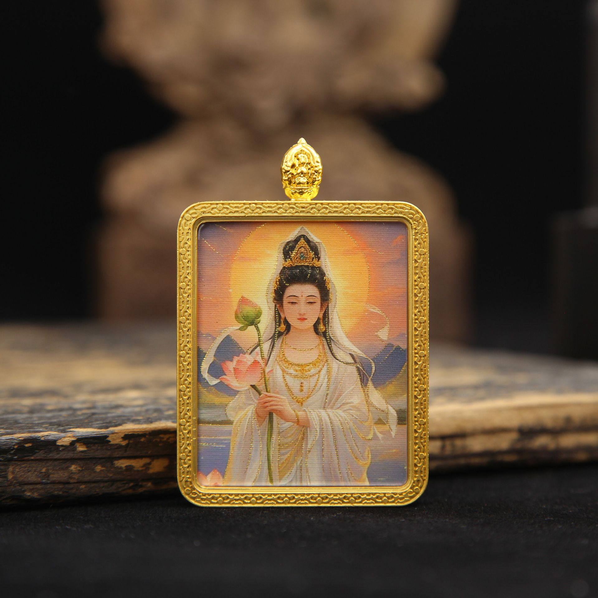Ручная роспись золотого буддийского дома двухстороннего тханка золотой гау коробка Путуошань Южно-Китайское море Гуаньинь кулон декоративное ожерелье