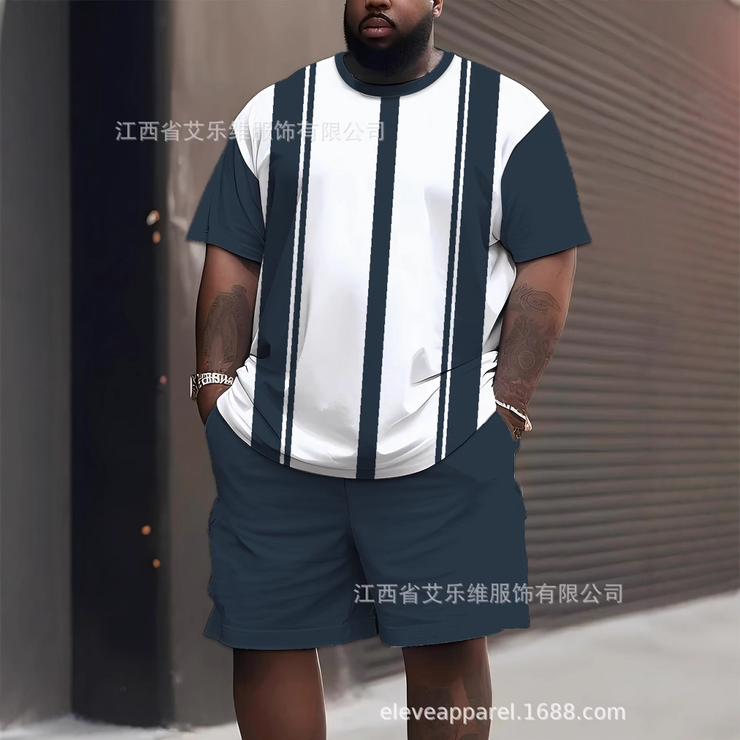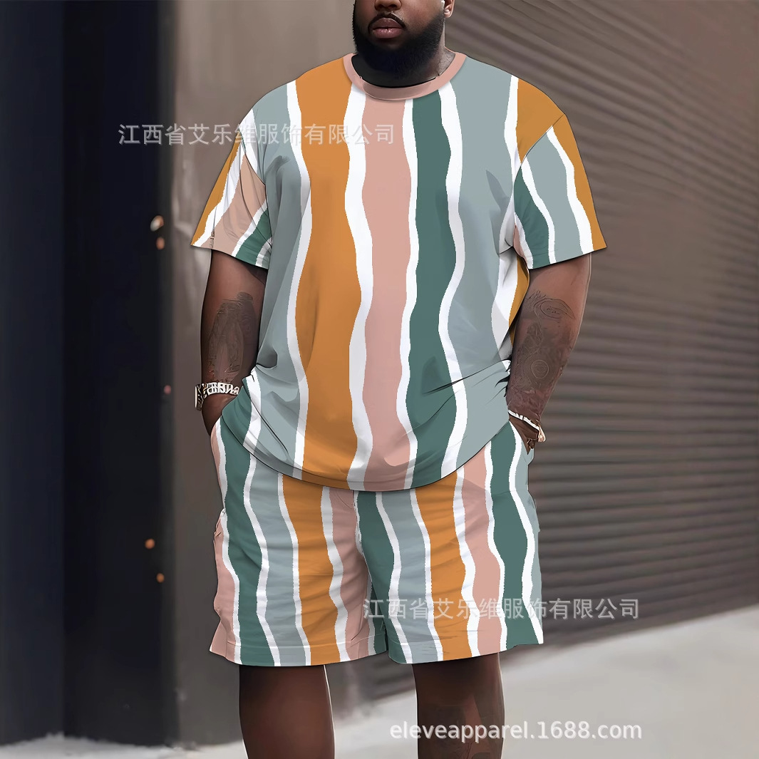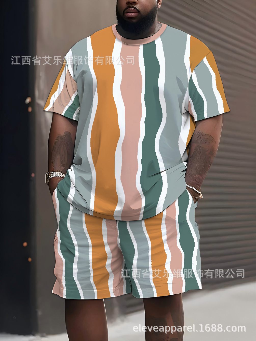 Европейские и американские новые четырехсезонные шорты в простую полоску в освежающем стиле с трансграничной 3D-цифровой печатью, костюм большого размера с короткими рукавами