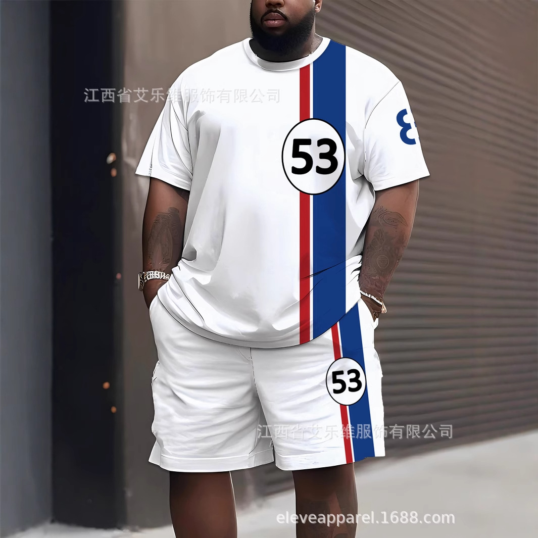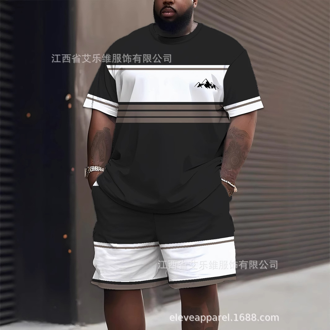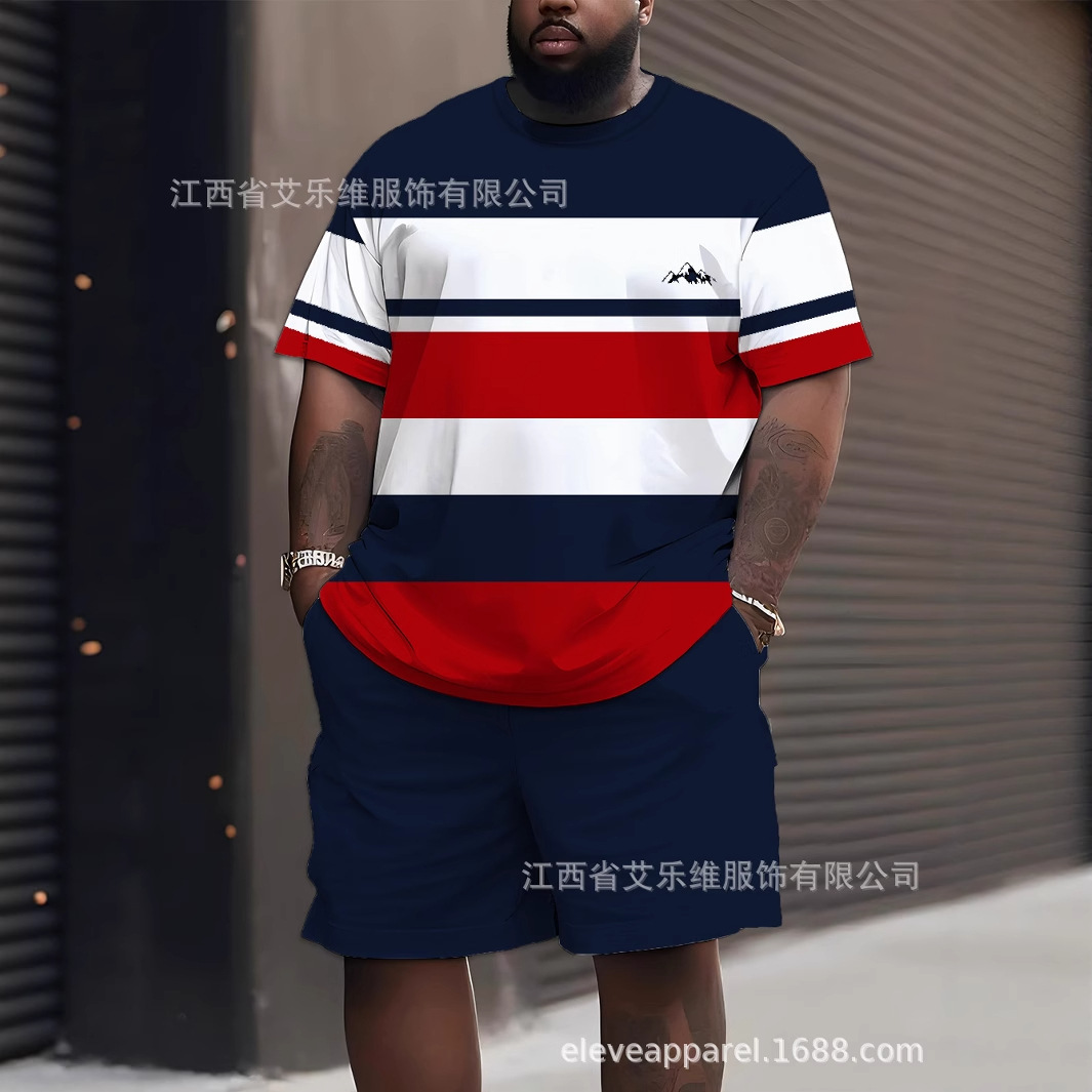 Европейские и американские новые четырехсезонные шорты в простую полоску в освежающем стиле с трансграничной 3D-цифровой печатью, костюм большого размера с короткими рукавами