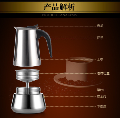 Кофеварка мокко ручной промывки из нержавеющей стали бытовой мокко кофейник для приготовления кофе Трансграничная оптовая торговля