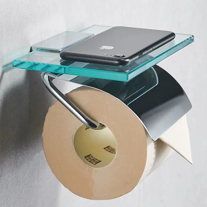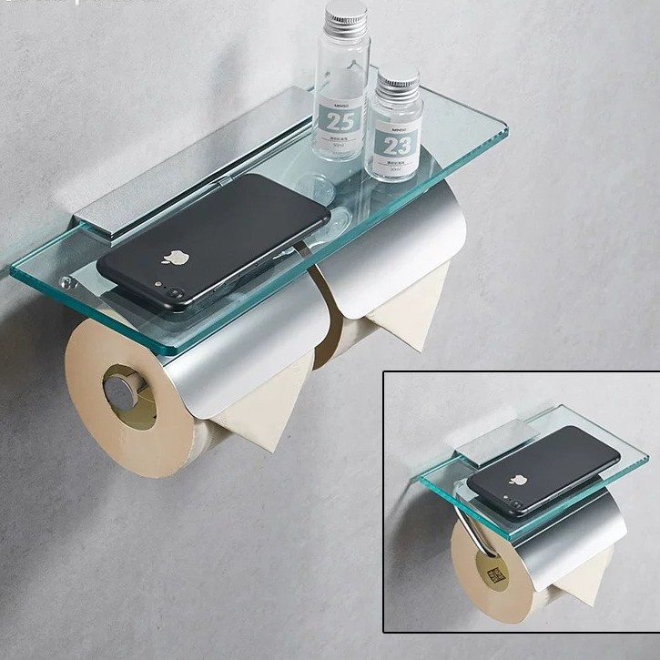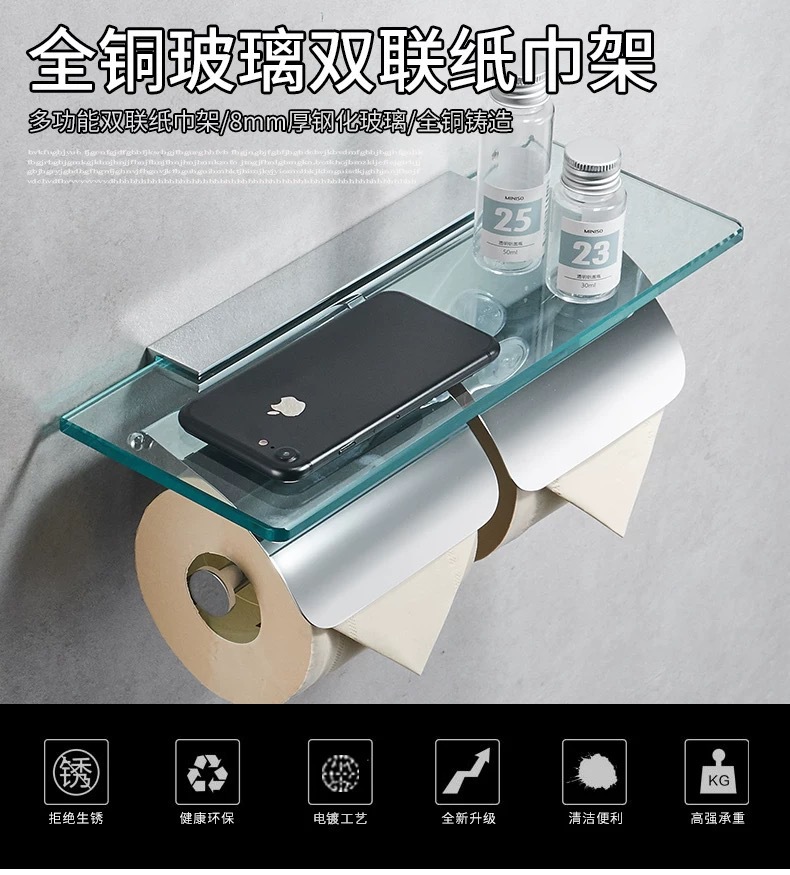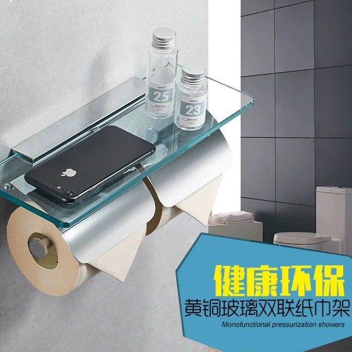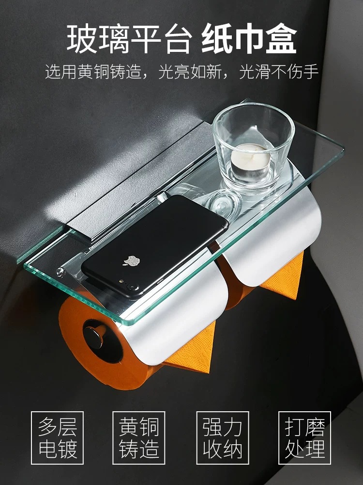 Индивидуальный цельномедный держатель для рулонной бумаги, стеклянная полка для хранения в ванной комнате, коробка для туалетной бумаги, инженерная двойная полка для хранения держателя для туалетной бумаги в отеле