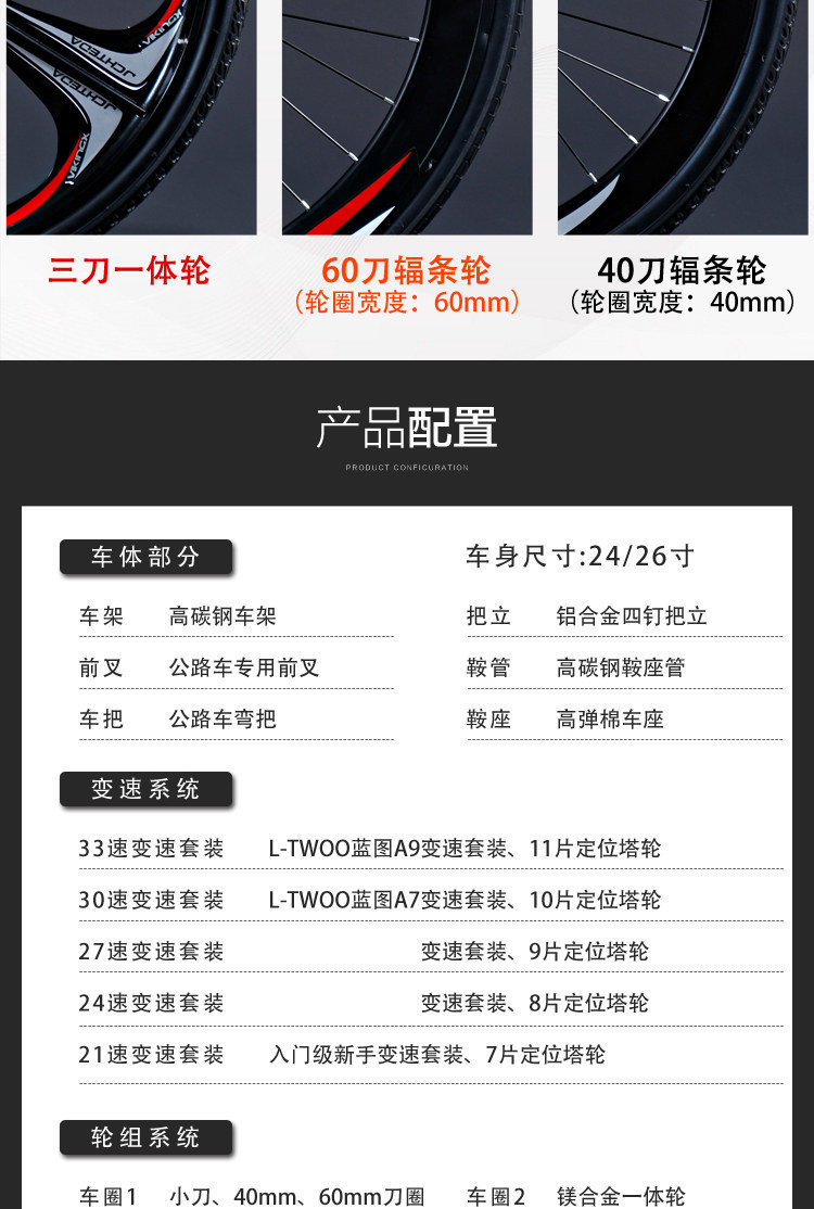 26-дюймовая 21-скоростная/стандартная версия; 26-дюймовая 24-скоростная/высококлассная версия; 26-дюймовая 27-скоростная верхняя версия [рекомендовано менеджером магазина]; 26-дюймовый 30-скоростной/Extreme Edition [Рекомендация менеджера магазина]; 24-дюймовая 21-скоростная/стандартная версия; 24-дюймовая 24-скоростная/высококлассная версия; 24-дюймовая 27-скоростная верхняя версия [рекомендовано менеджером магазина]; 24-дюймовый 30-скоростной/Extreme Edition [Рекомендация менеджера магазина]