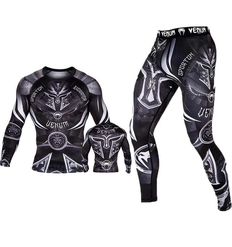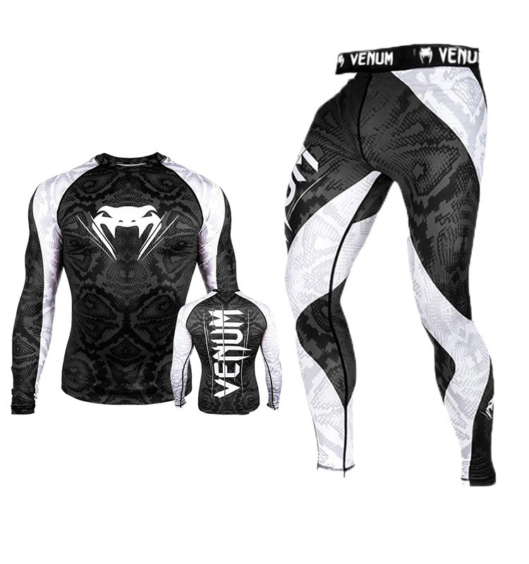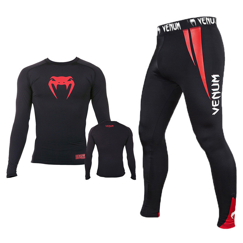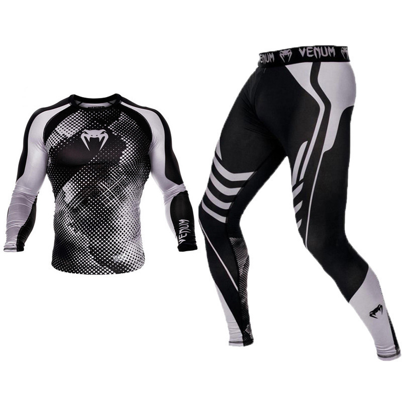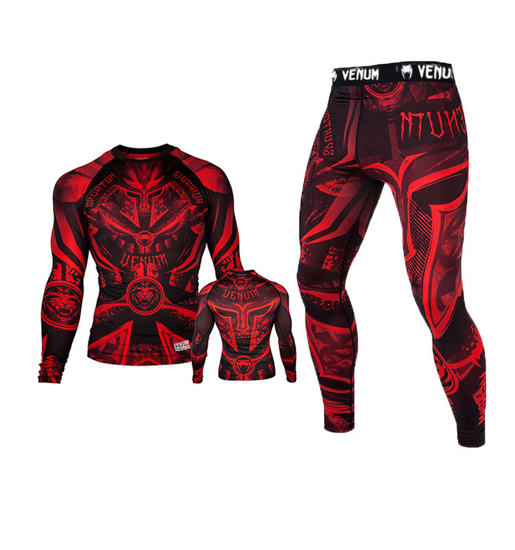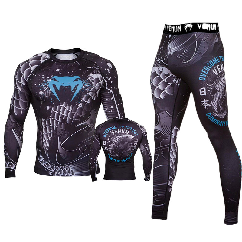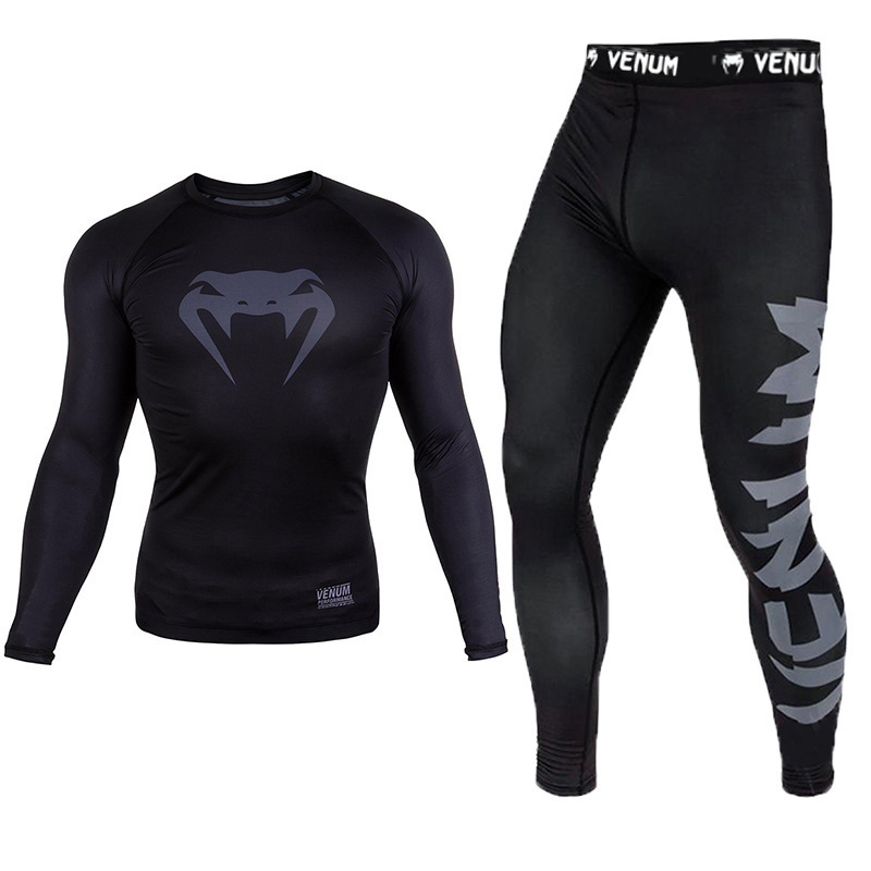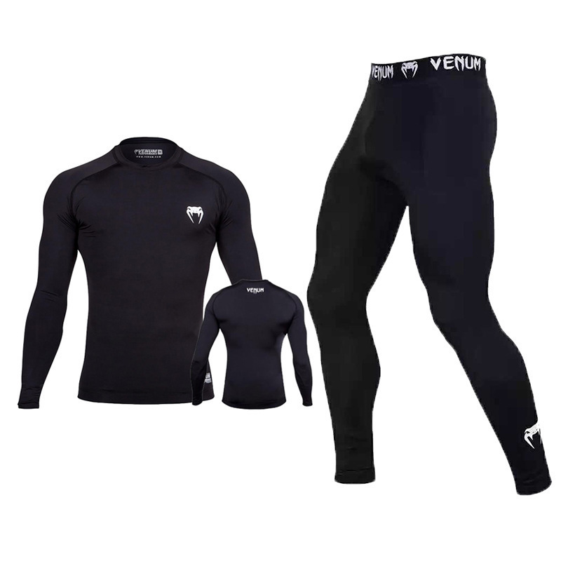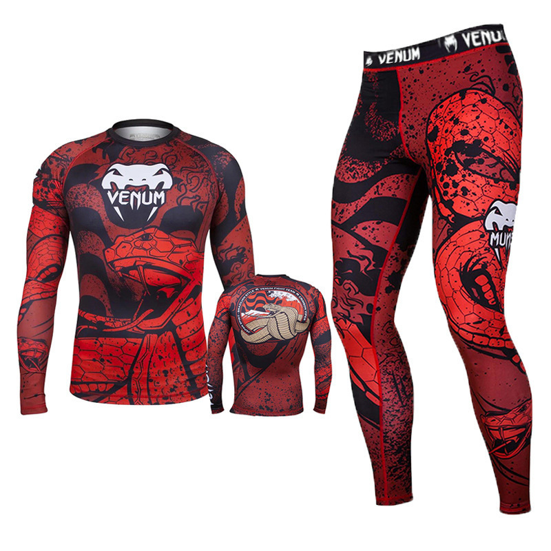 Комплект для единоборств: компрессионная футболка с длинным рукавом и брюки для тренировок по боксу, саньда, фитнесу; комплект из двух предметов: футболка с коротким рукавом и брюки для UFC.