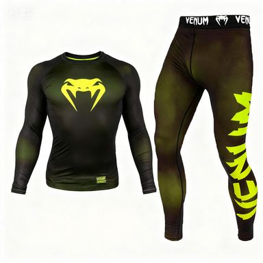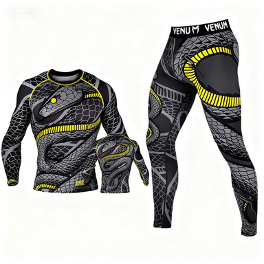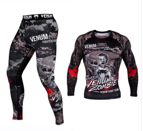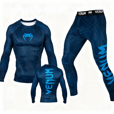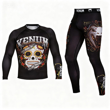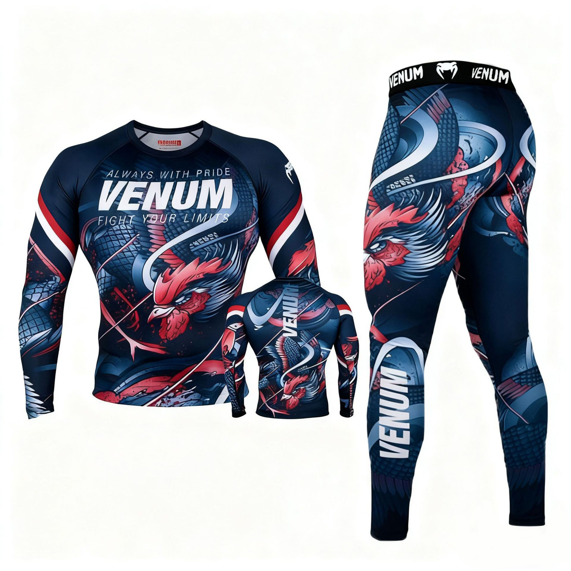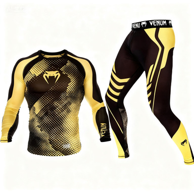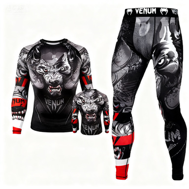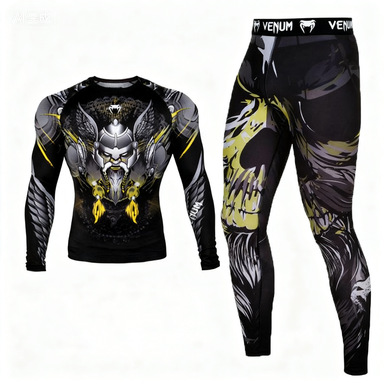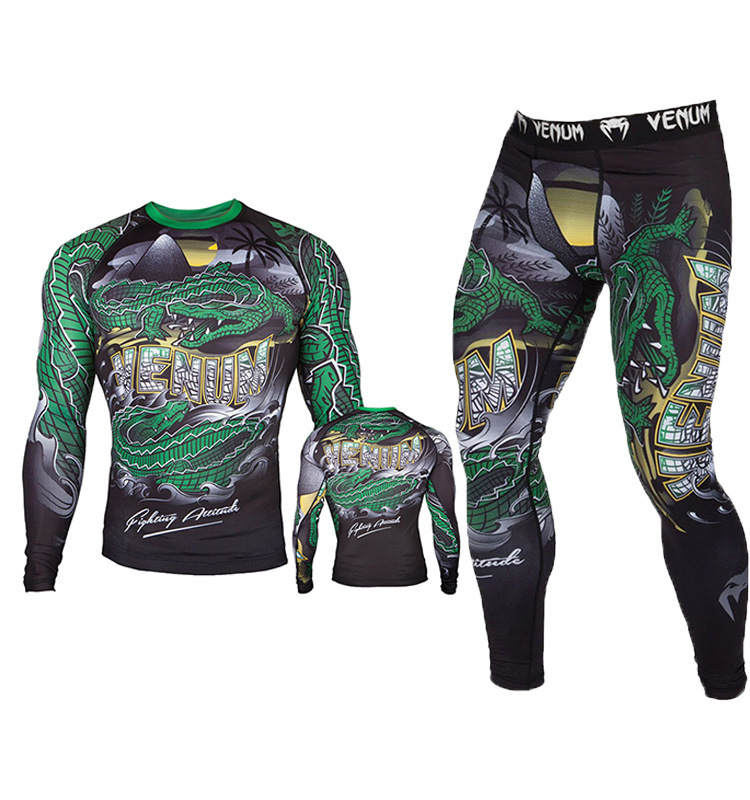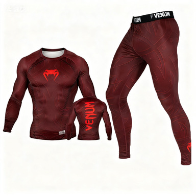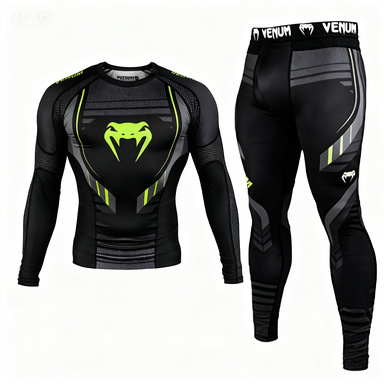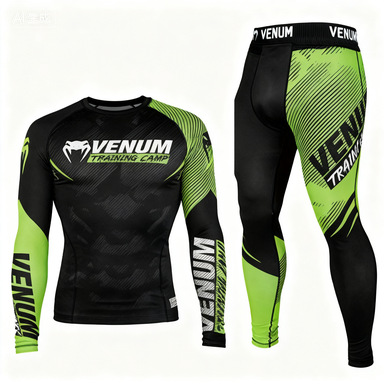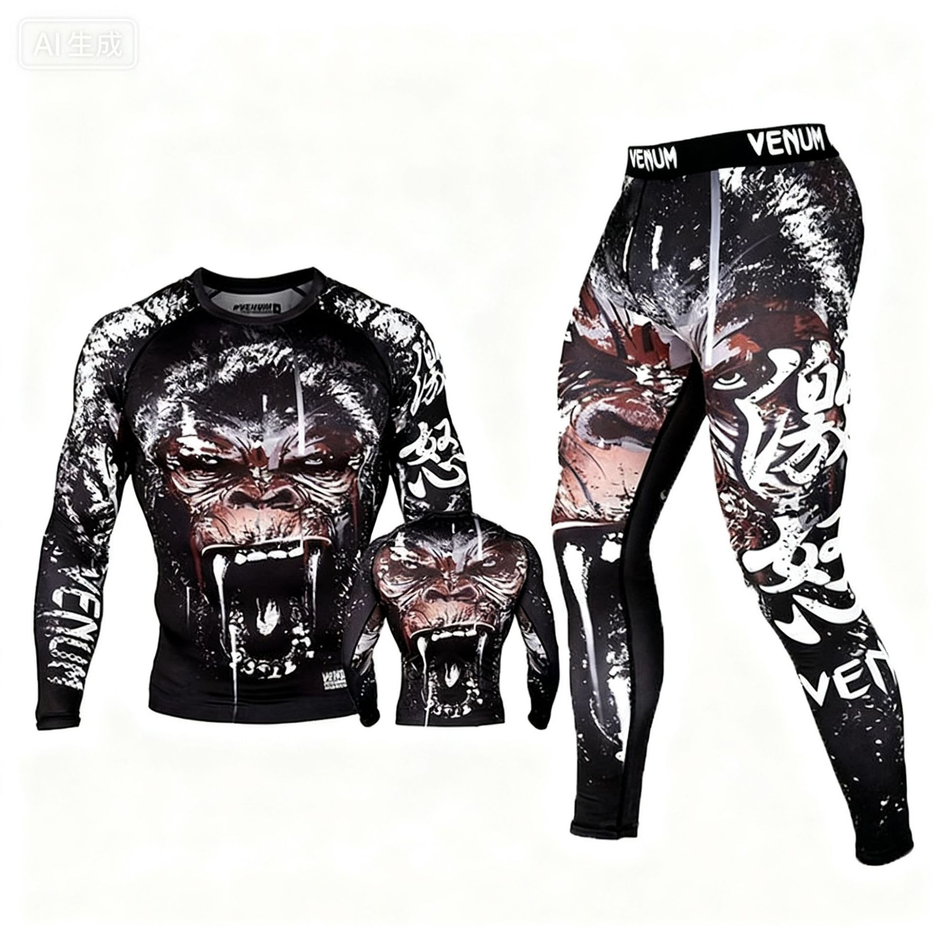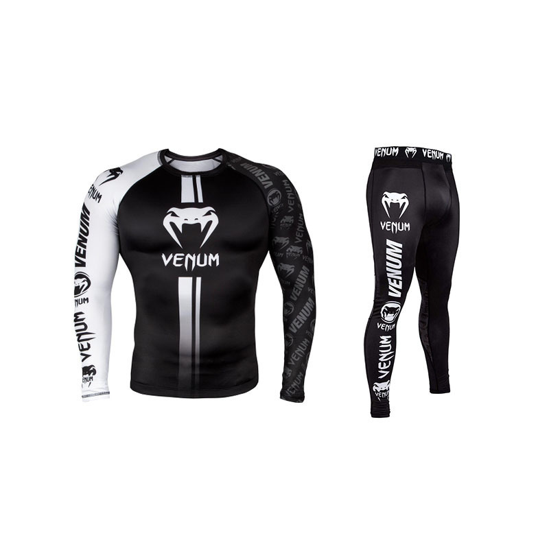 Комплект для единоборств: компрессионная футболка с длинным рукавом и брюки для тренировок по боксу, саньда, фитнесу; комплект из двух предметов: футболка с коротким рукавом и брюки для UFC.