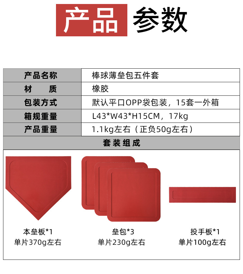 Набор резиновых оснований для бейсбола, красные подкладки для бейсбола, подкладки для софтбола, домашняя пластина, набор из 5 предметов, подкладки для оснований, домашняя пластина, пластина для питчера, водонепроницаемая