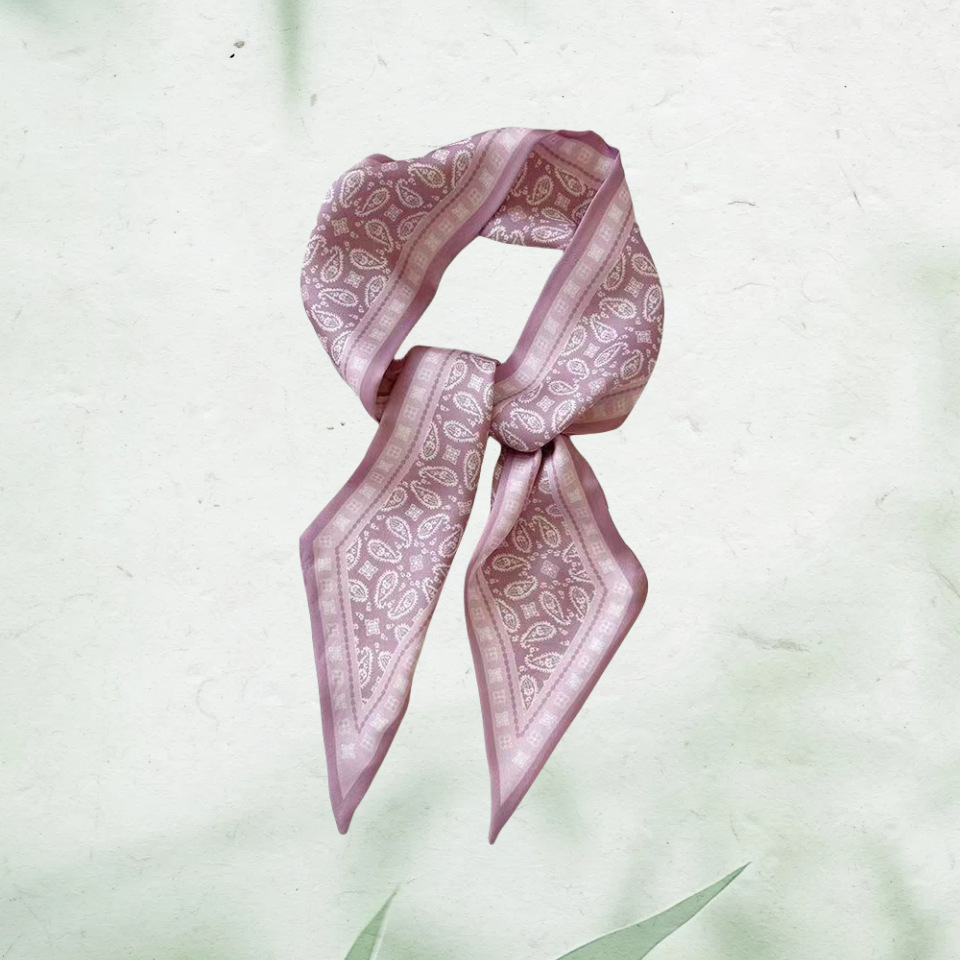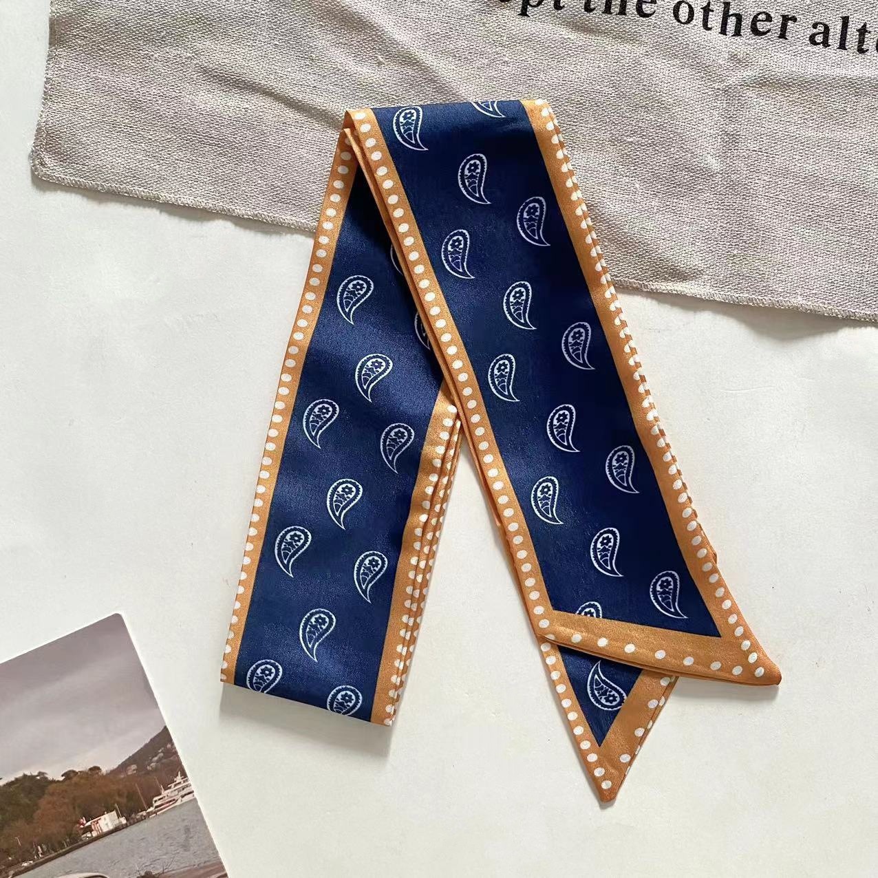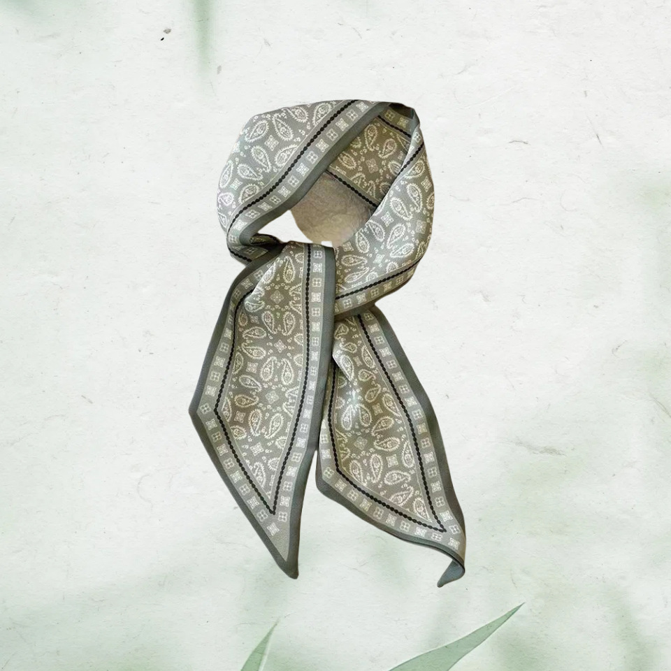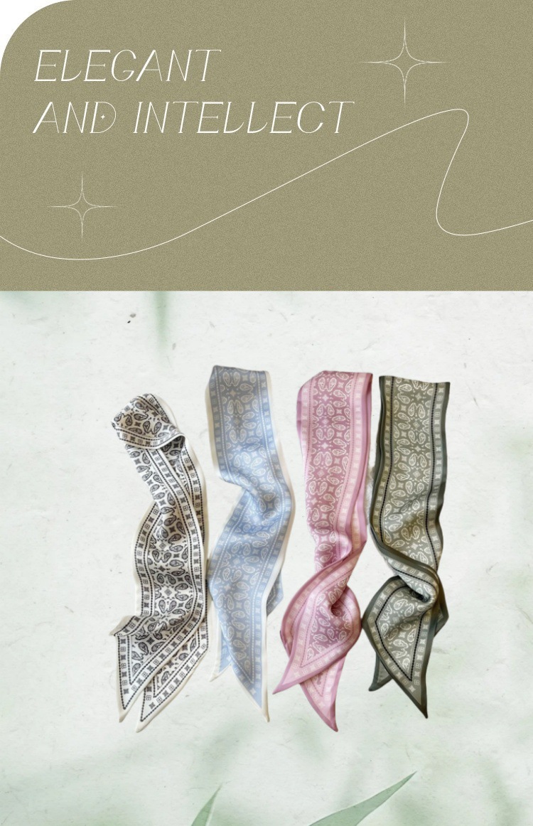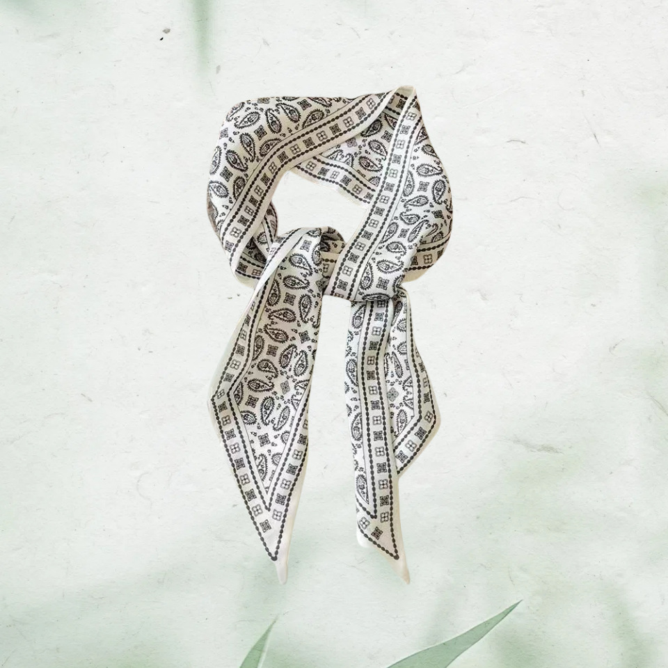 Французский шелковый шарф с цветком кешью в стиле ретро для женщин, универсальная резинка для волос, галстук для сумки, шелковый шарф в подарочной коробке, длинный шелковый шарф