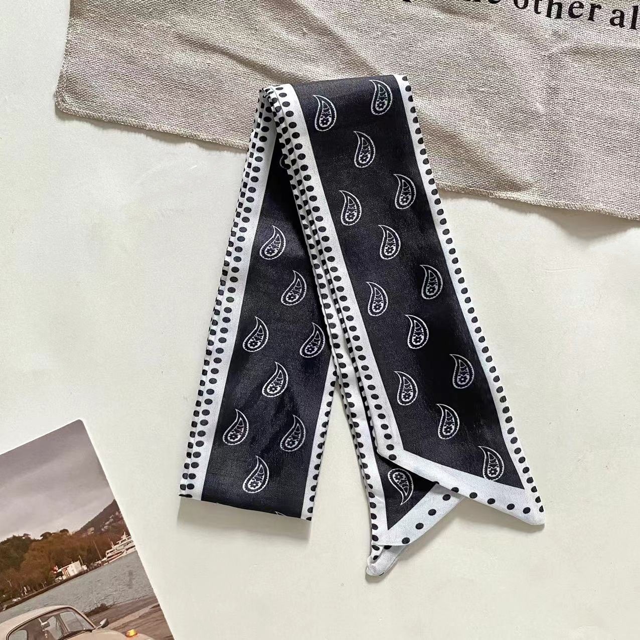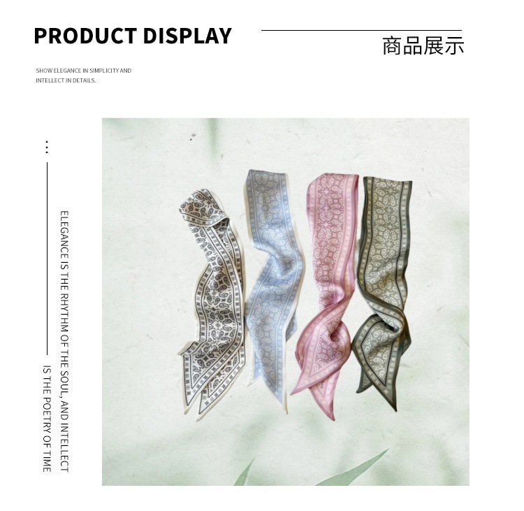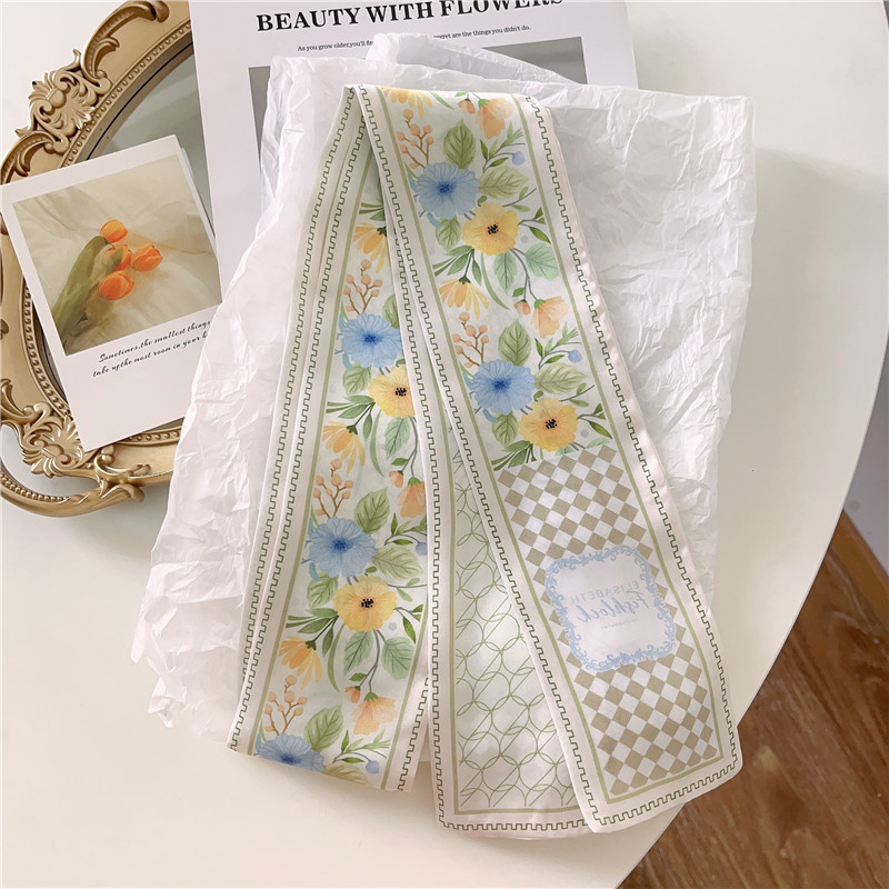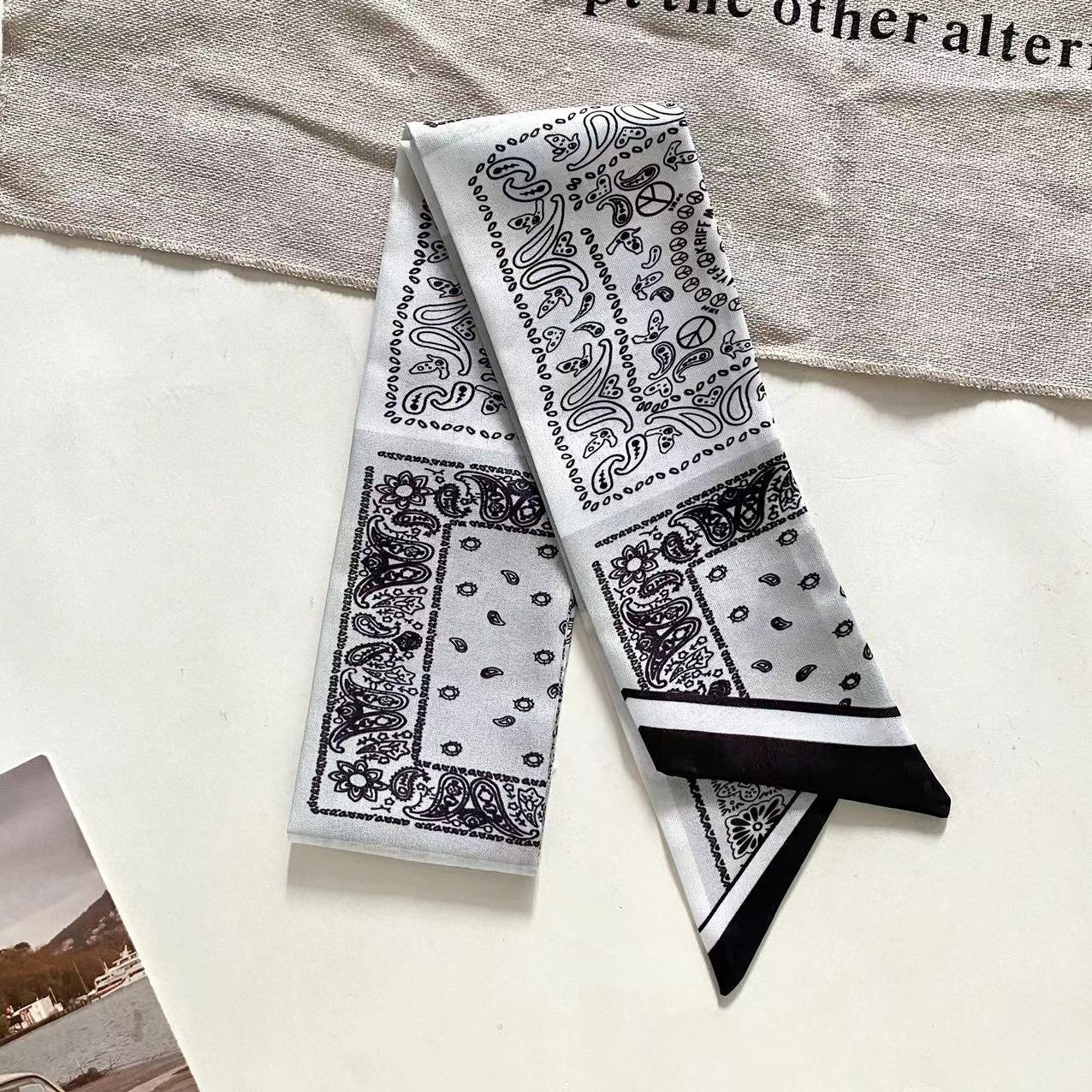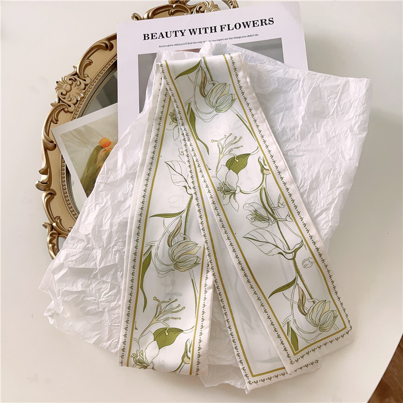 Французский шелковый шарф с цветком кешью в стиле ретро для женщин, универсальная резинка для волос, галстук для сумки, шелковый шарф в подарочной коробке, длинный шелковый шарф