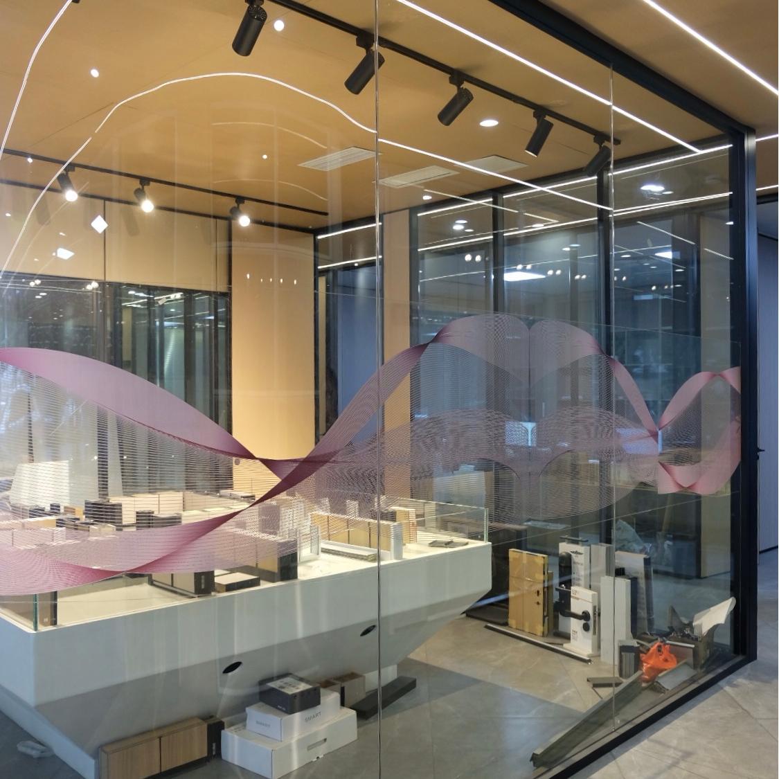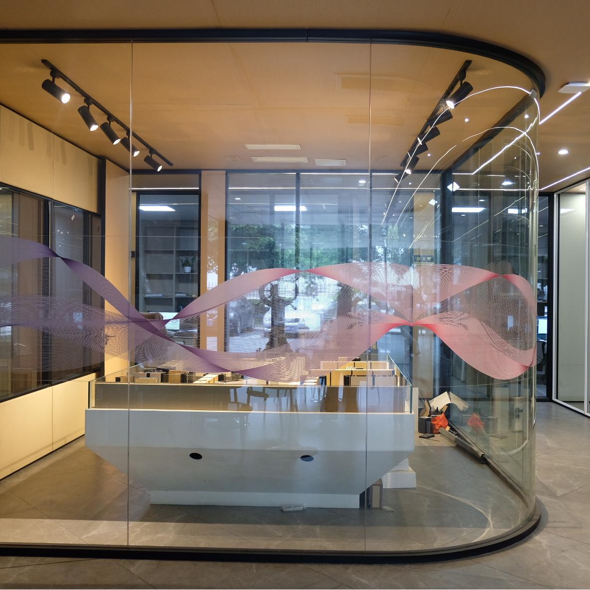 Декорация офисного здания, модельного помещения танцевальной студии, 83 панорамных одинарных стеклянных перегородок, проект изогнутого стекла.