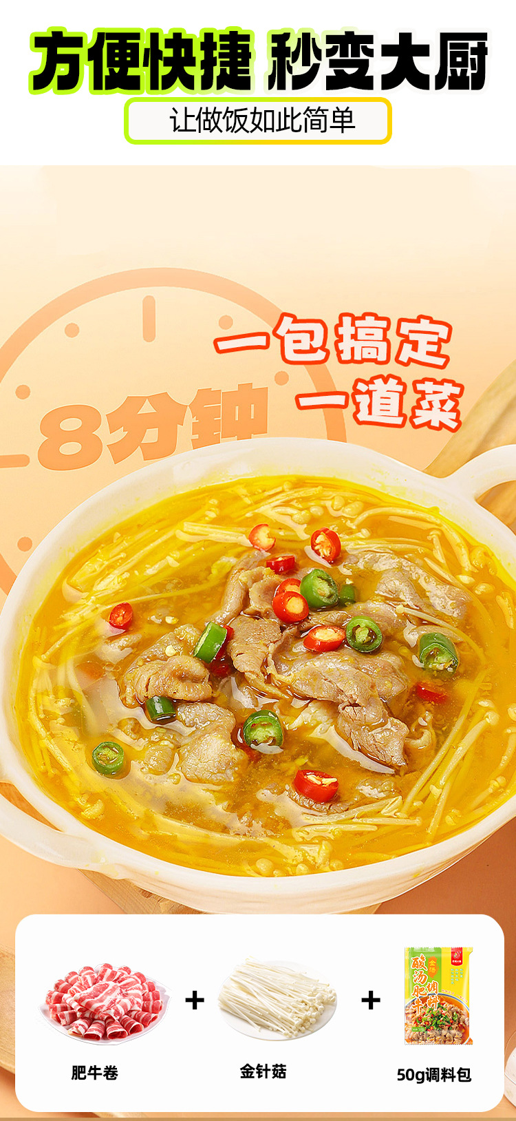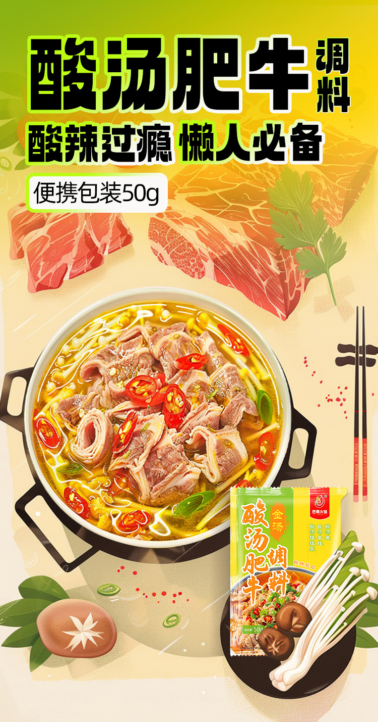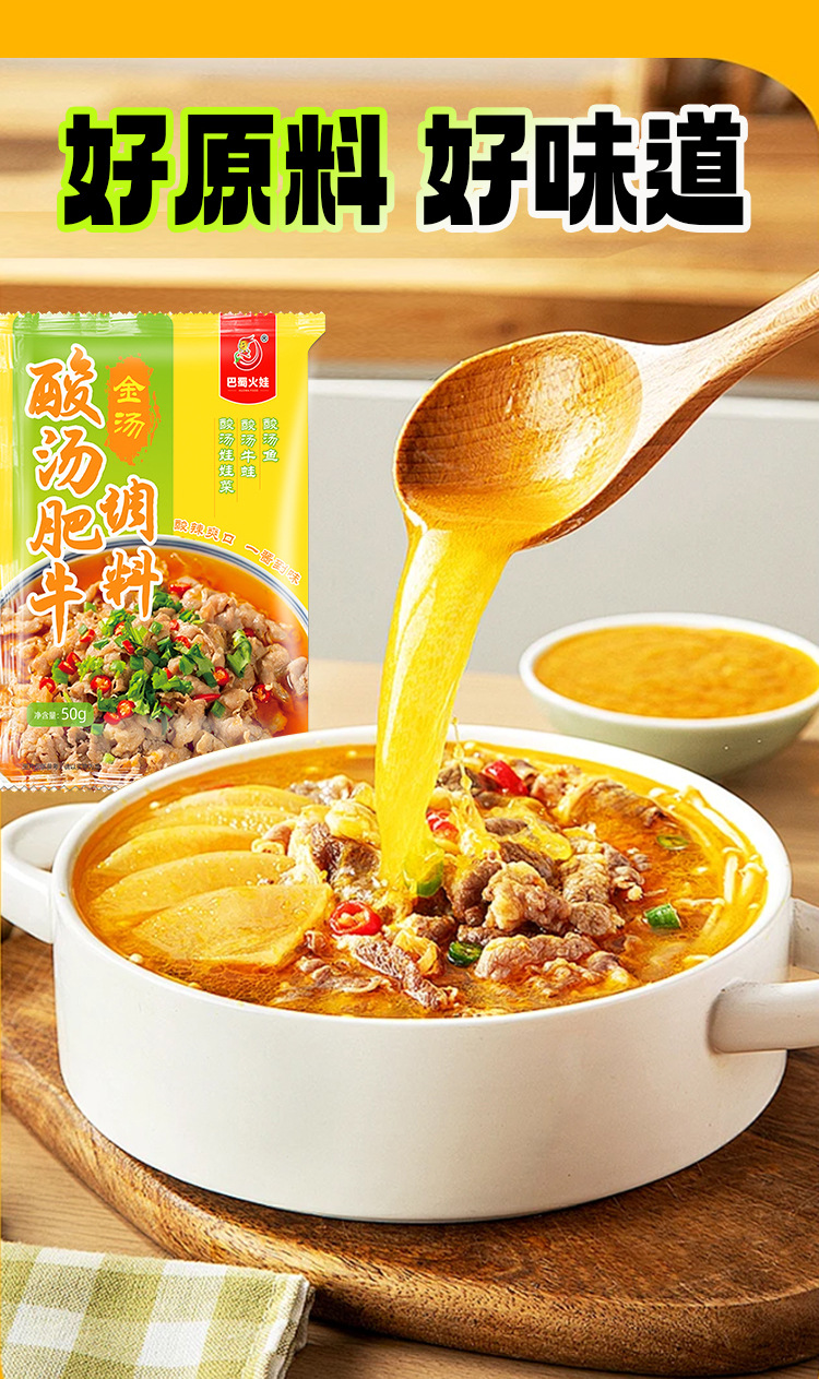 Пакет приправ для кислого супа с говядиной, 50 г, золотой суп, основа для супа с маринованной рыбой, кислый суп, рисовая лапша, основа для горячего горшка, бытовая приправа