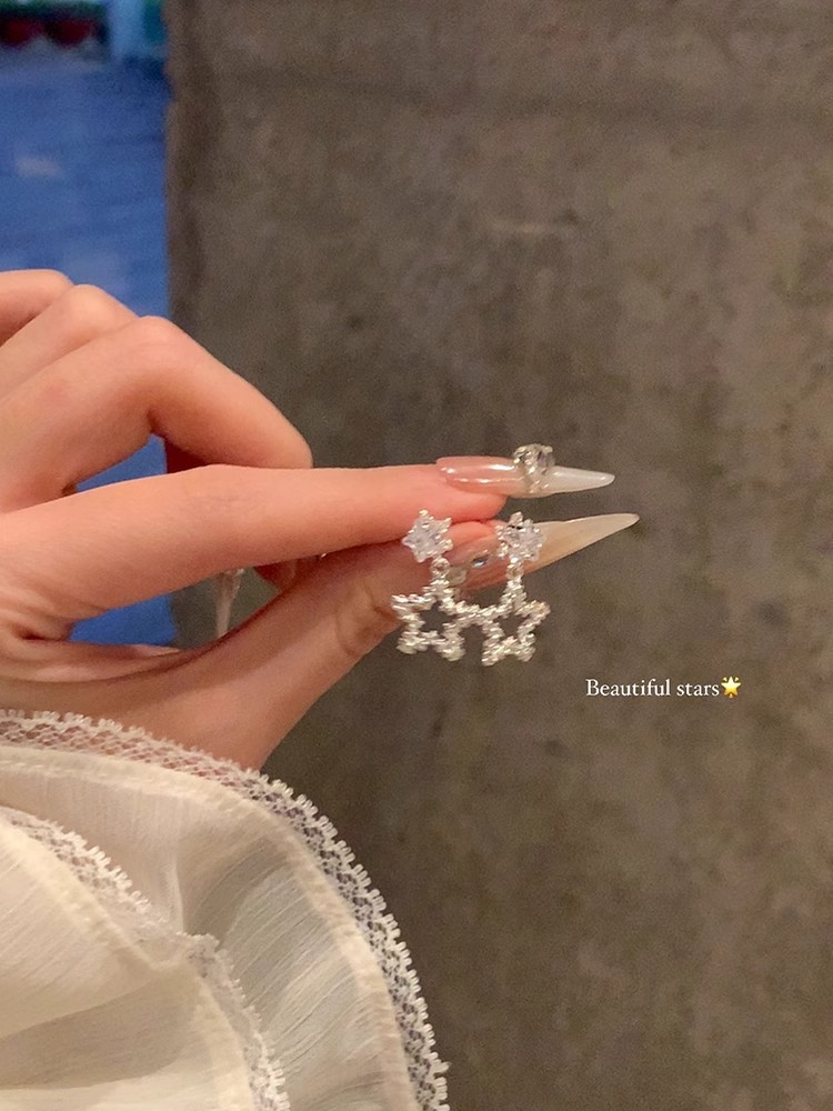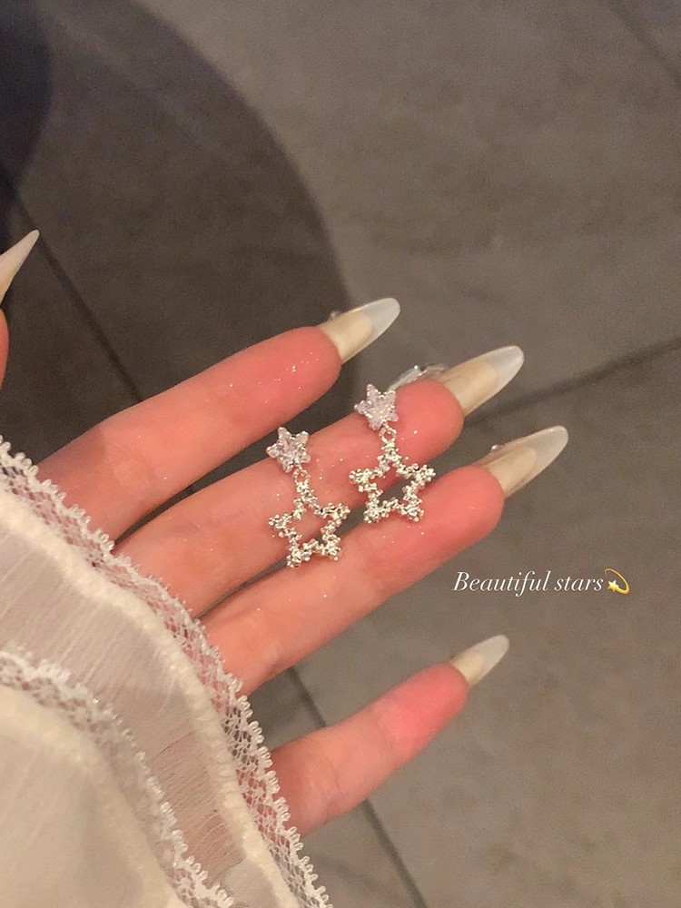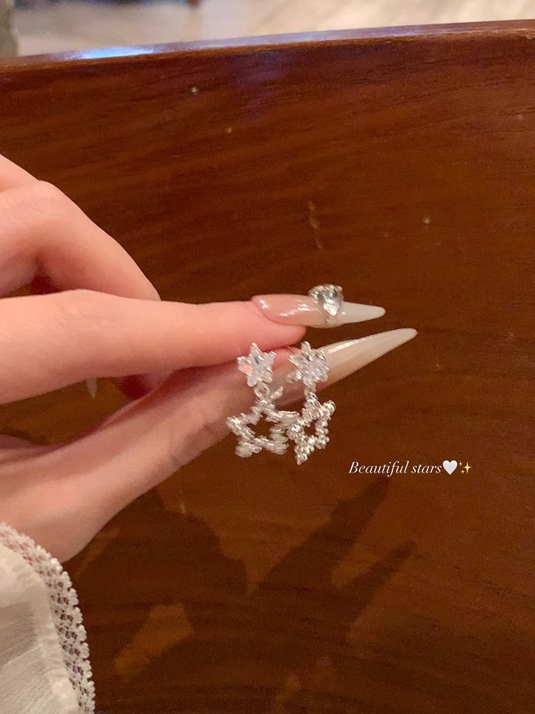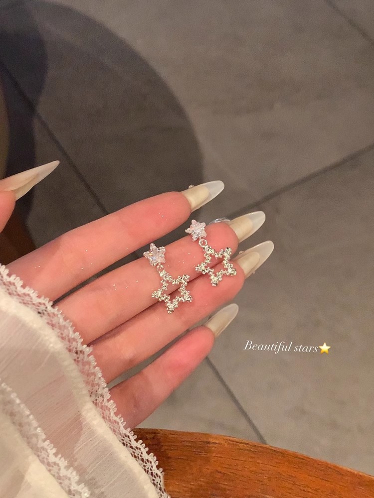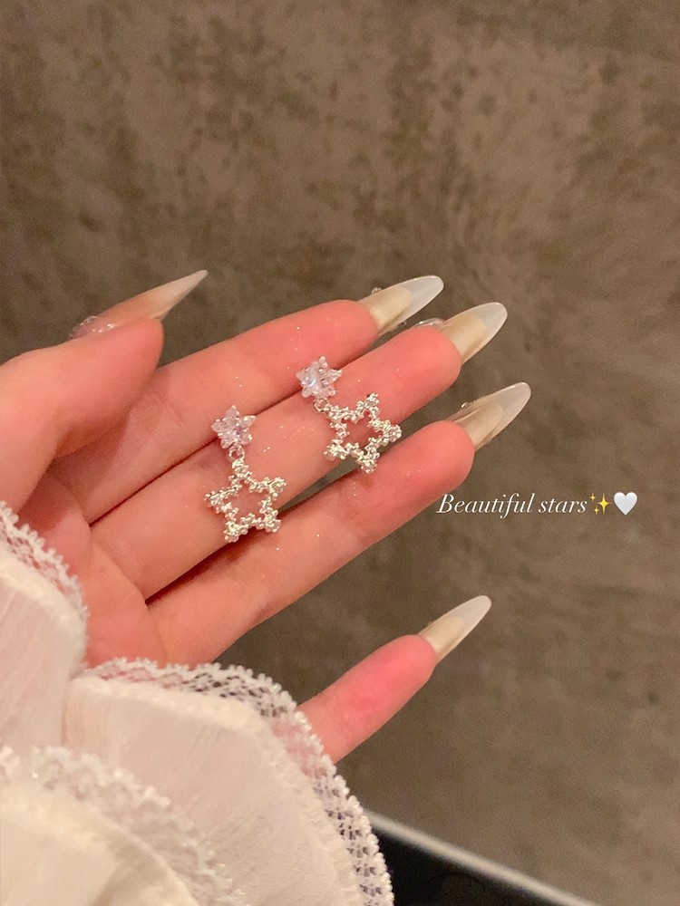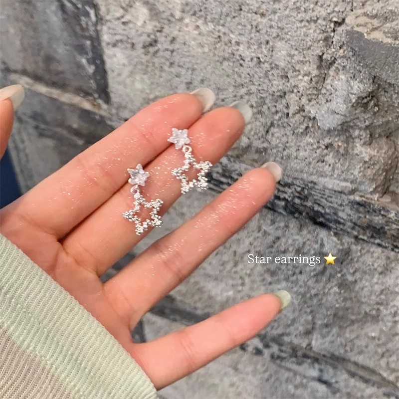 Простые и изысканные серьги со звездами в корейском стиле со сверкающим цирконом для женщин, доступная роскошь, высококачественные серьги, элегантные и атмосферные серьги и зажимы для ушей.